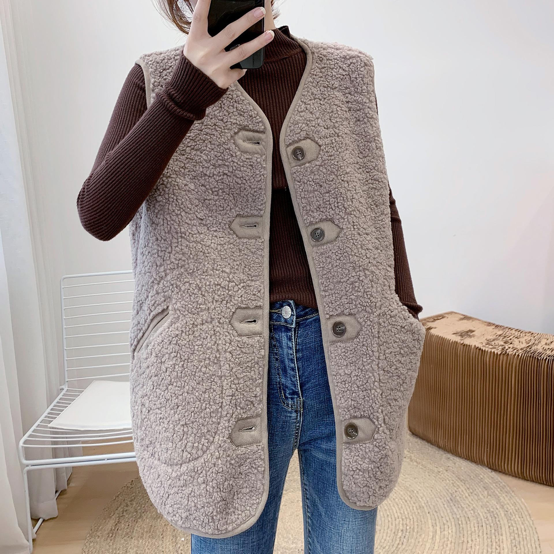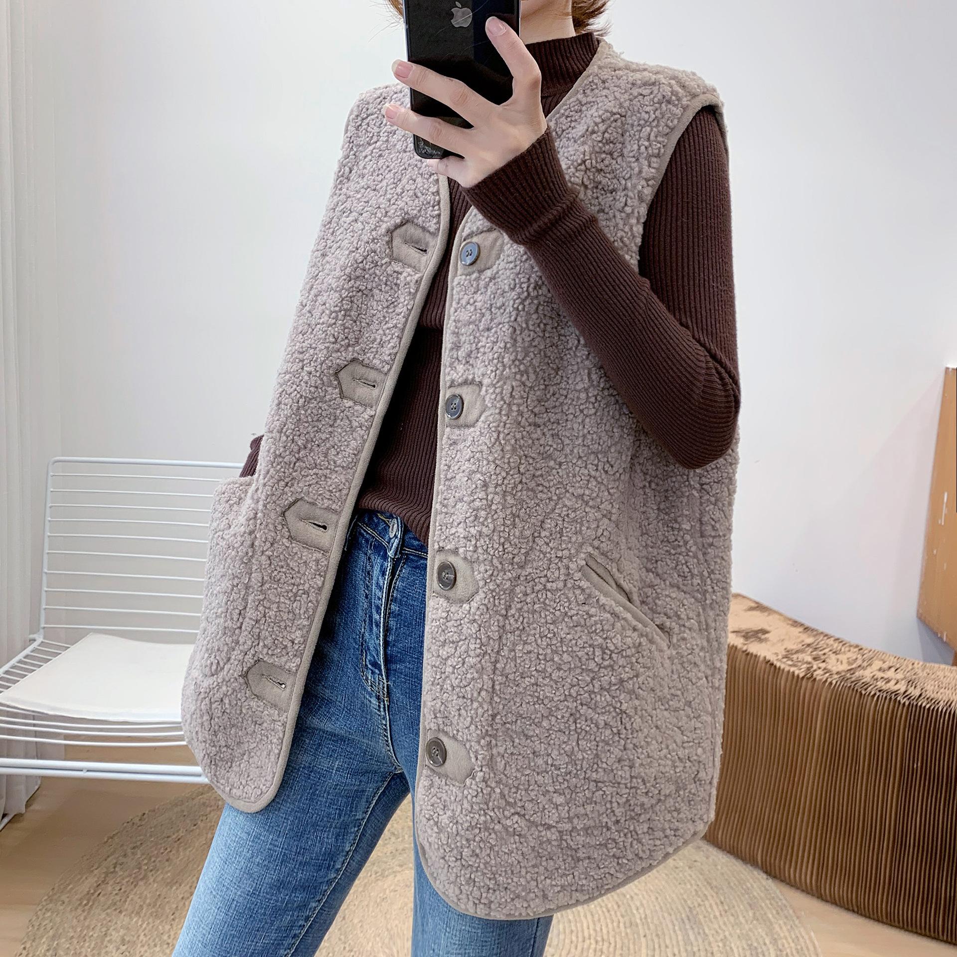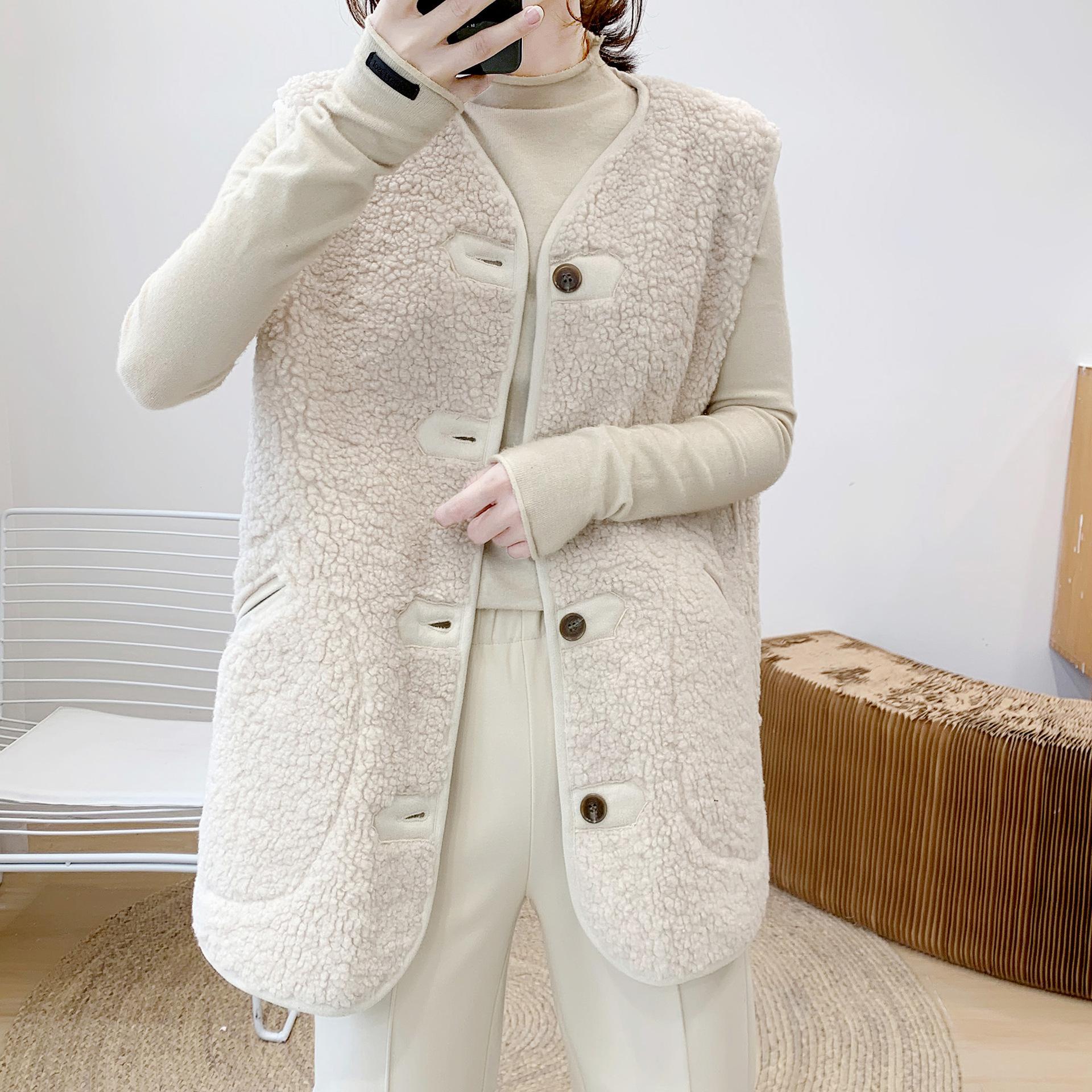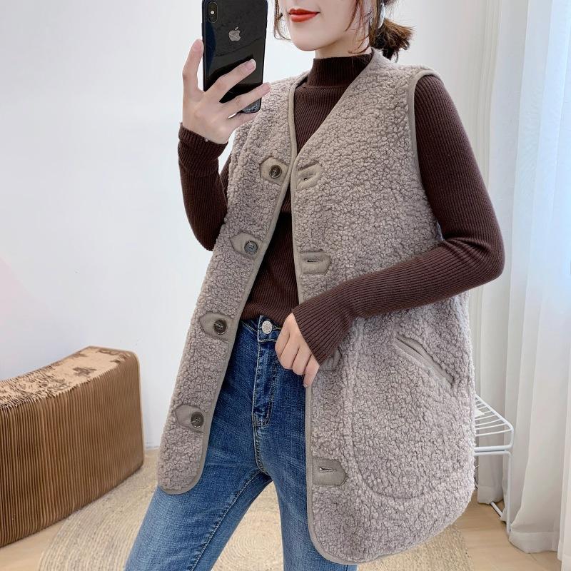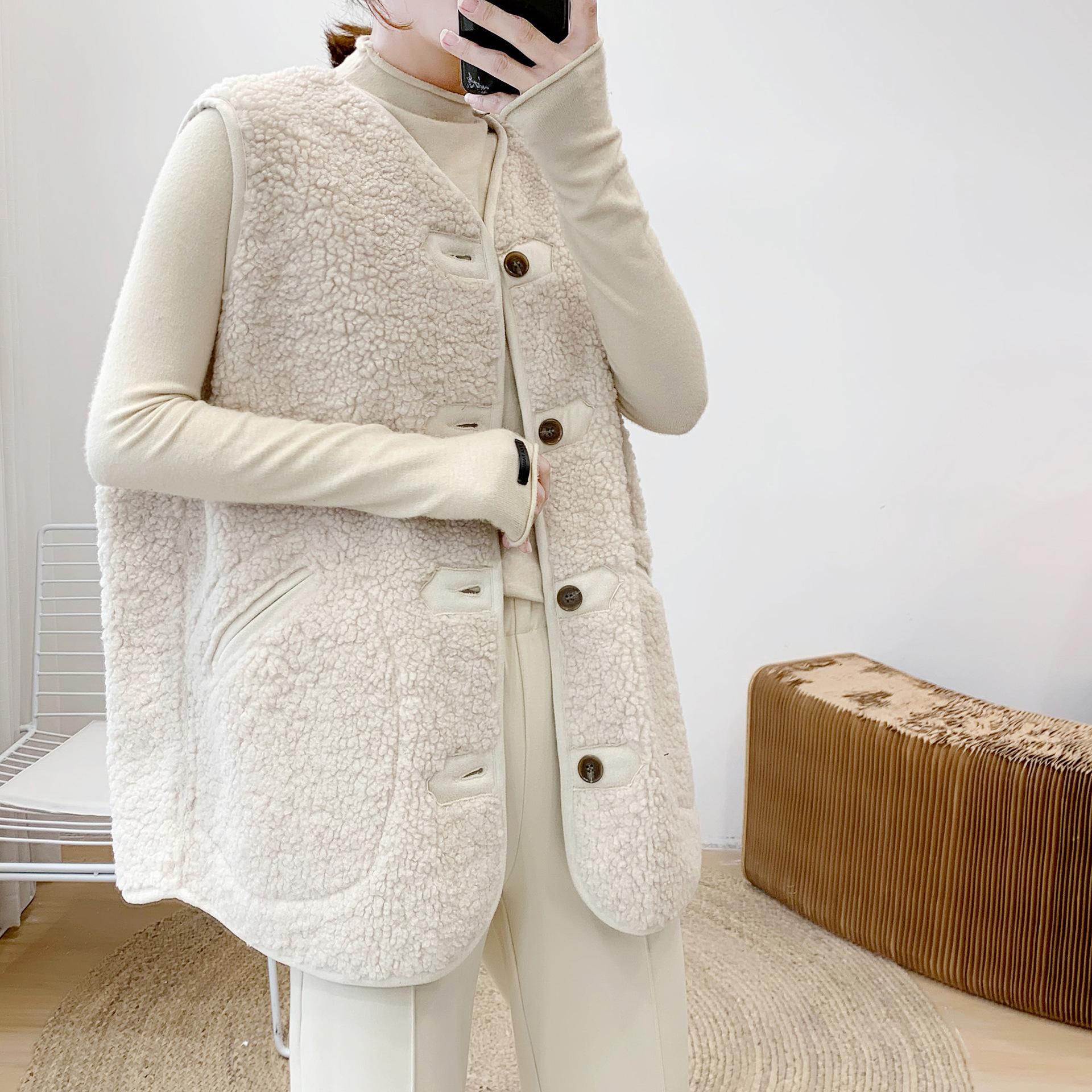 Chaleco de piel de cordero para mujer, prenda exterior de longitud media, otoño e invierno 2024, nueva prenda exterior, chaleco de piel, abrigo.