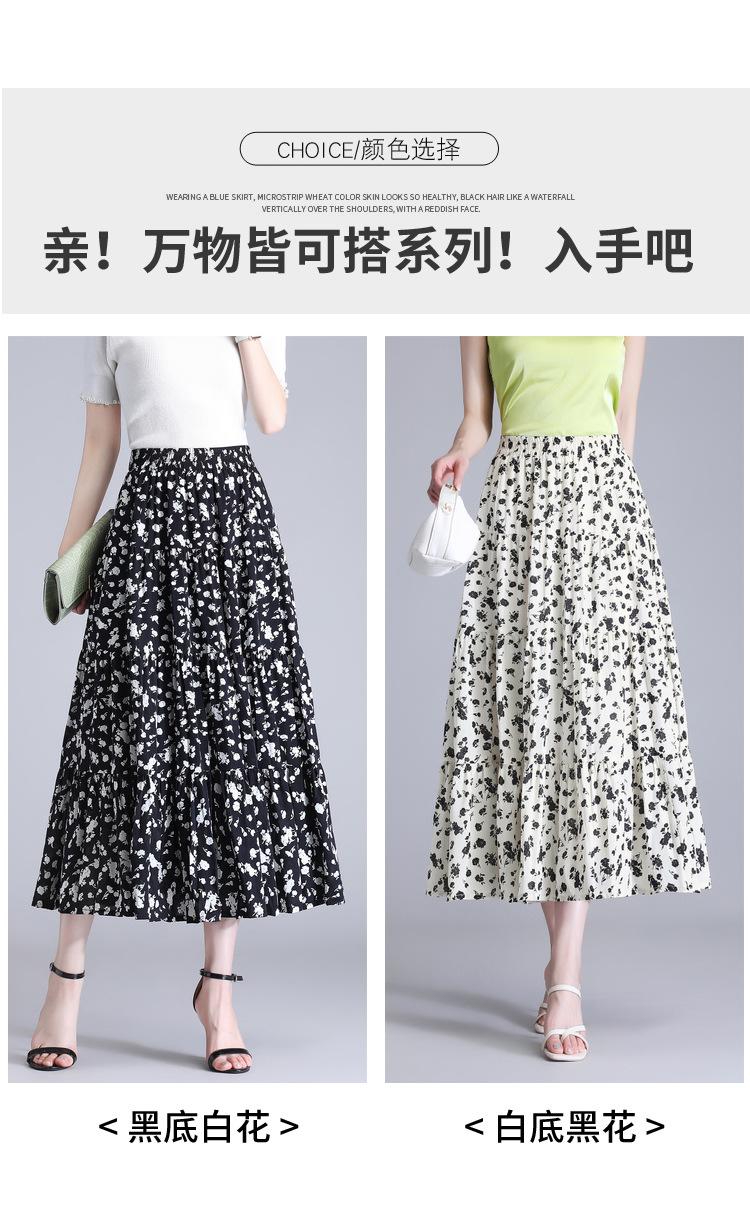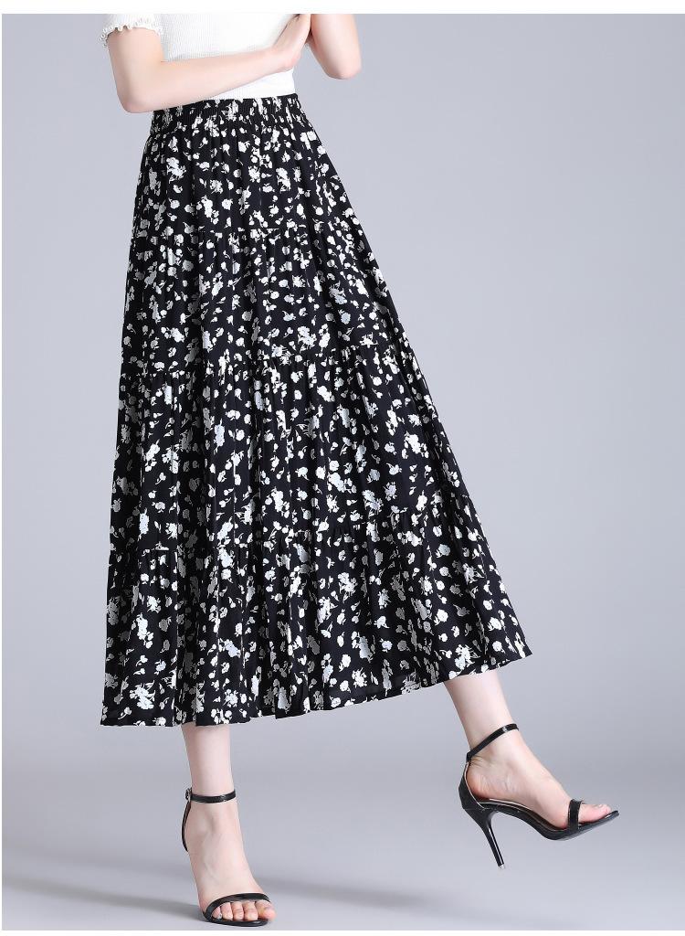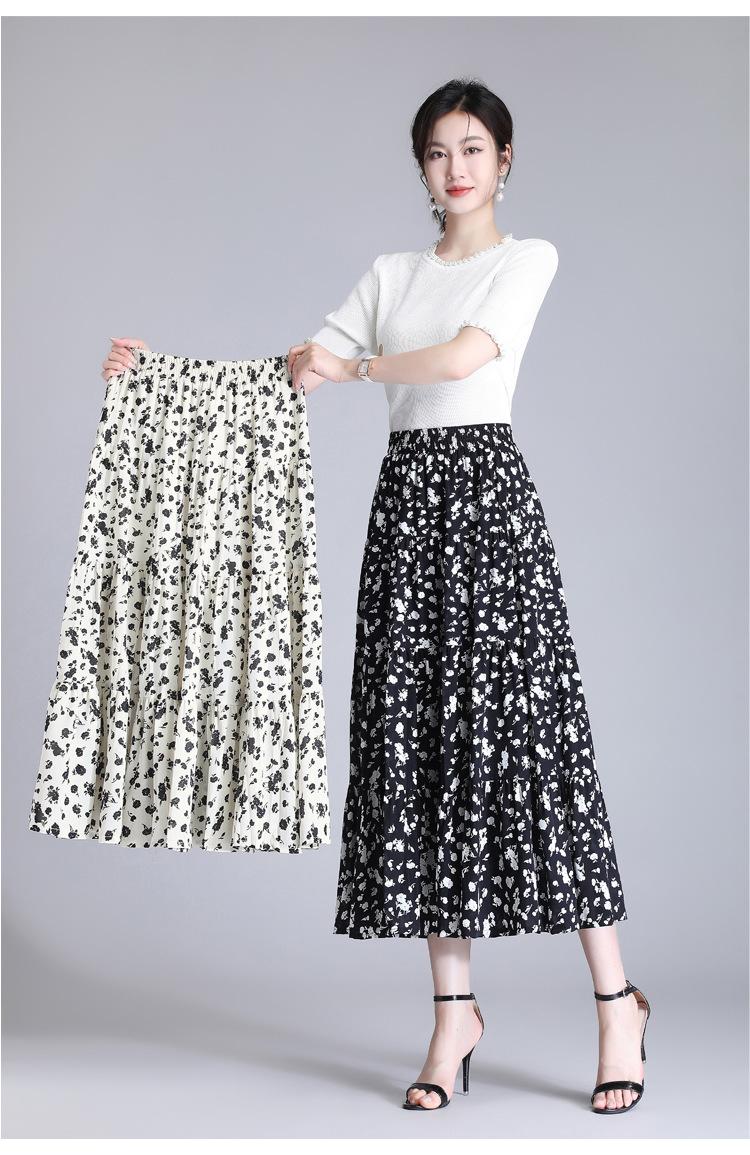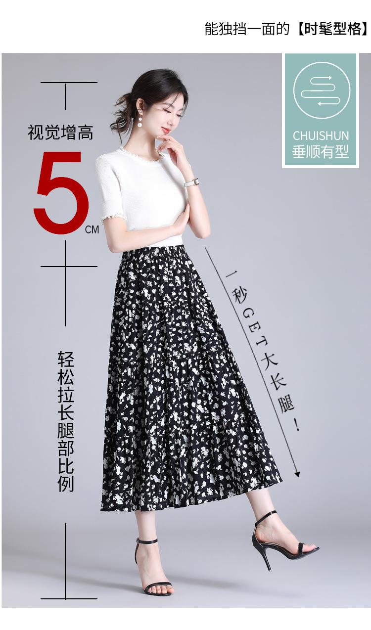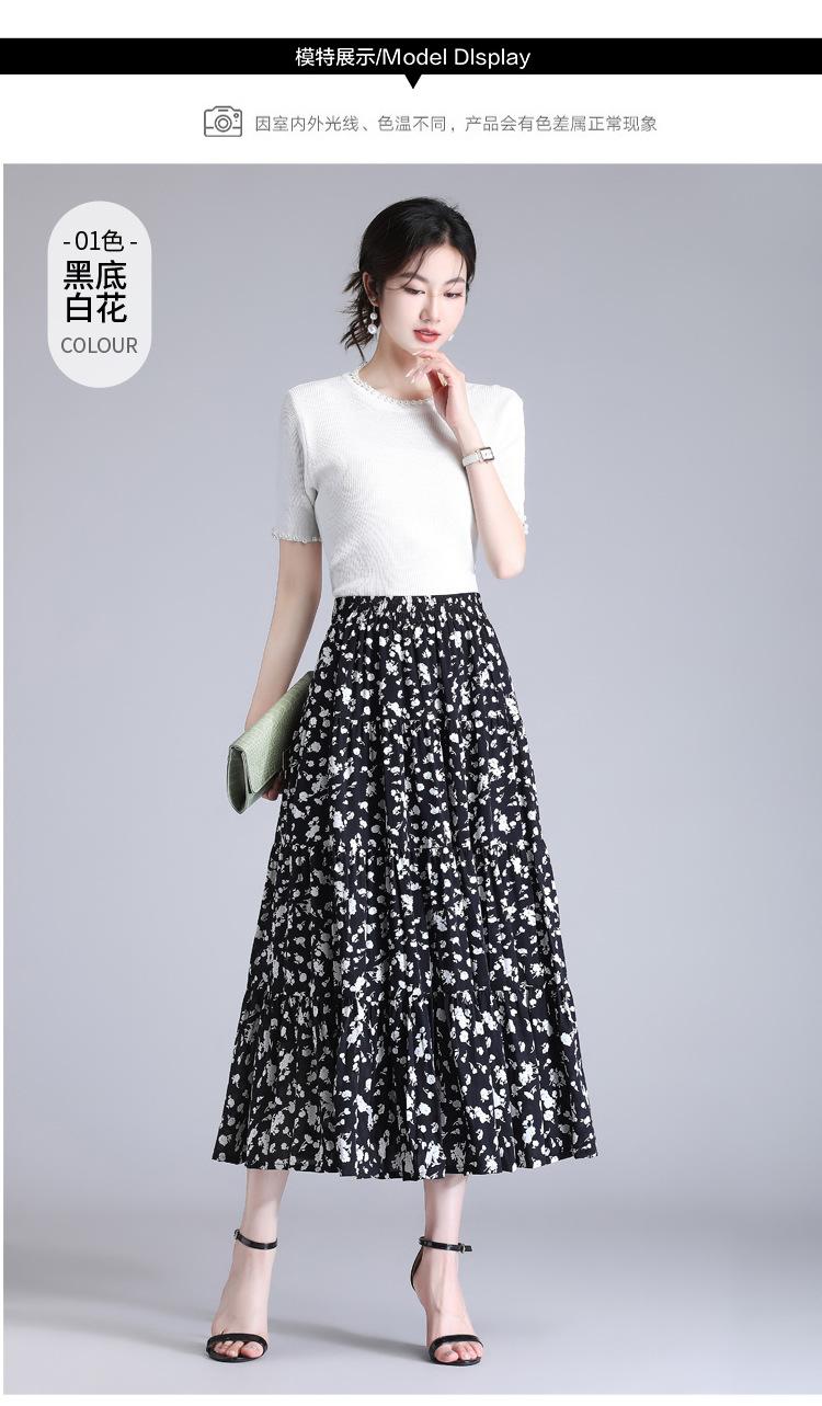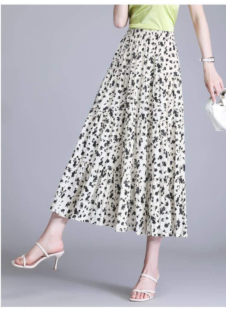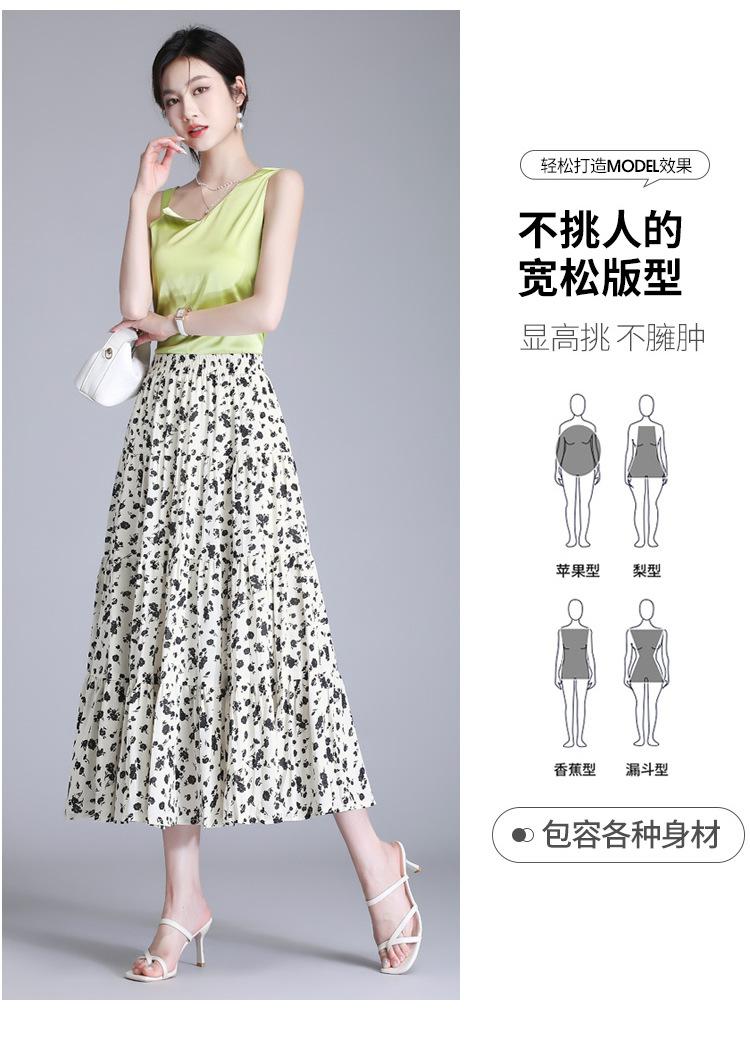 Elegante Falda Floral Simple Acampanada para Mujer 2025 Verano Nuevo Estilo Coreano Cintura Alta Plisada Midi