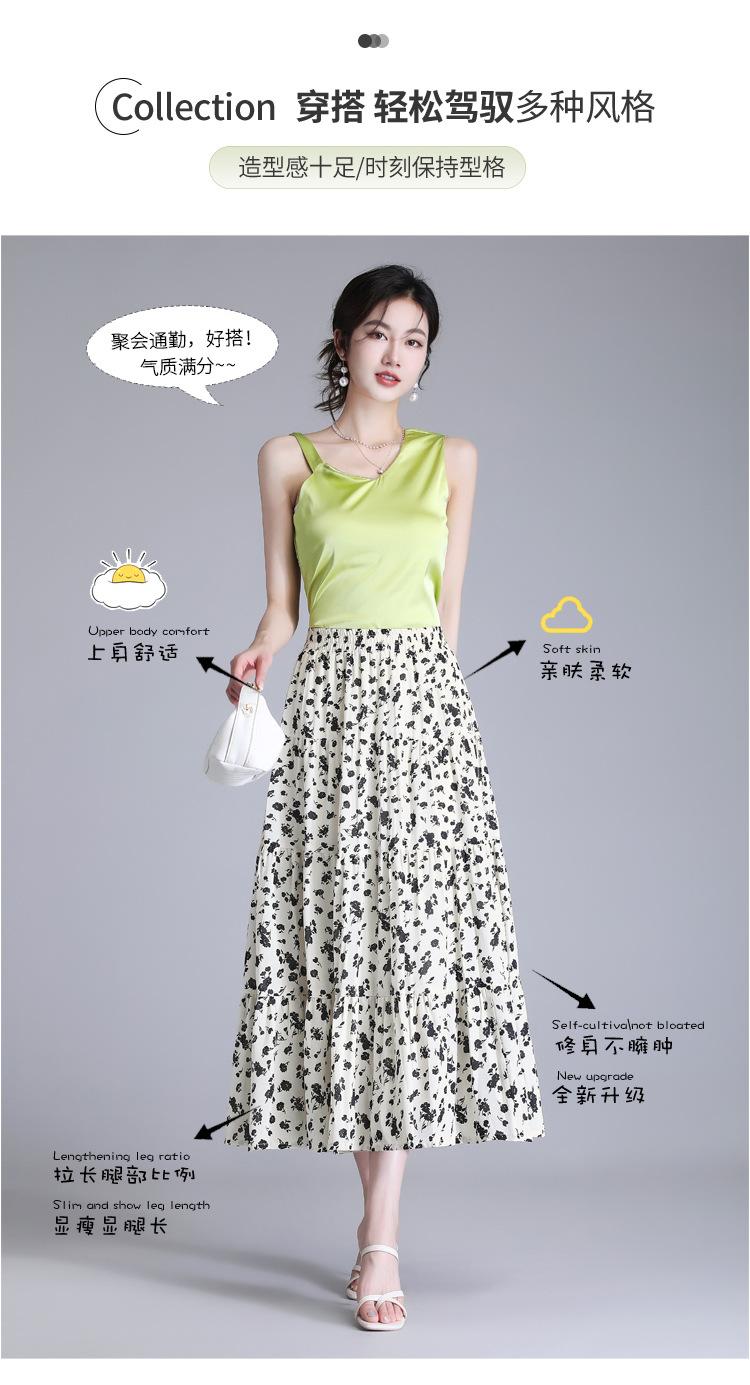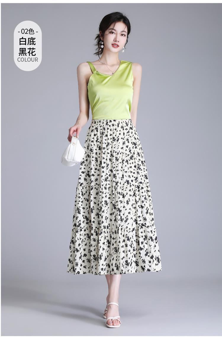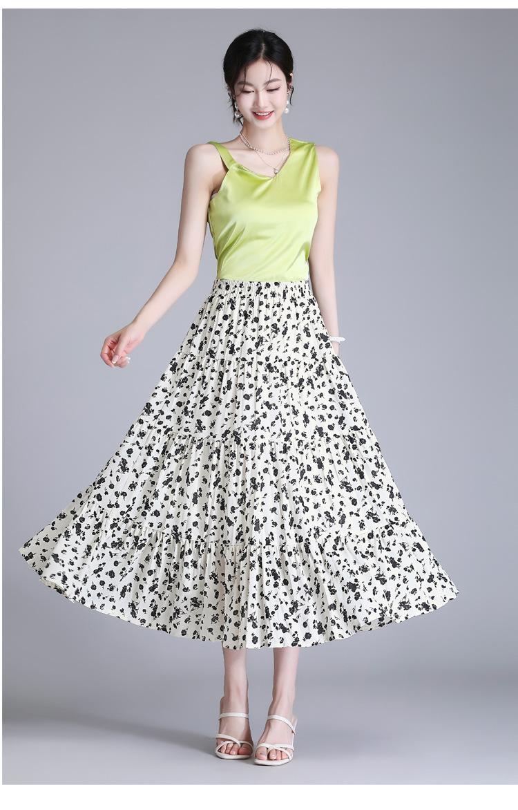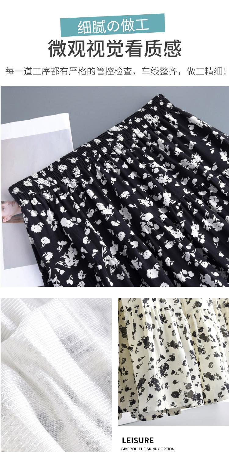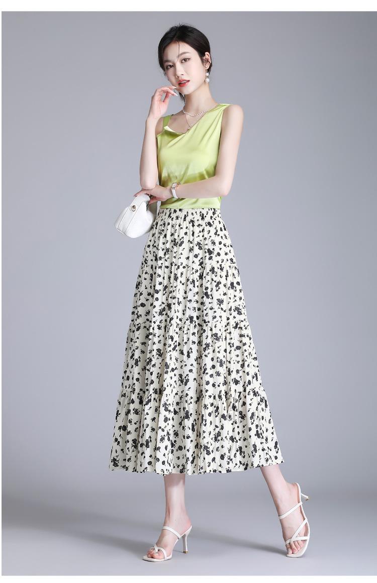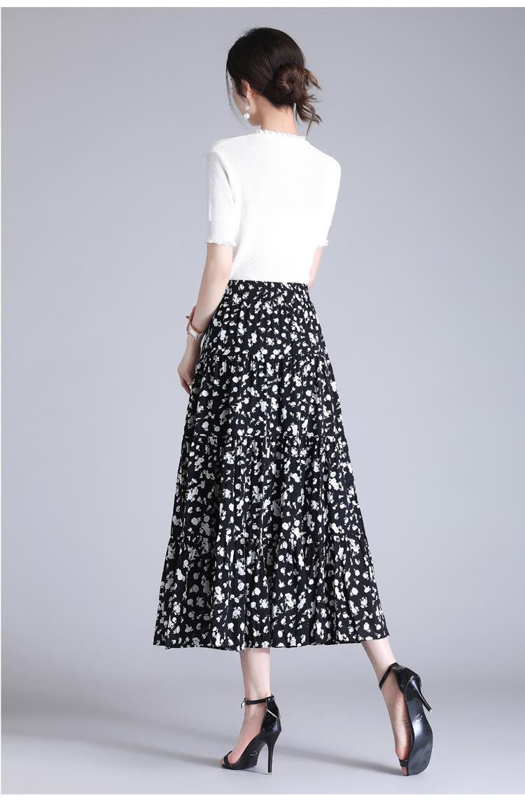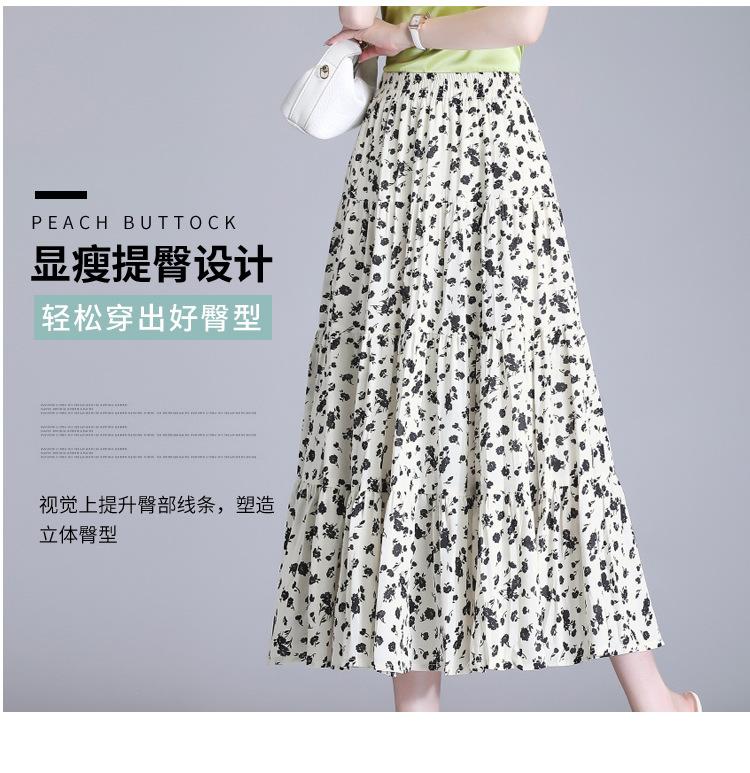 Elegante Falda Floral Simple Acampanada para Mujer 2025 Verano Nuevo Estilo Coreano Cintura Alta Plisada Midi