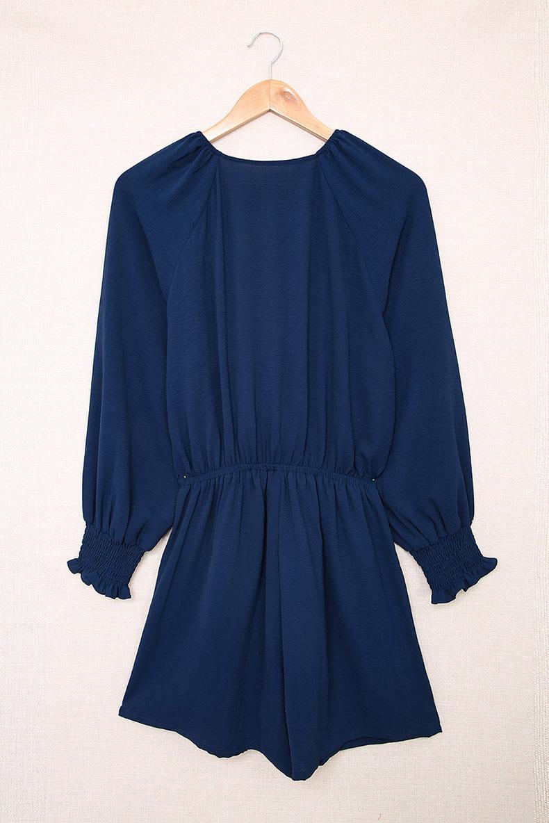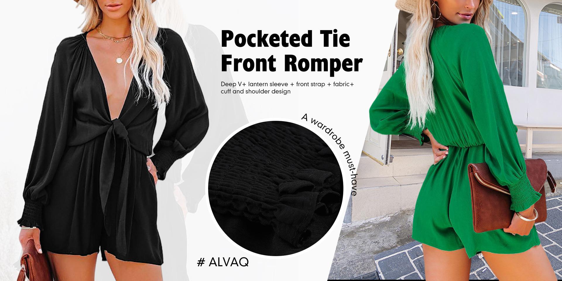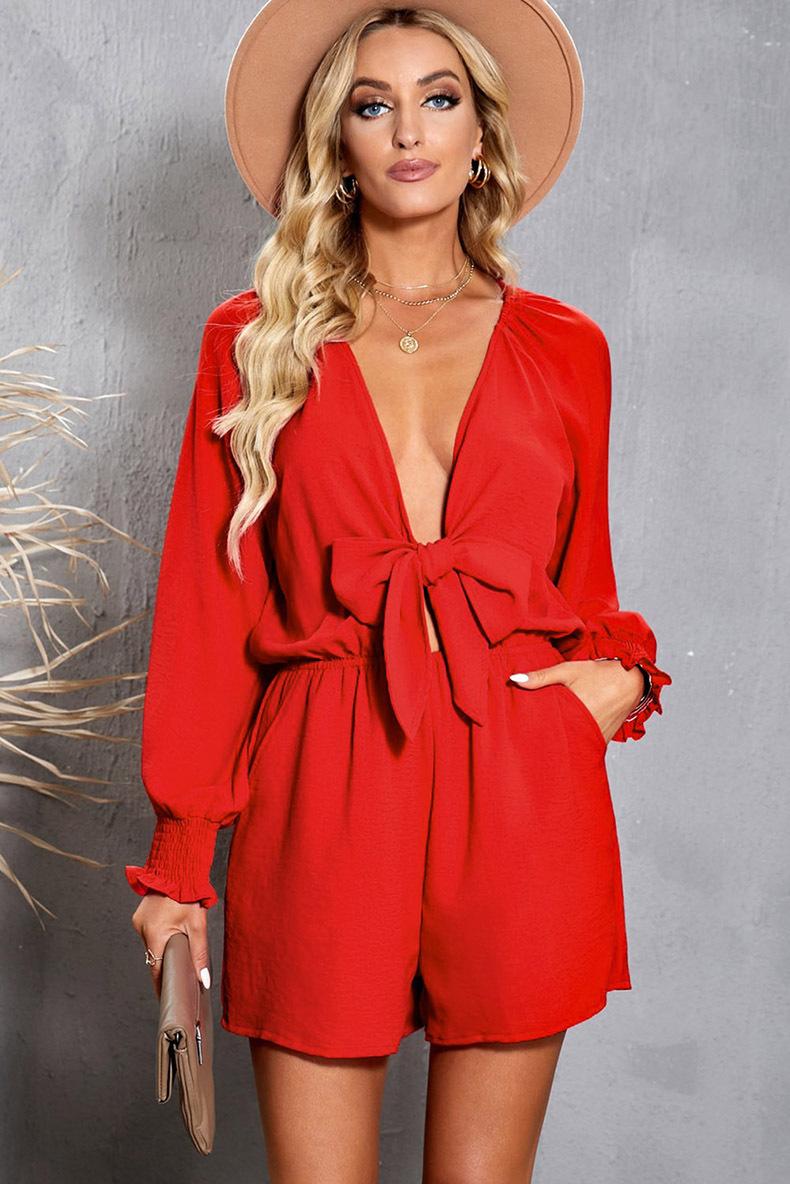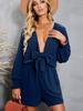 Mono Sexy Europeo y Americano con Encaje de Escote en V Profundo para Mujer Verano Nuevo Color Puro Casual Manga Larga Shorts Mono para Mujer