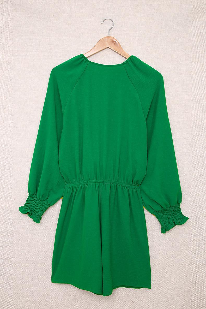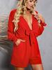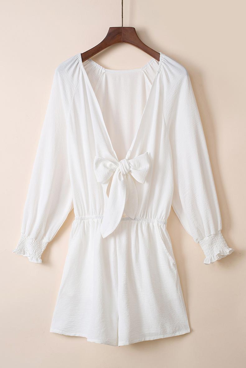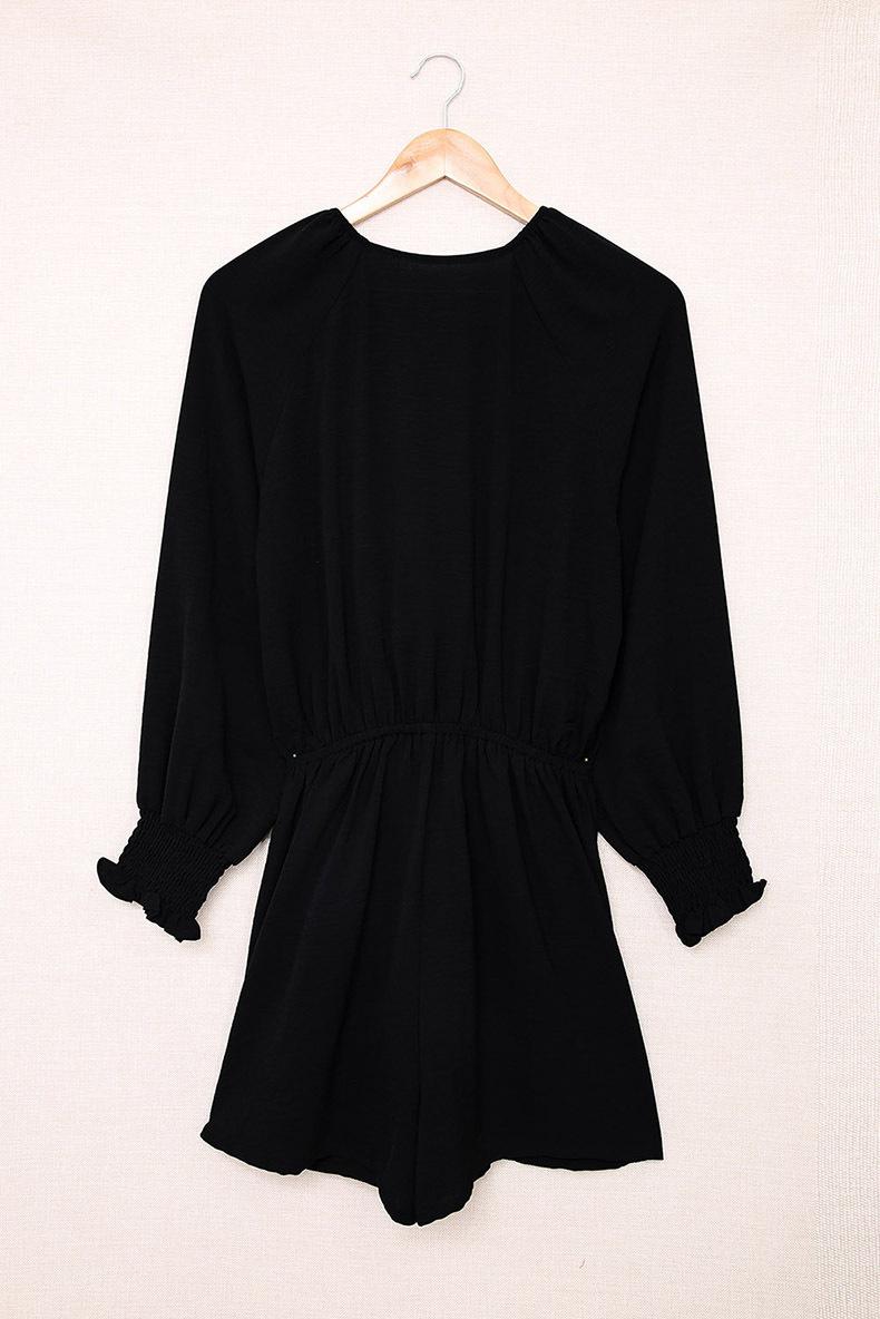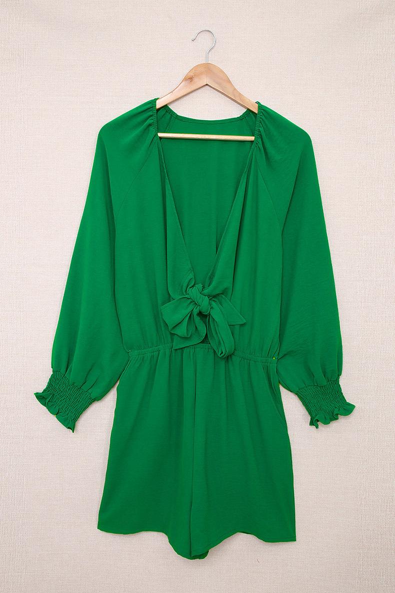 Mono Sexy Europeo y Americano con Encaje de Escote en V Profundo para Mujer Verano Nuevo Color Puro Casual Manga Larga Shorts Mono para Mujer