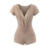 Pantalones cortos deportivos de cintura alta para mujer, de color sólido, estilo europeo y americano, Shiying, mono de manga corta con cuello redondo y cordones, 2021, 64515