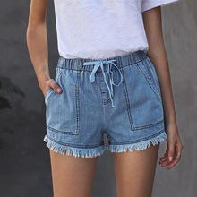 Pantalones cortos ajustados versátiles de cintura alta lavados y desgastados de estilo nuevo de verano para mujeres europeas y americanas de Shiying 781025