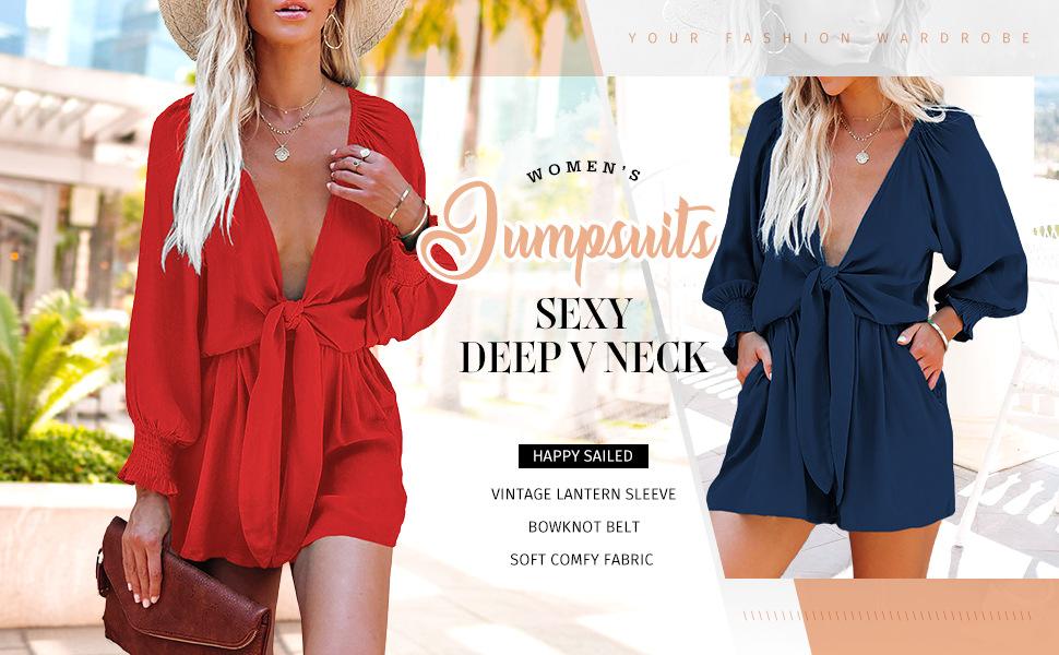 Mono de cintura con lazo estilo europeo y americano para mujer, de Amazon, de verano, de color liso, informal, con cuello en V, pantalones de pierna ancha ajustados, 642444