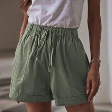Pantalones cortos con cordones de estilo nuevo de verano de Amazon, pantalones casuales para damas europeas y americanas, pantalones de cintura tres cuartos de color sólido que combinan con todo, 772910