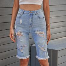 Pantalones cortos vaqueros de cintura alta lavados para mujer, Amazon, verano 2022, corte ajustado, desgastados, versátiles, casuales, tres cuartos, 77173