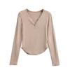 Camiseta corta de manga larga con escote en V pequeño y sexy estilo chica americana para mujer, primavera 2024, ajustada, adelgazante, curvada y de cintura alta