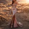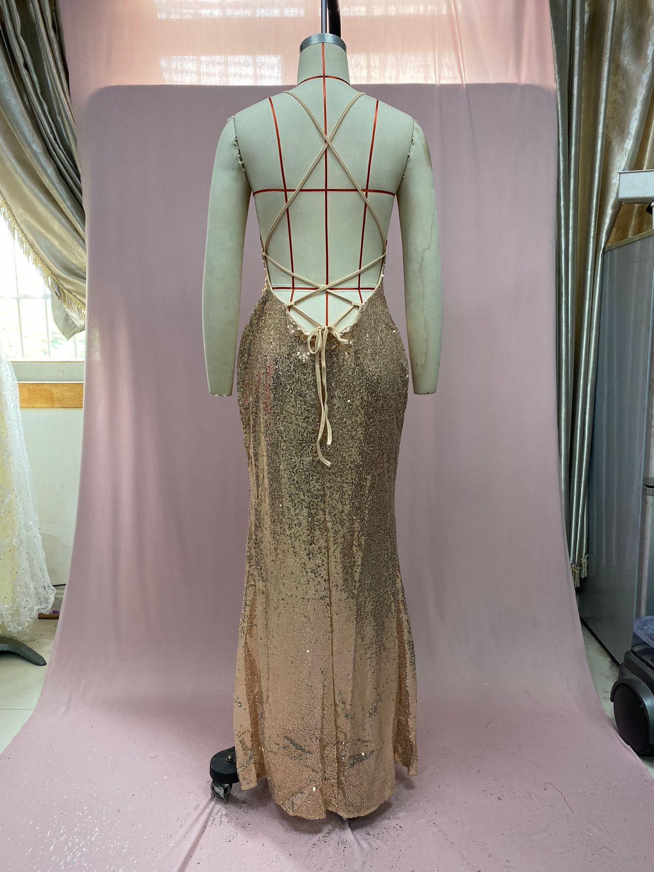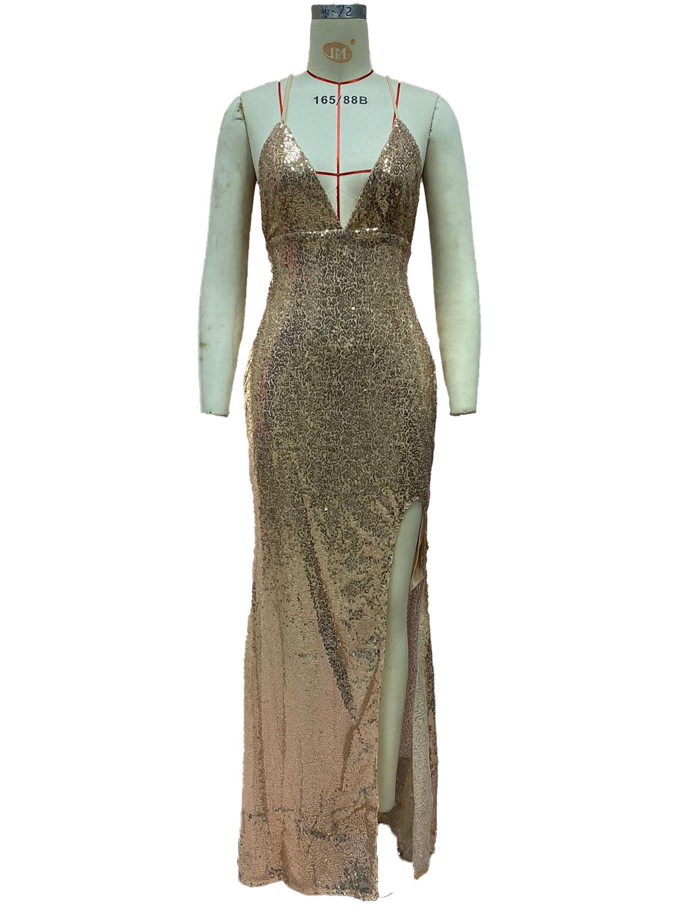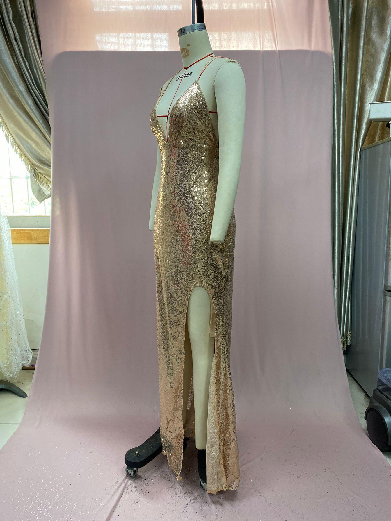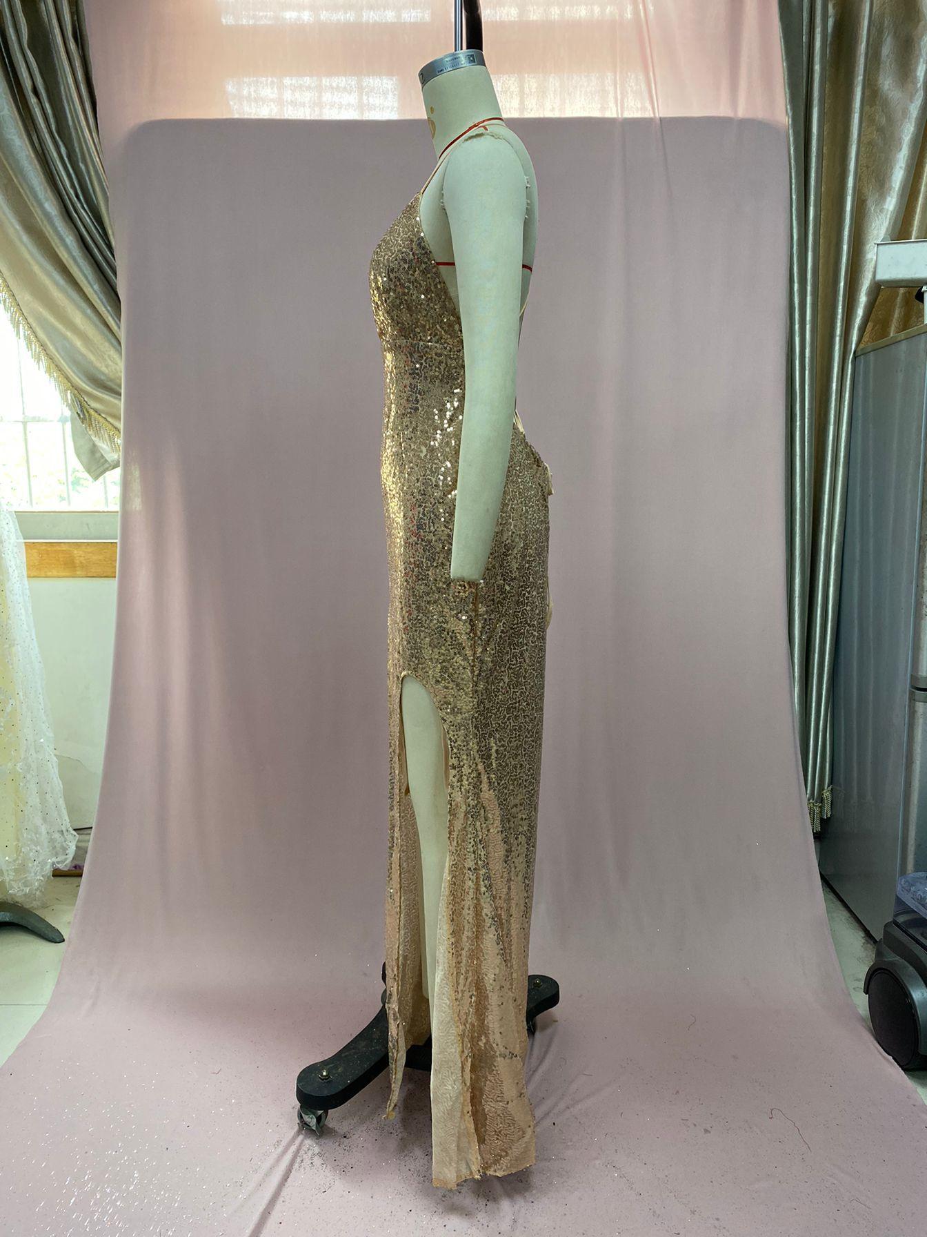 2025 Verano Transfronterizo Nuevo Ropa Europea y Americana Vestido Sexy de Lentejuelas Un Hombro Banquete Vestido Escote V Profundo Falda de Cadera