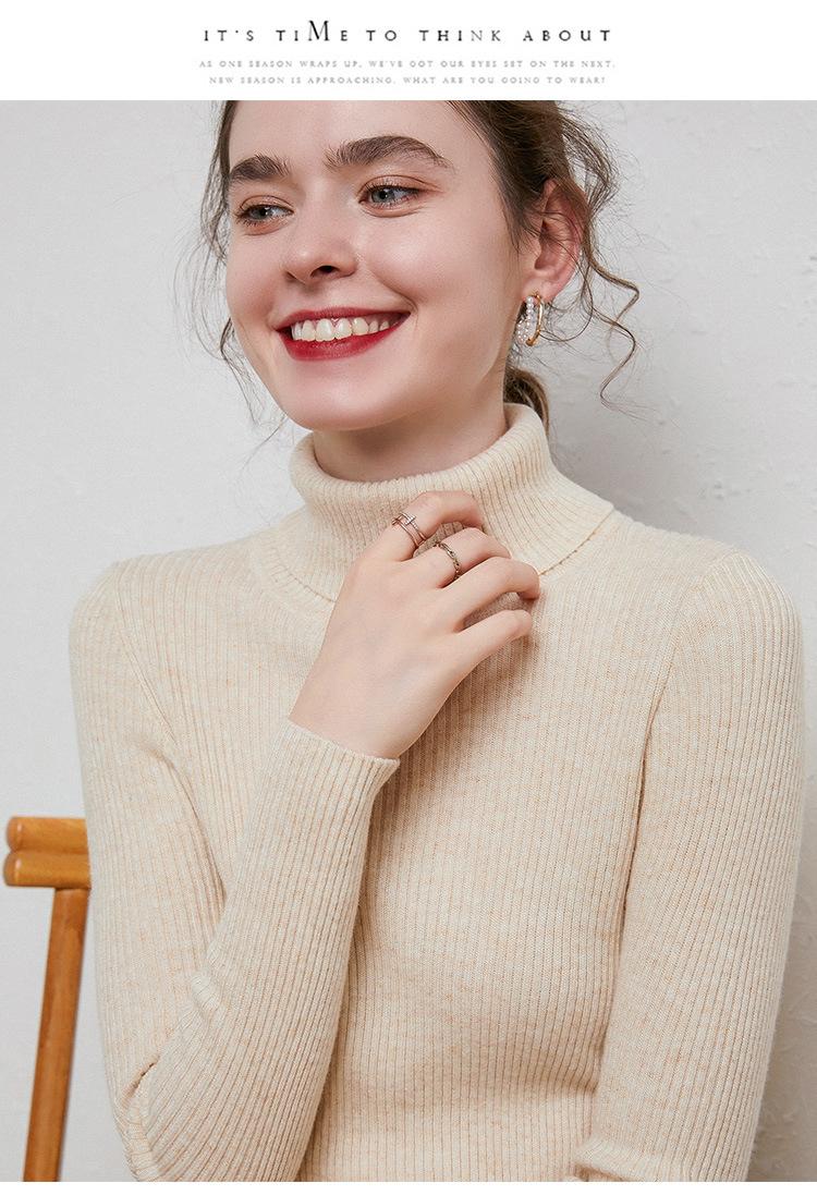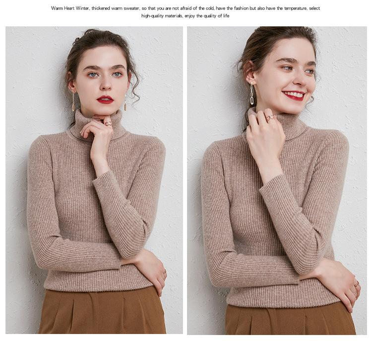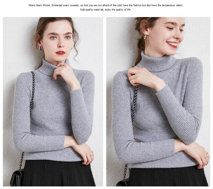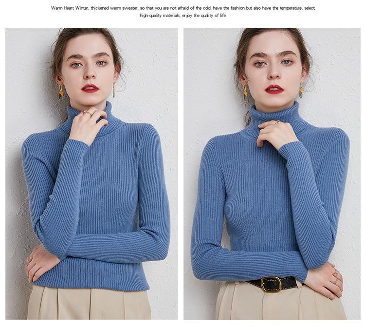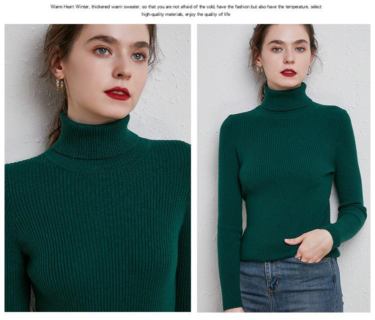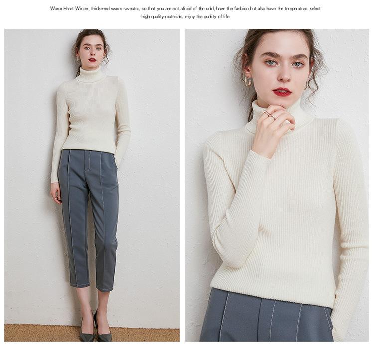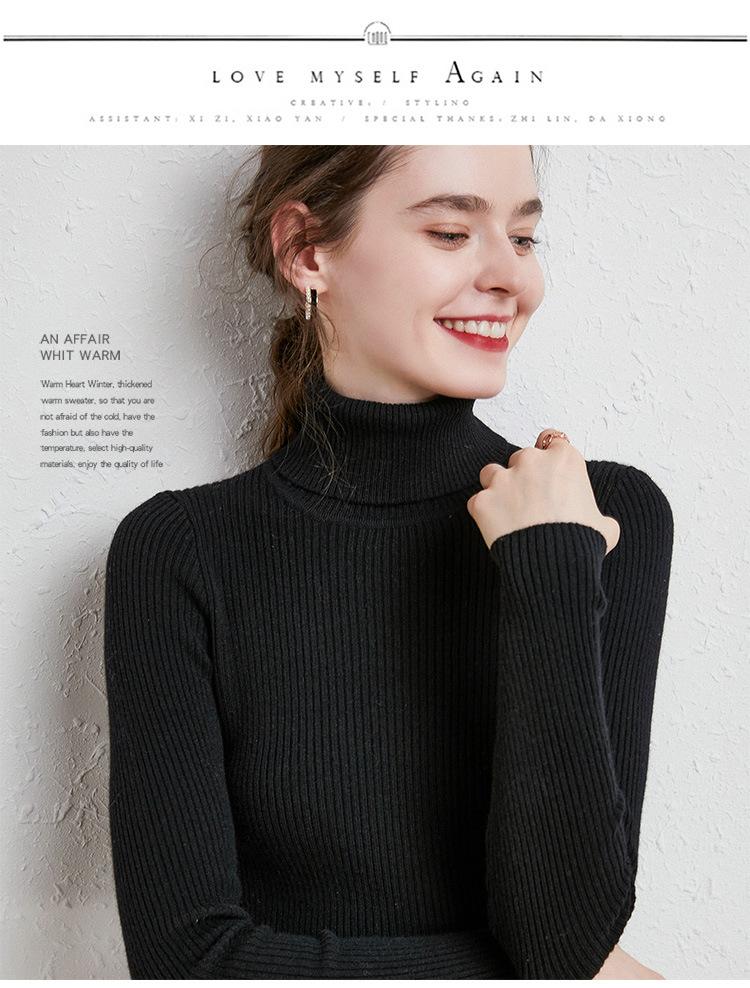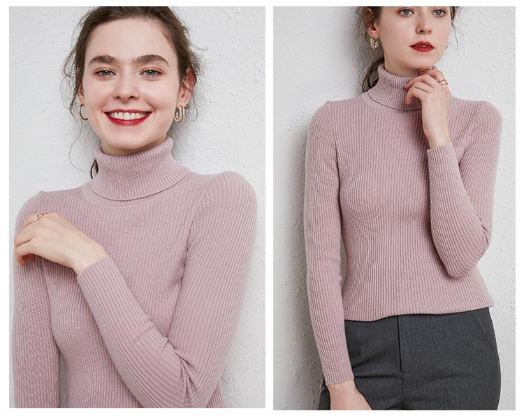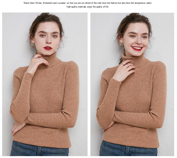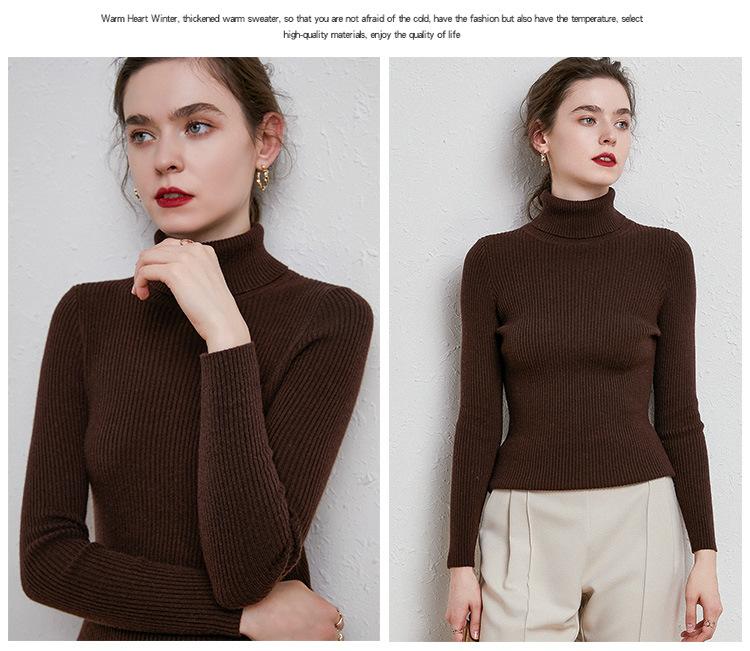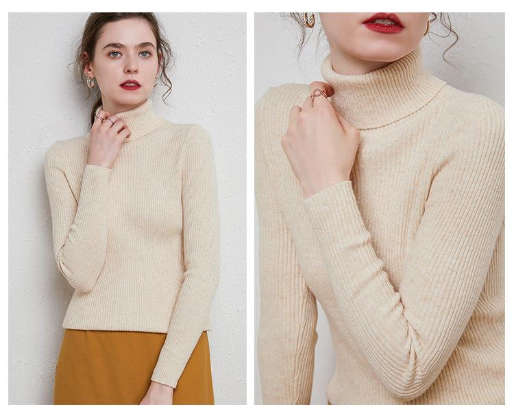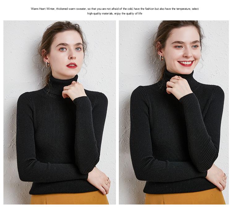 Suéter de Cuello Alto para Mujer Slim Otoño e Invierno Nuevo Estilo Grueso Versátil Jersey de Punto Ajustado de Manga Corta Larga Camisa Básica