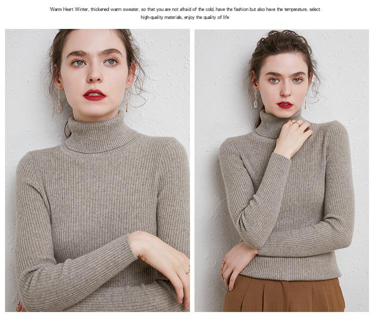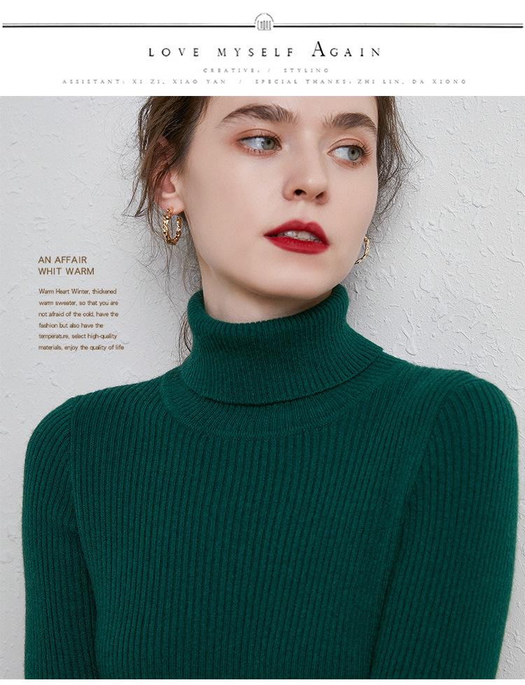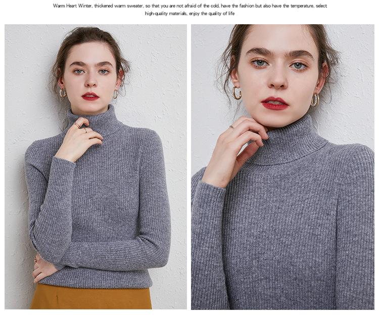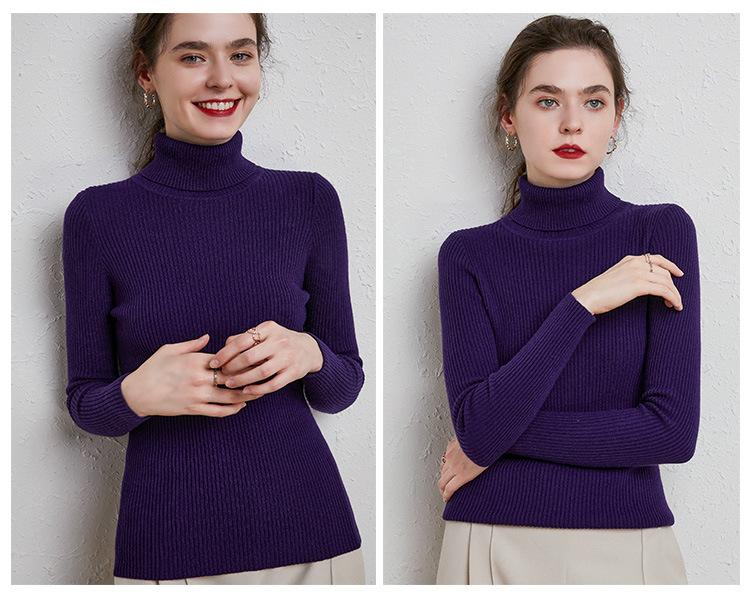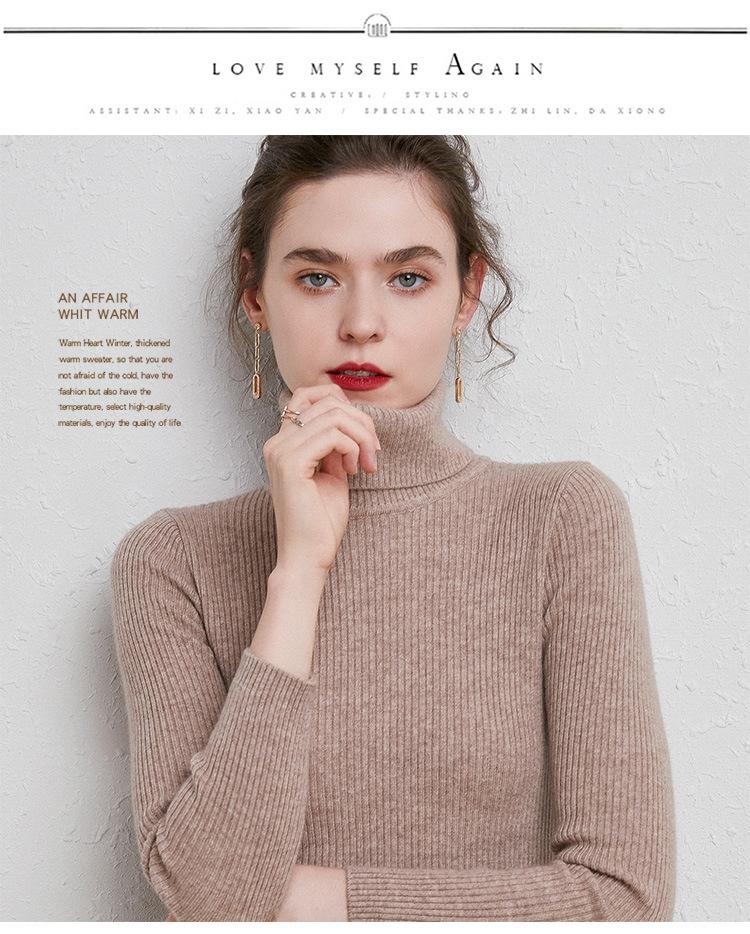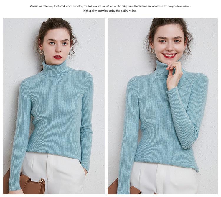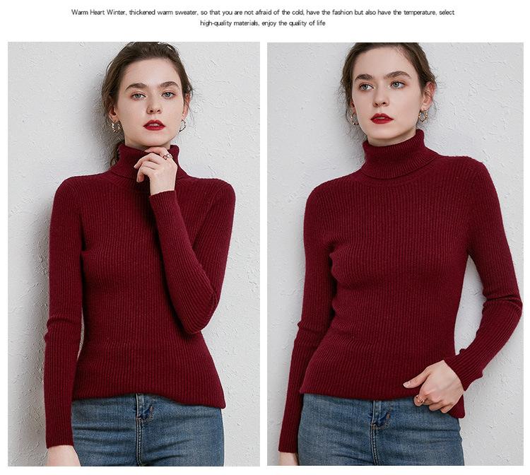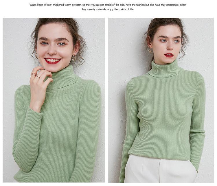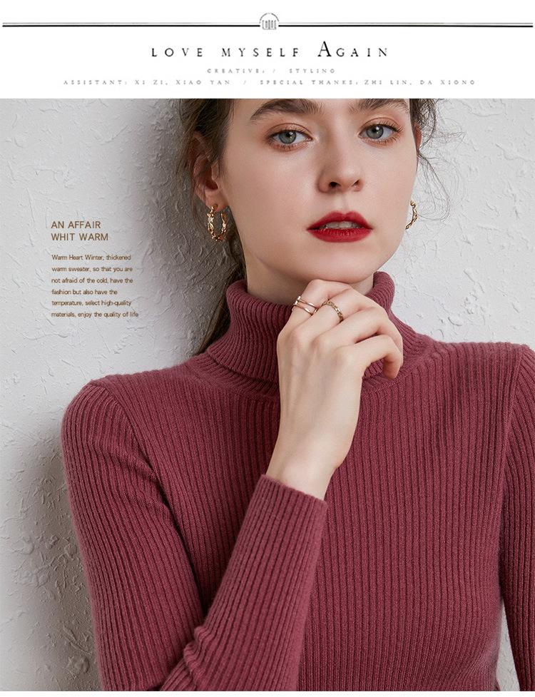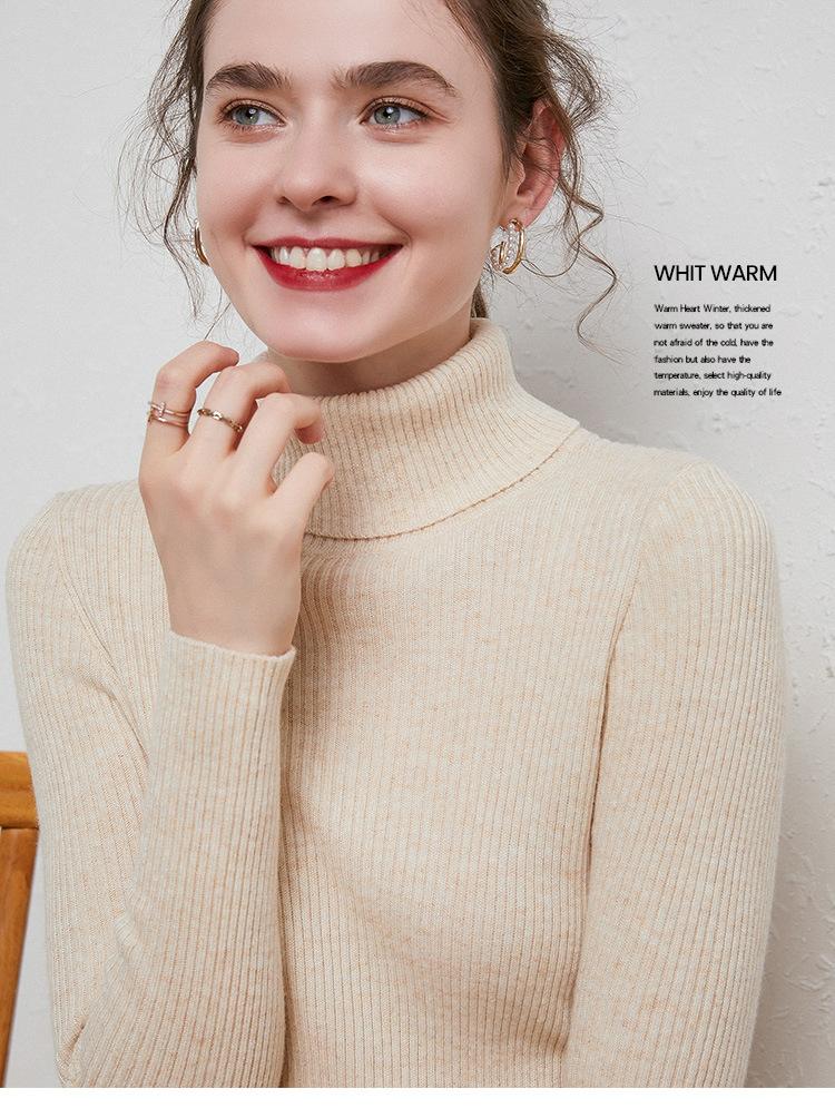 Suéter de Cuello Alto para Mujer Slim Otoño e Invierno Nuevo Estilo Grueso Versátil Jersey de Punto Ajustado de Manga Corta Larga Camisa Básica