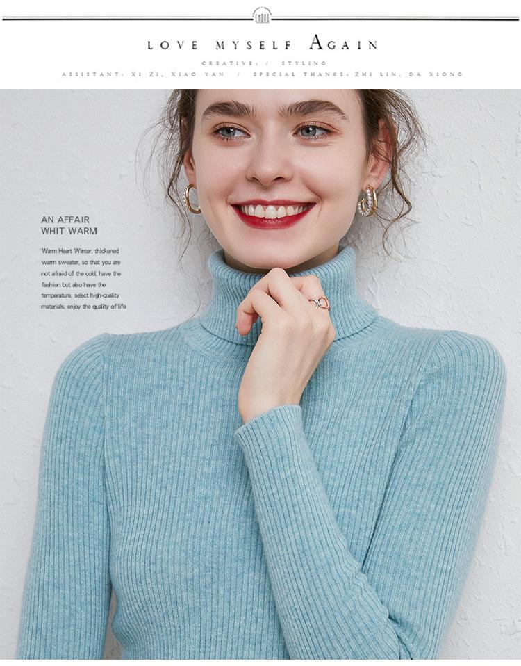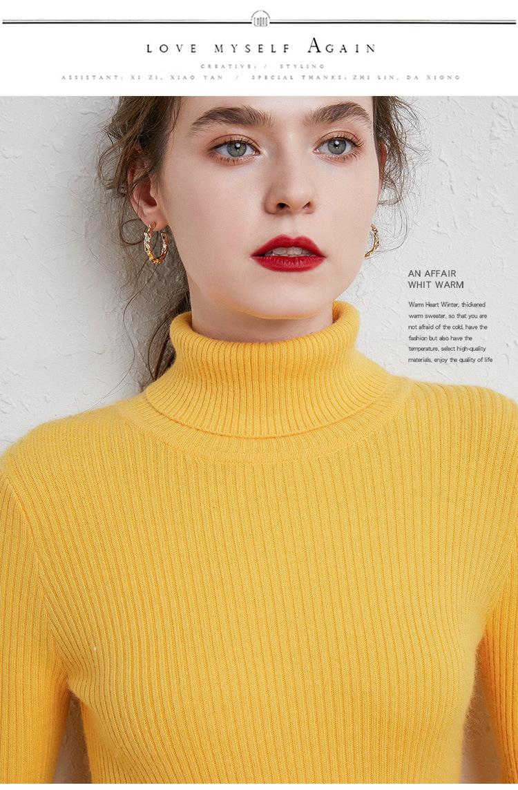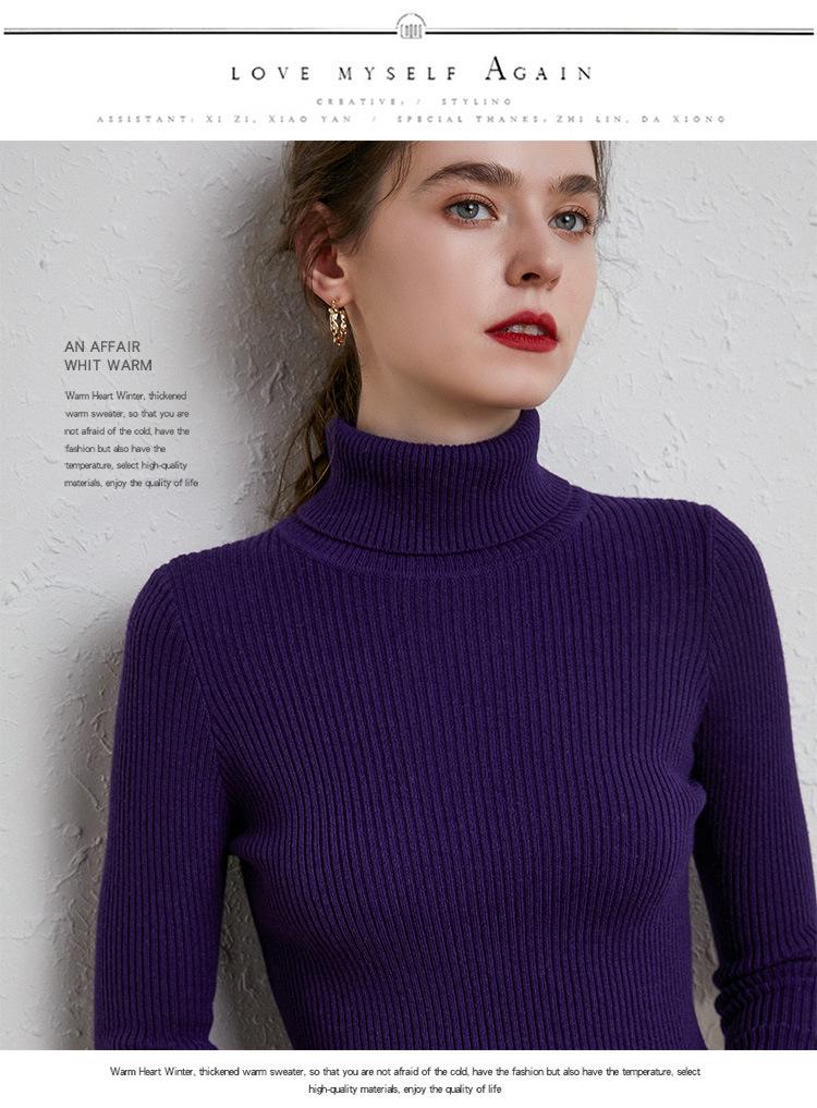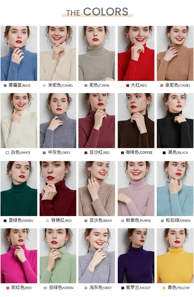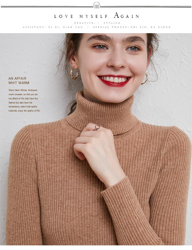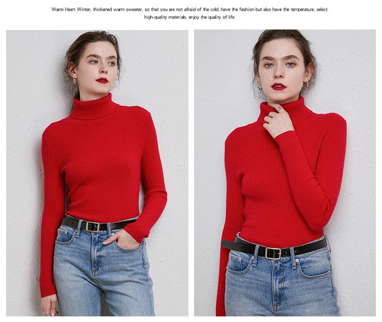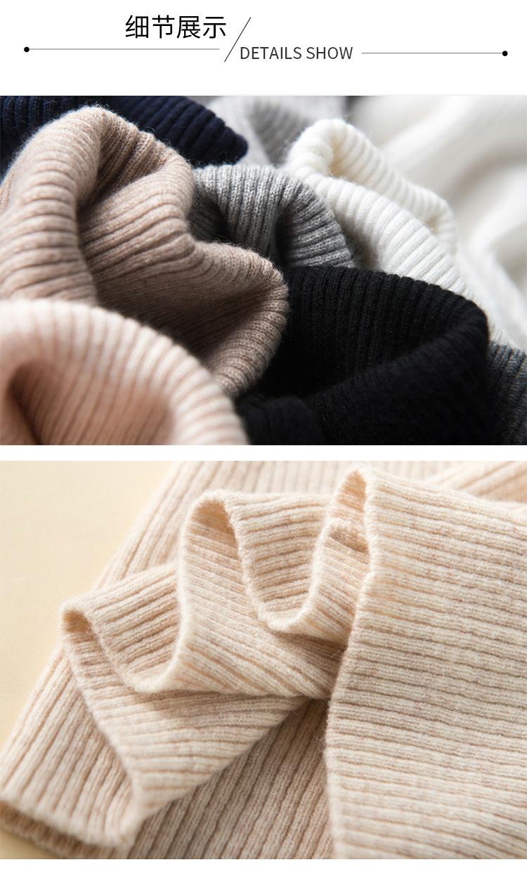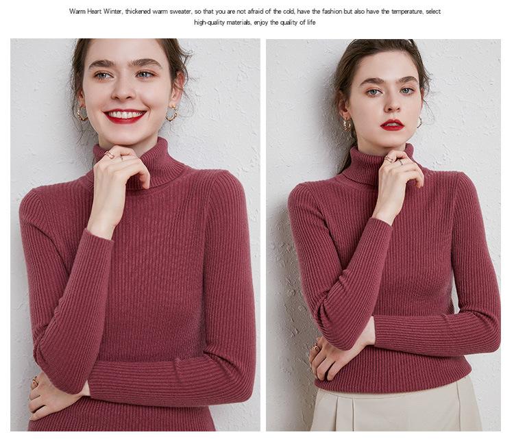 Suéter de Cuello Alto para Mujer Slim Otoño e Invierno Nuevo Estilo Grueso Versátil Jersey de Punto Ajustado de Manga Corta Larga Camisa Básica