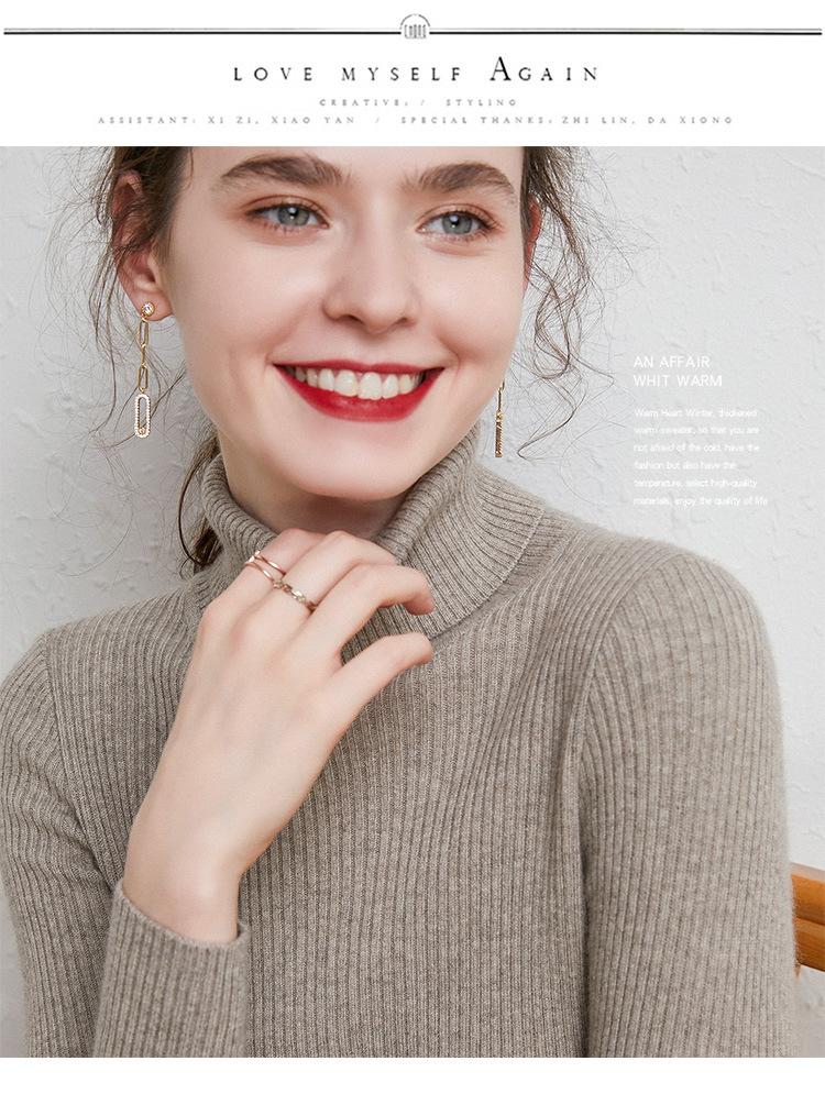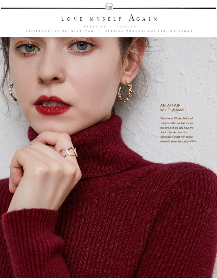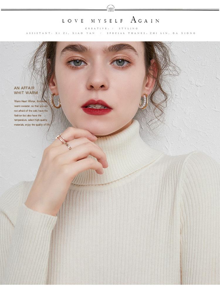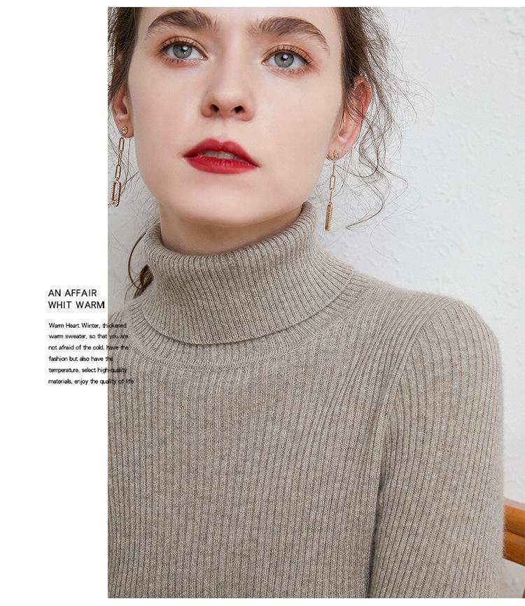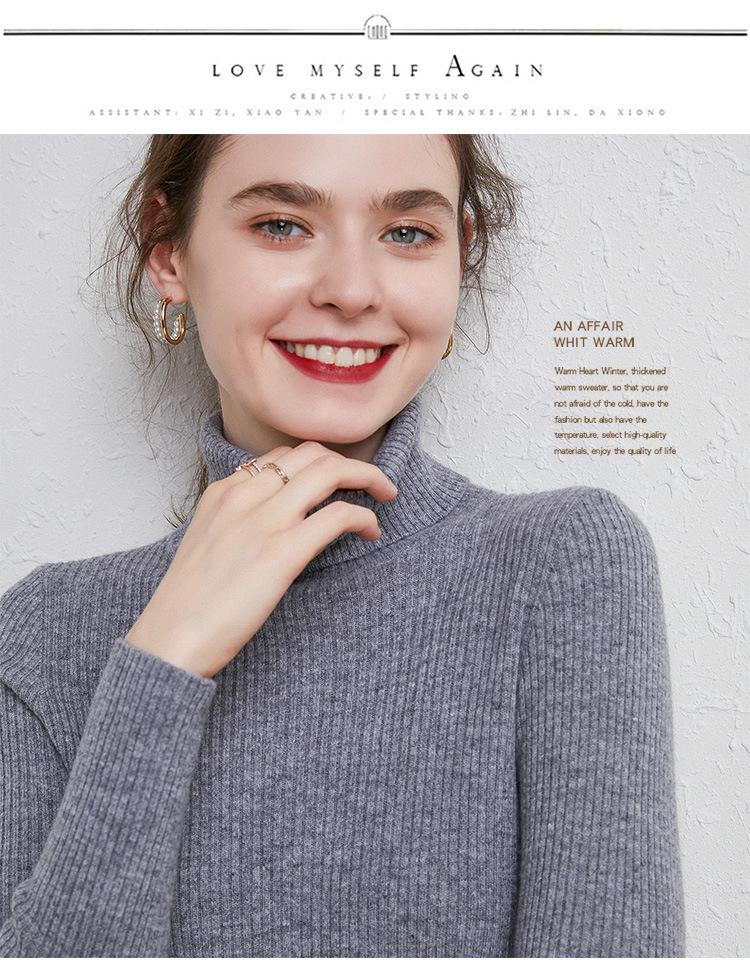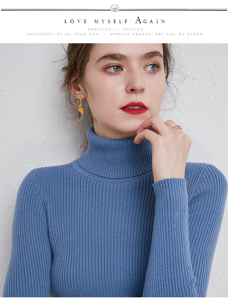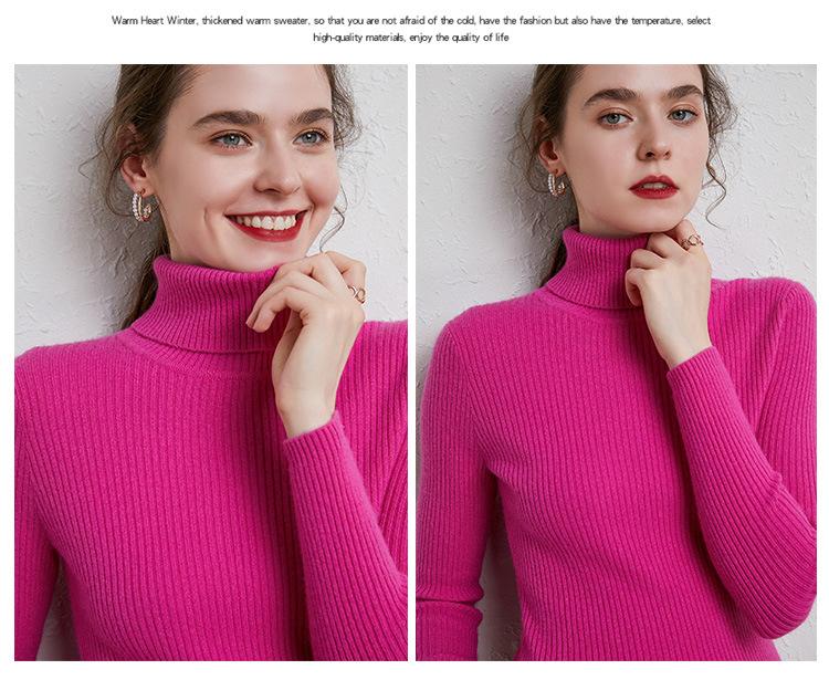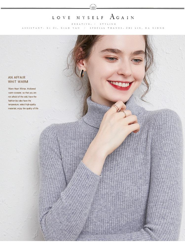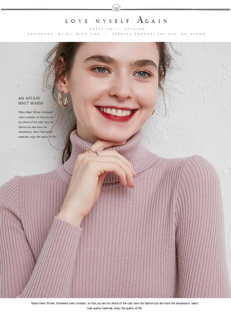 Suéter de Cuello Alto para Mujer Slim Otoño e Invierno Nuevo Estilo Grueso Versátil Jersey de Punto Ajustado de Manga Corta Larga Camisa Básica