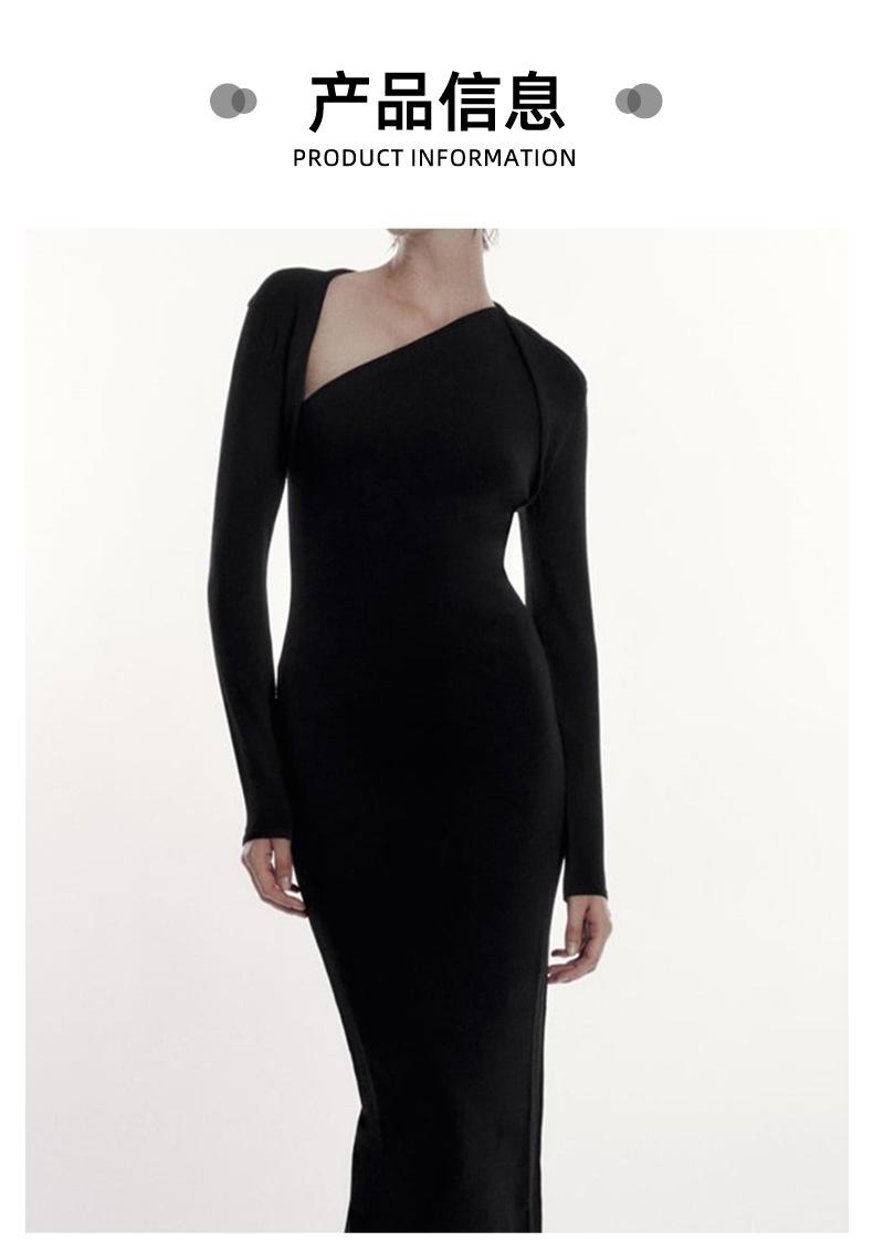 Compra Vestido de Fondo Alto 2025 para Mujer Diseño Europeo y Americano de Falda Larga Ajustada a la Cadera Cuello Inclinado Manga Larga para Fondo Falda Tejida al por mayor en Joom.pro