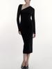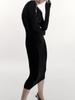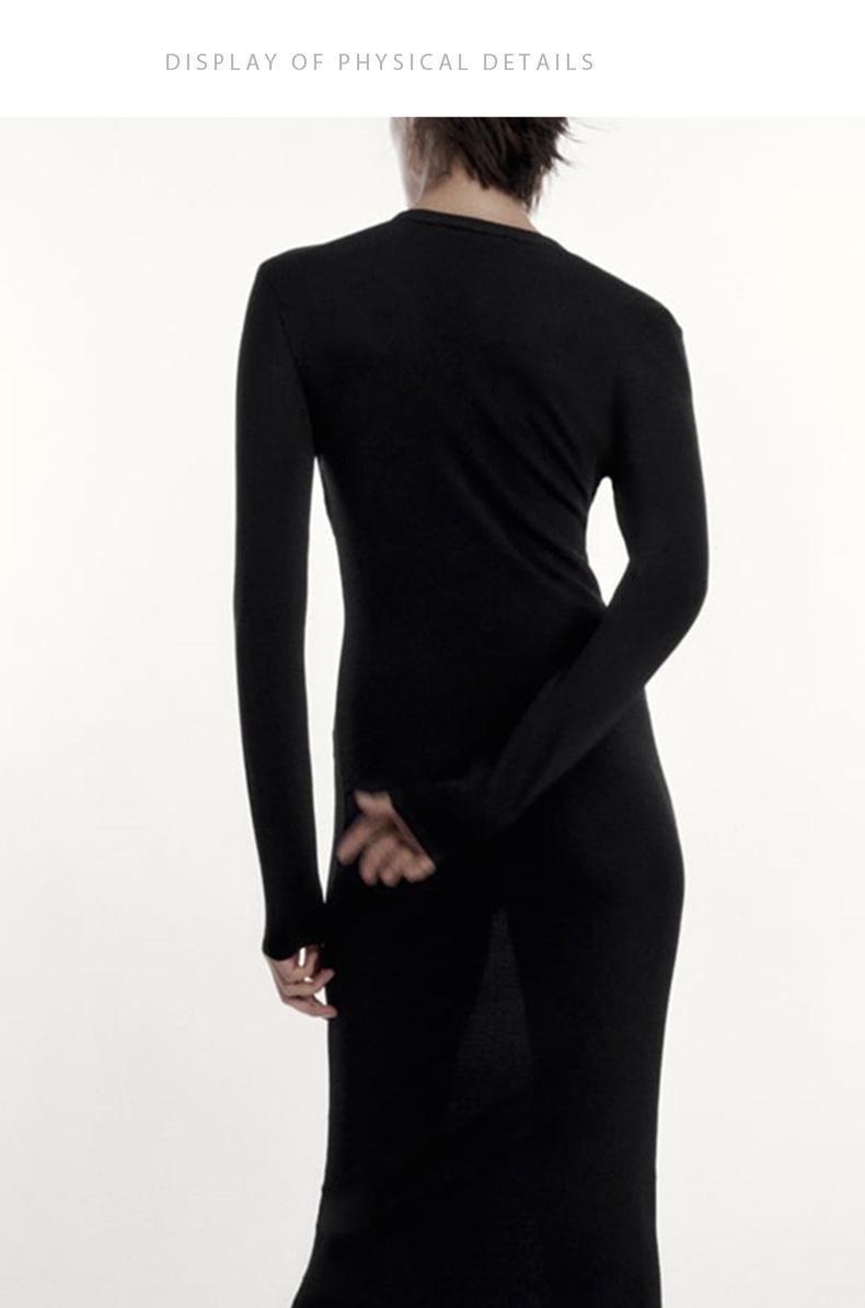 Vestido de Fondo Alto 2025 para Mujer Diseño Europeo y Americano de Falda Larga Ajustada a la Cadera Cuello Inclinado Manga Larga para Fondo Falda Tejida