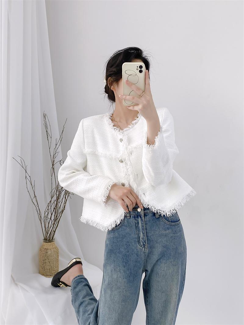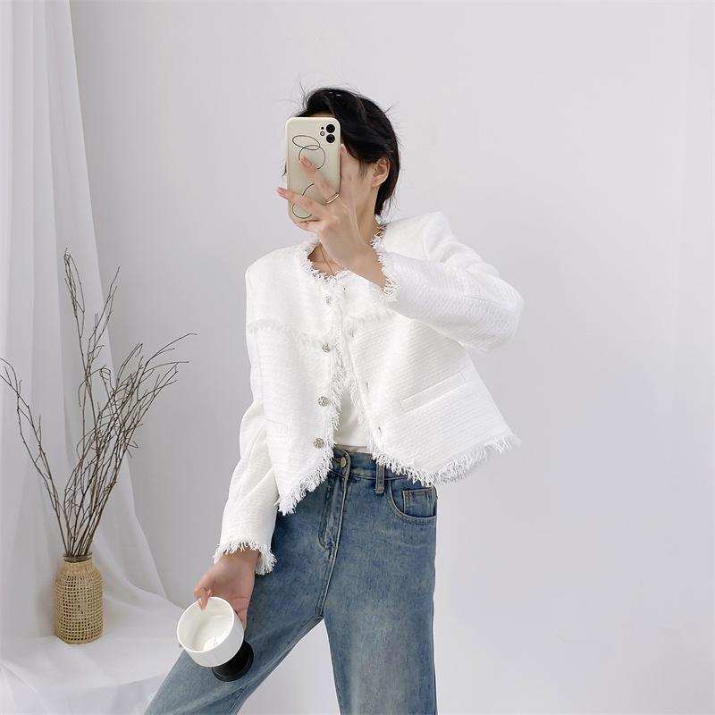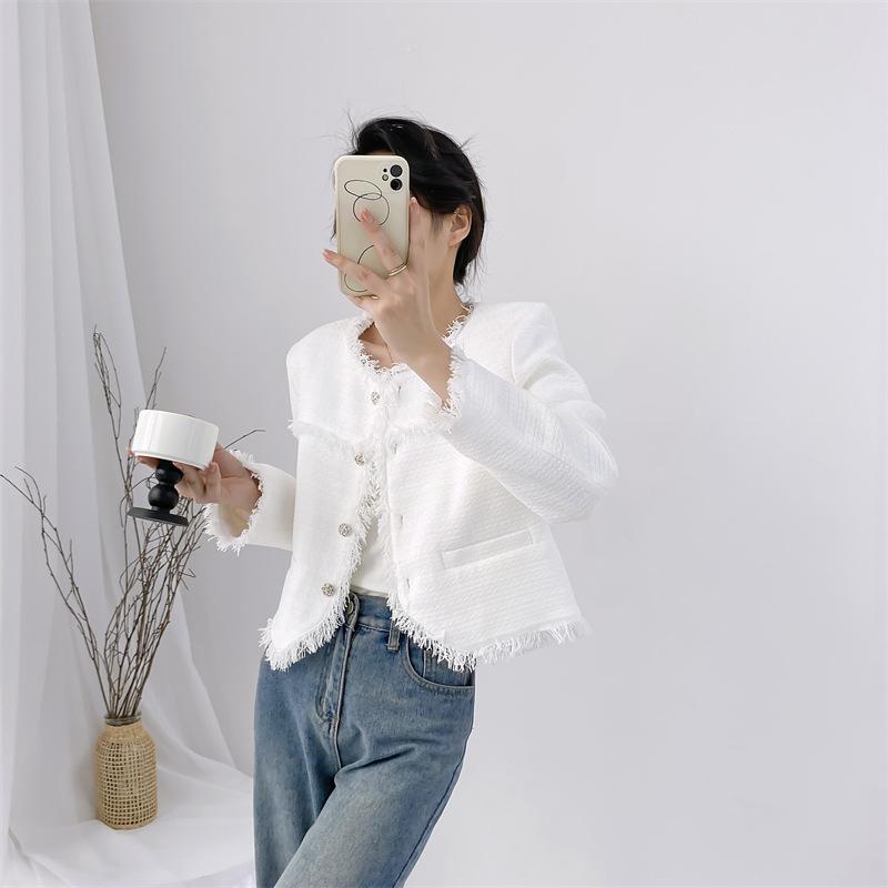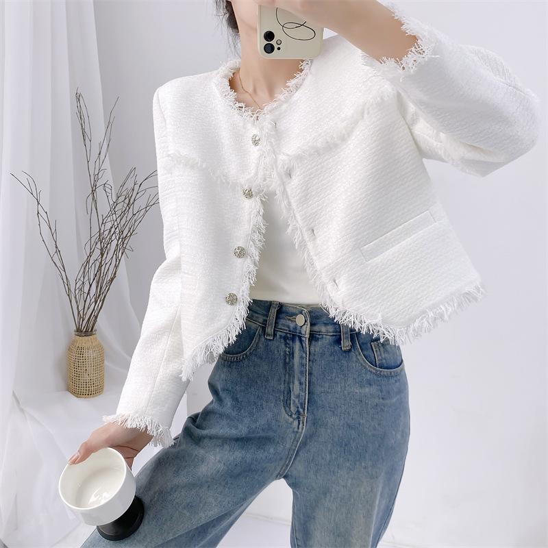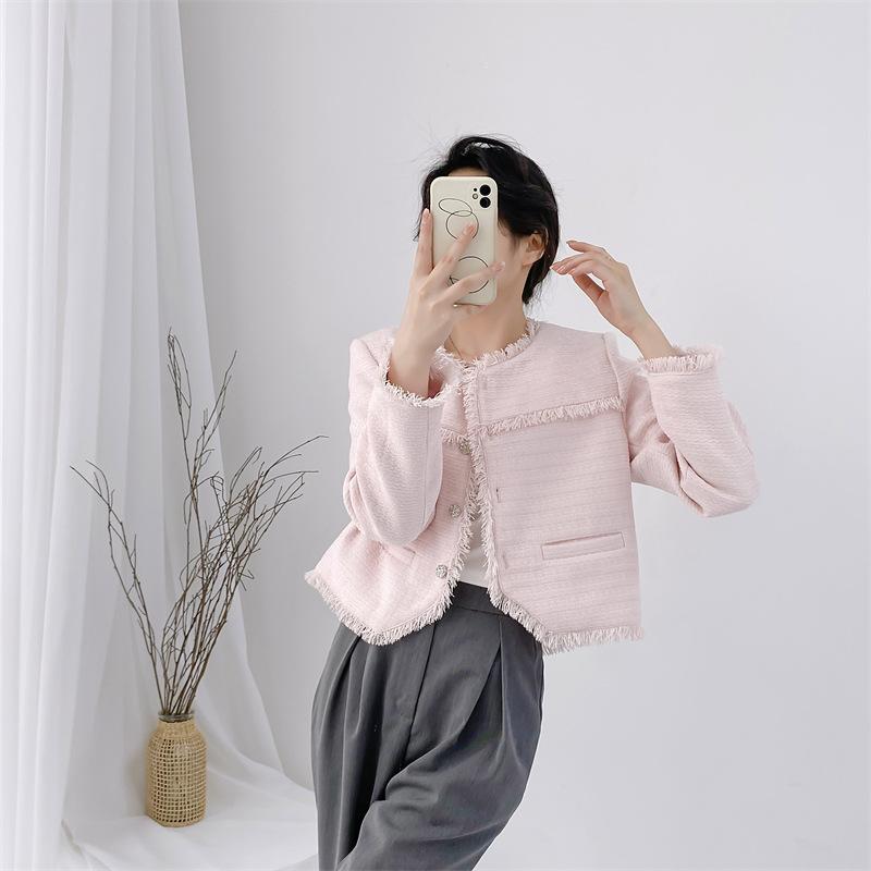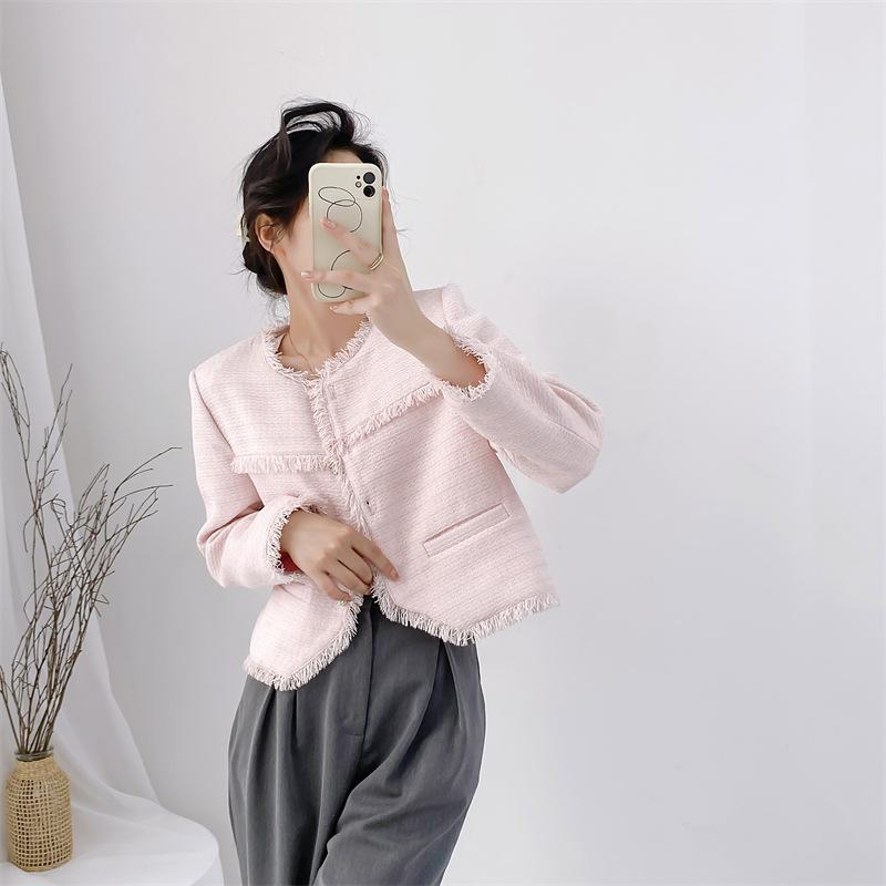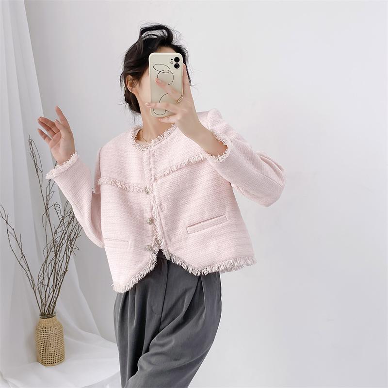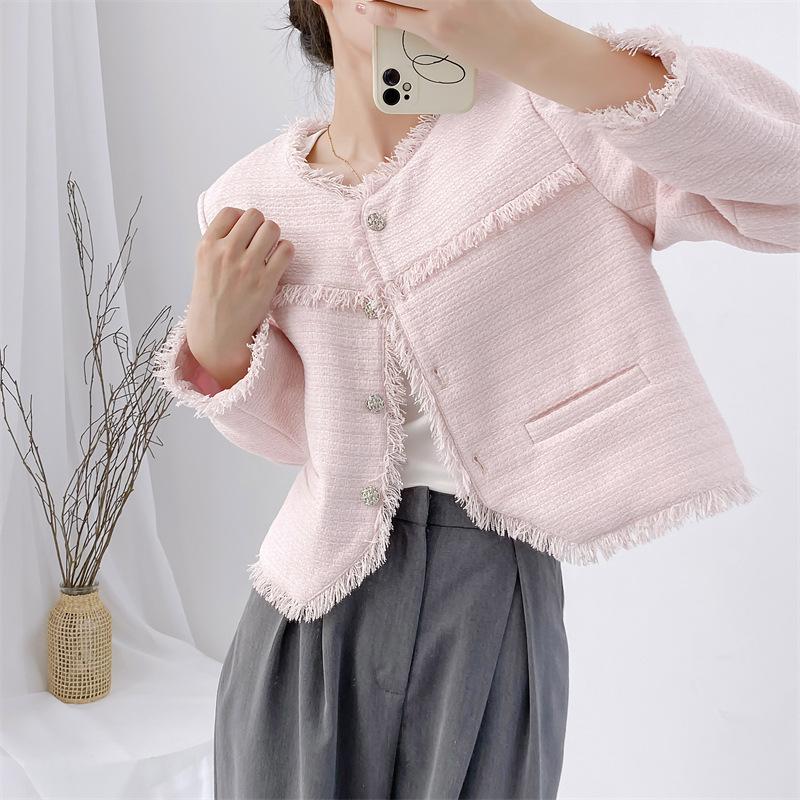 Abrigo estilo Chanel estilo francés, elegante y elegante, para mujer, estilo socialité, holgado, adelgazante, con borlas, para primavera y otoño.