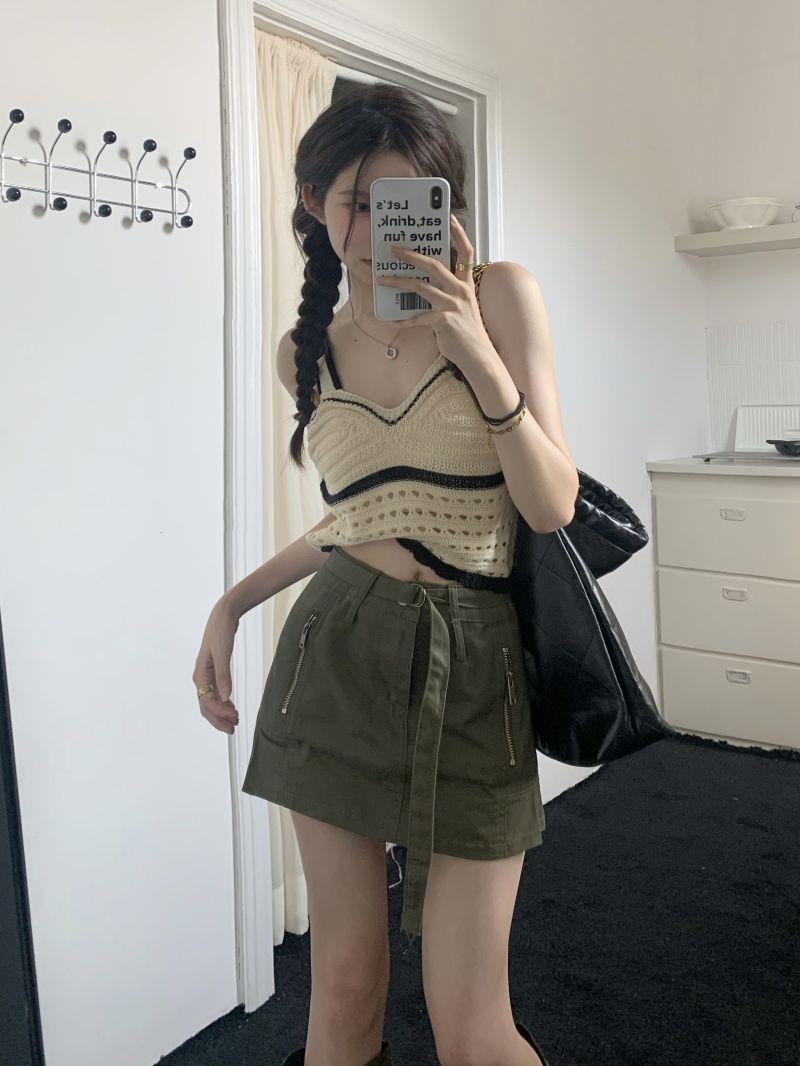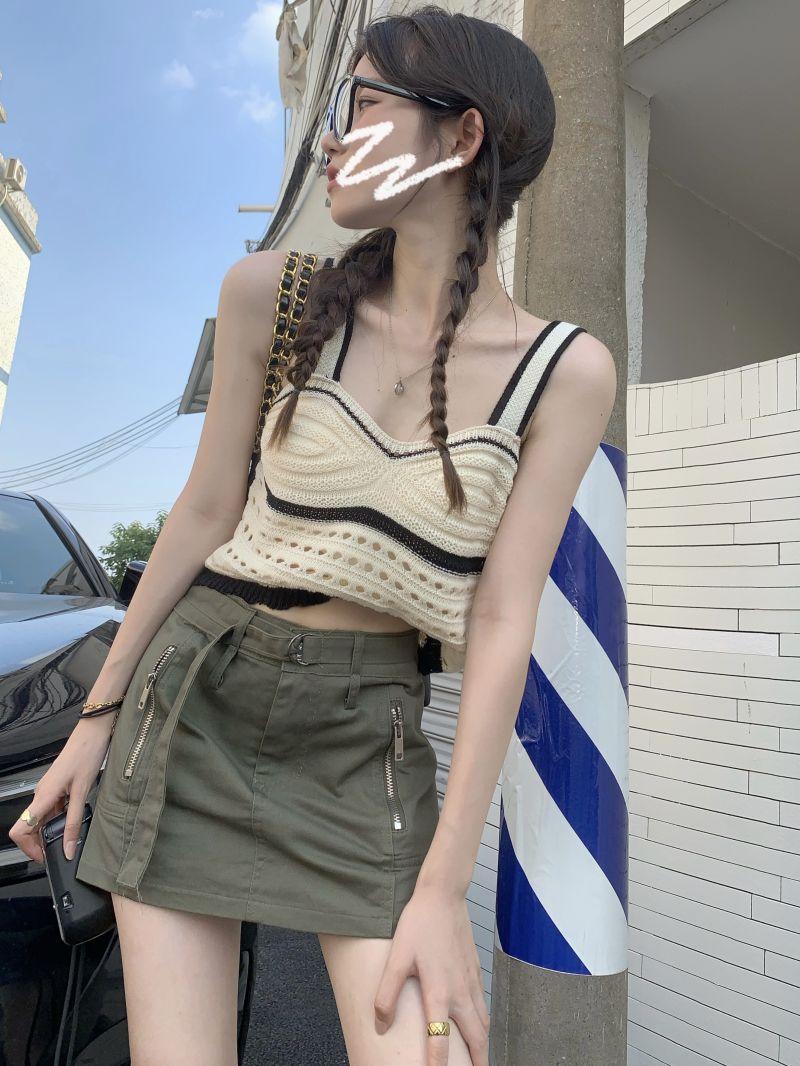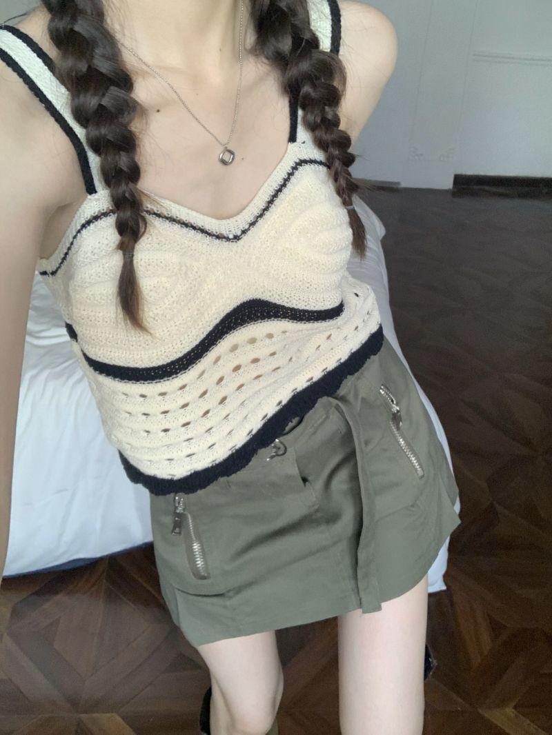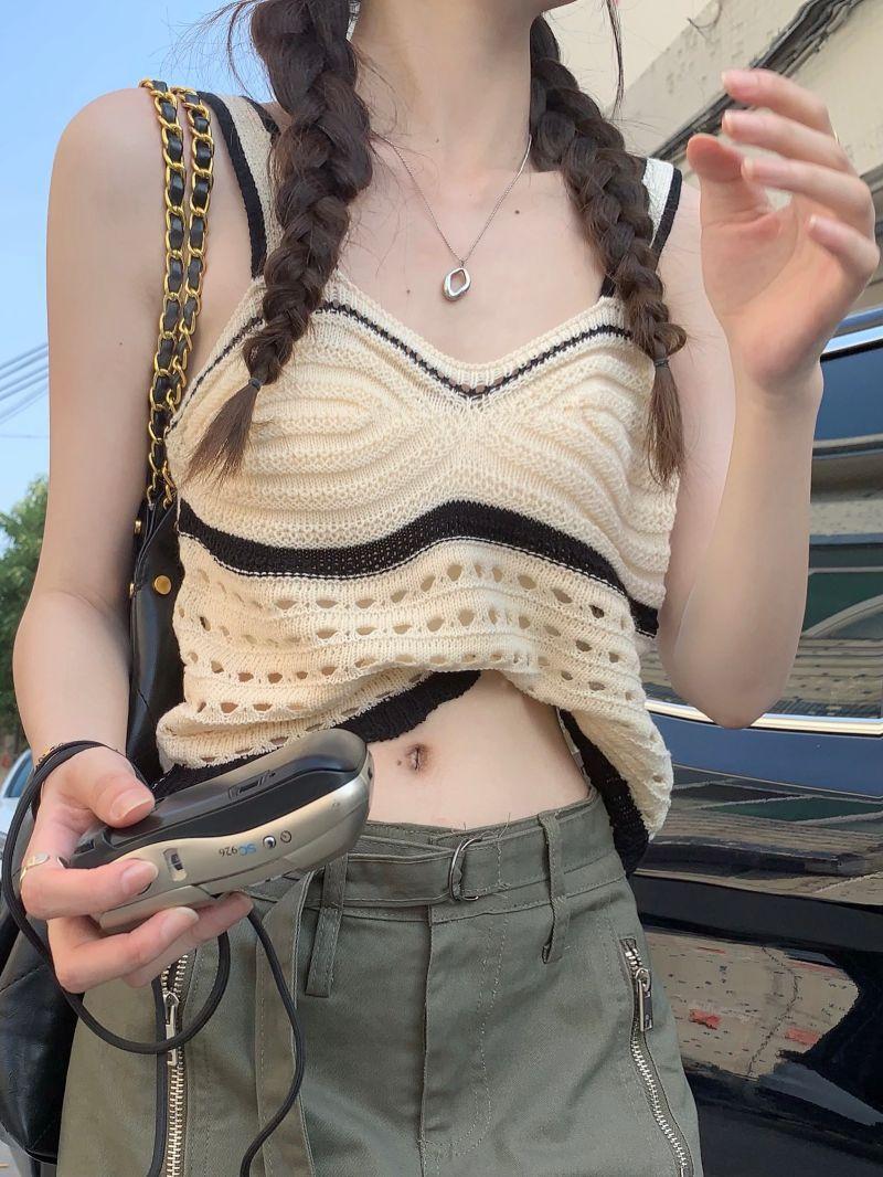 Camisola corta con escote en V y contraste de color para mujer, estilo informal, estilo Spice Girls, corte entallado, sexy, para verano de 2023