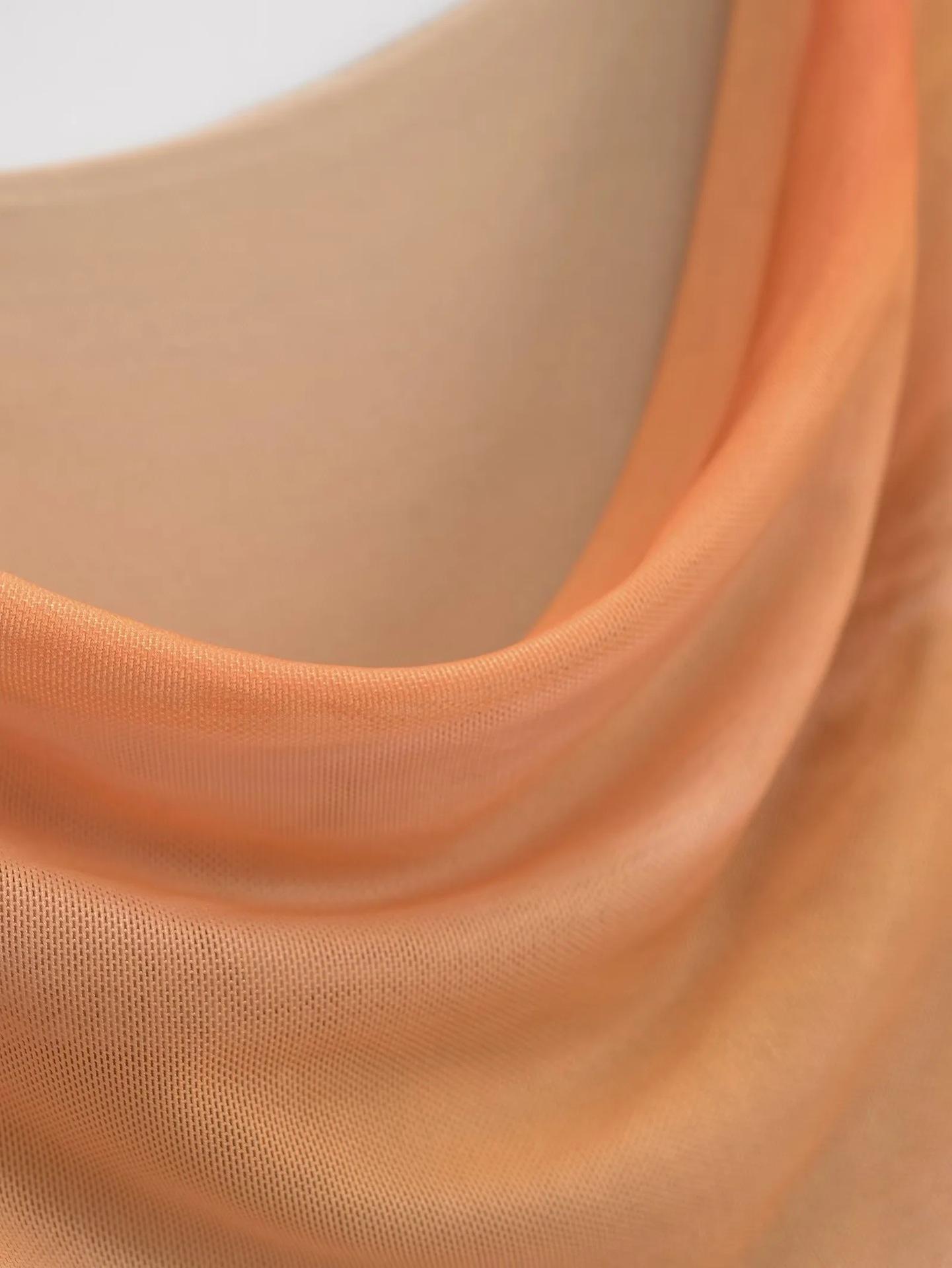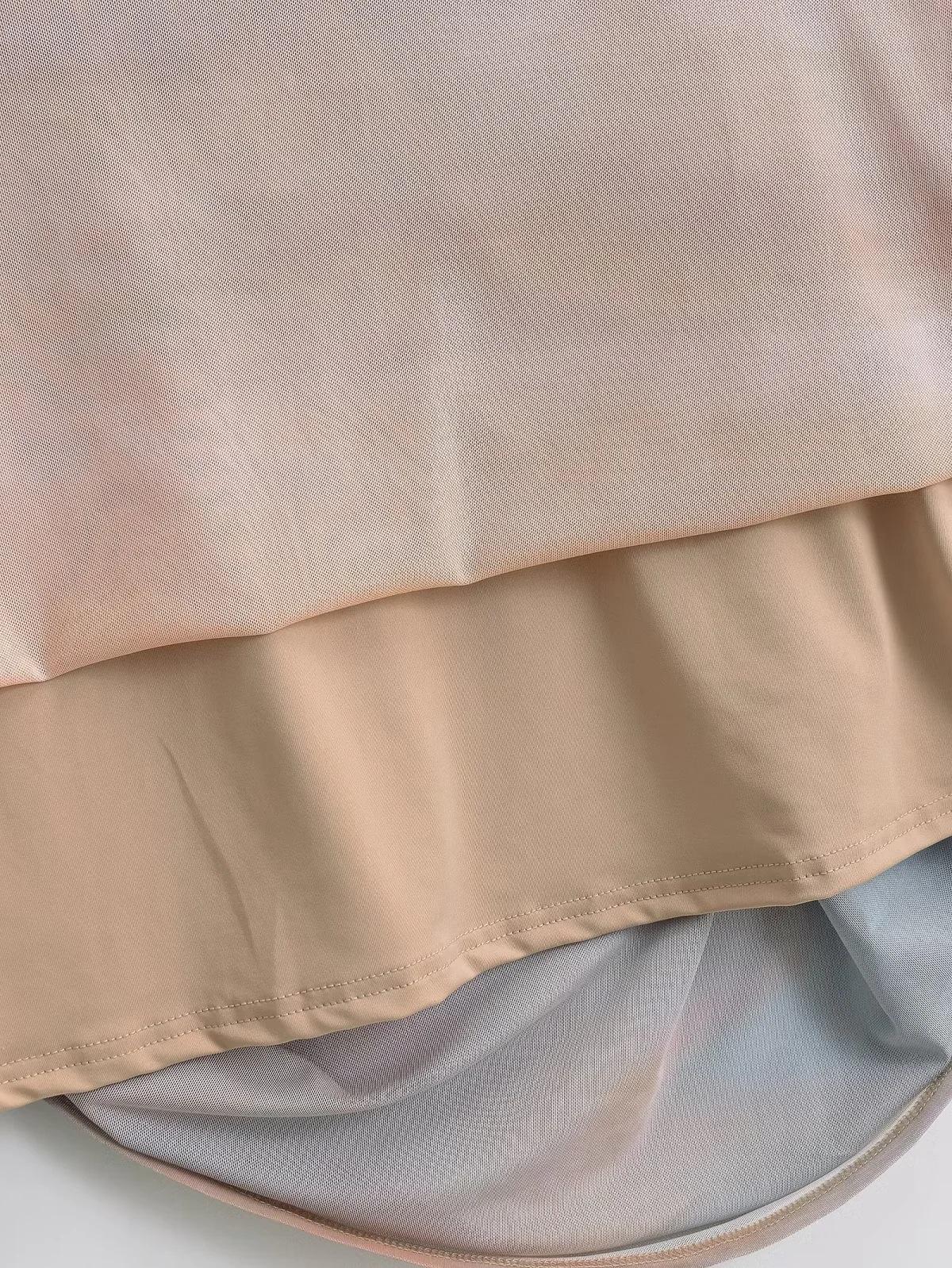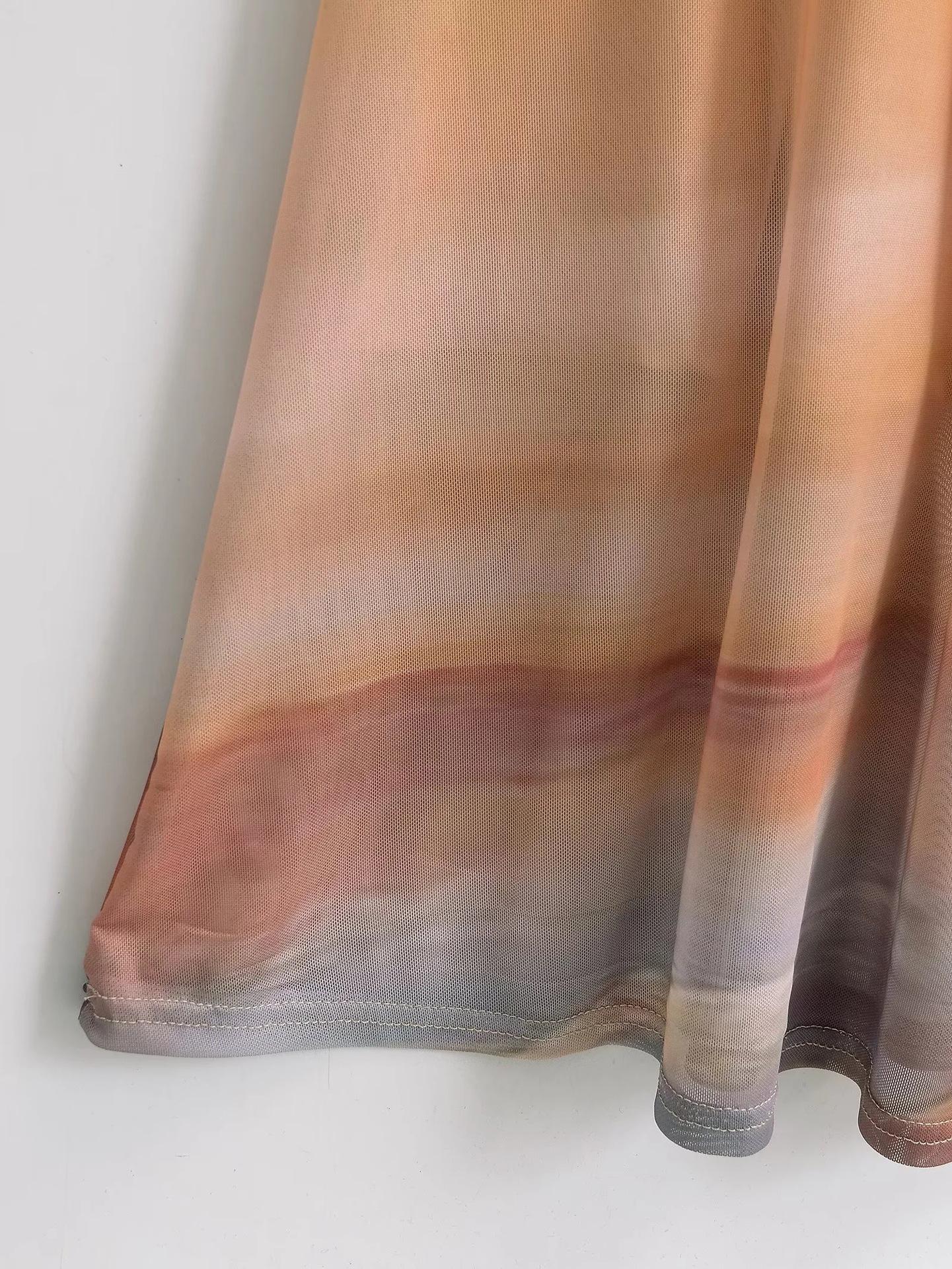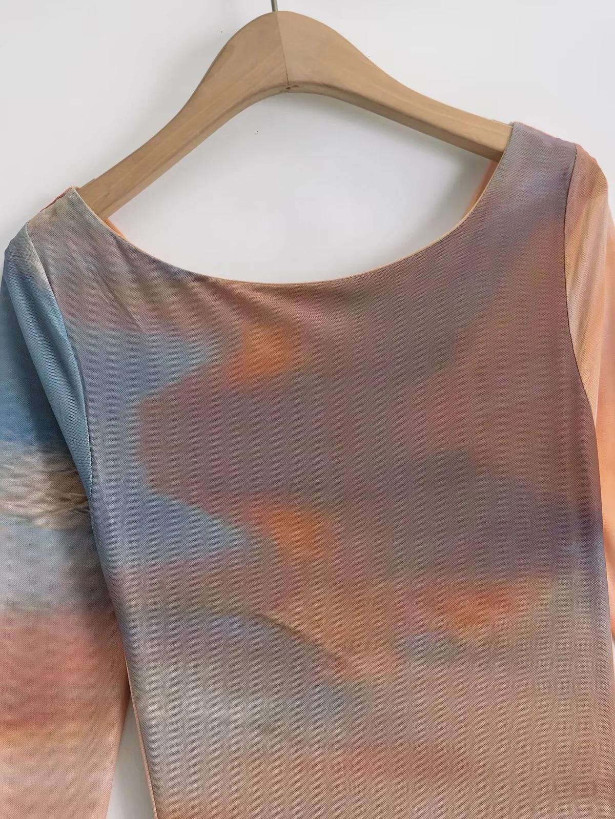 Vestido largo de malla con estampado de pintura al óleo de estilo francés para mujer, nuevo estilo de verano, cuello alto, manga larga y abertura lateral.