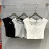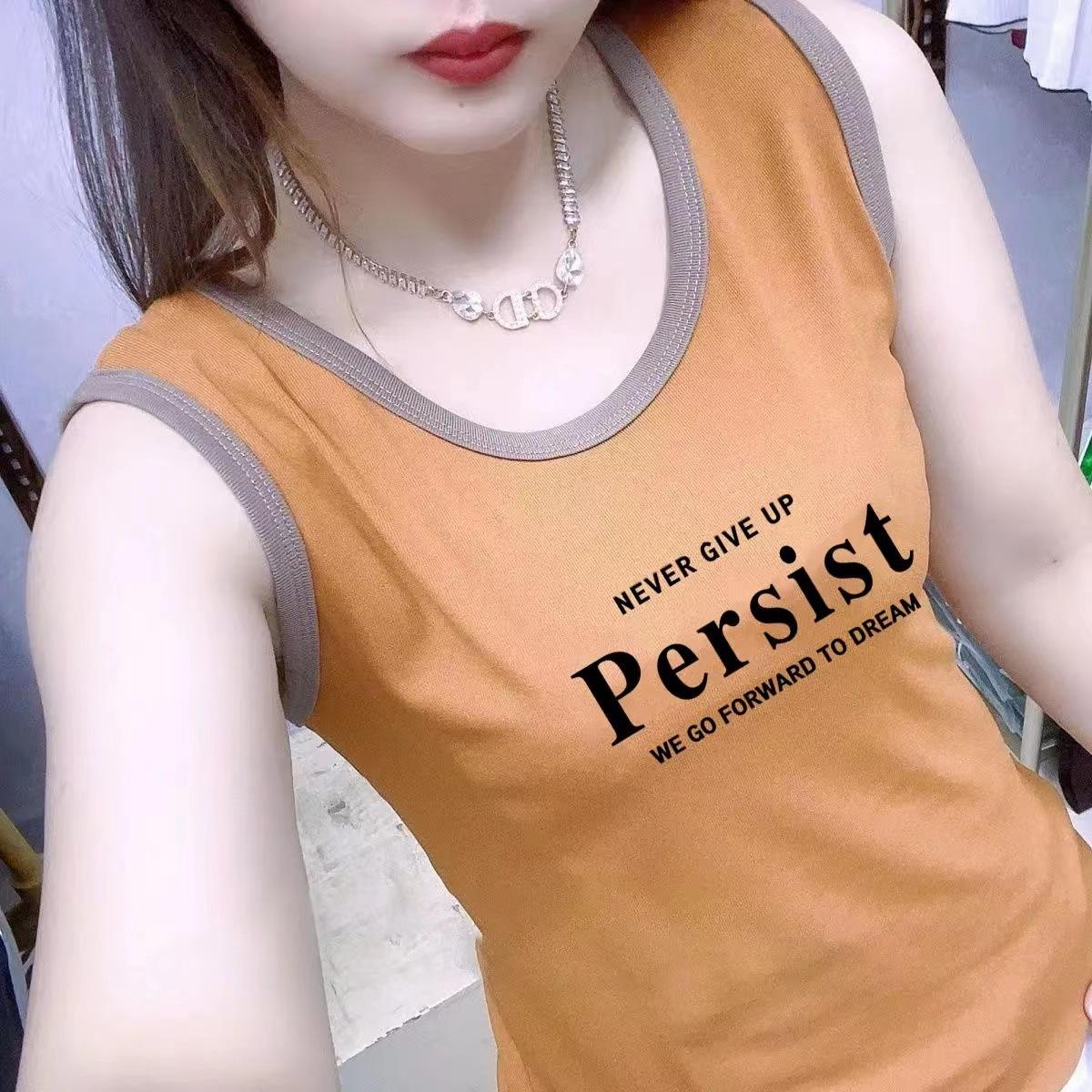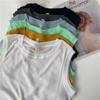 Verano Nuevo Camiseta Básica Chaleco Cuello Redondo Ropa Exterior Estilo Europeo y Americano Hombro Ancho Chaleco Ajustado Camiseta sin Mangas para Mujer