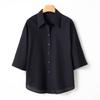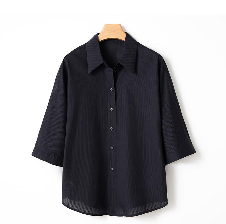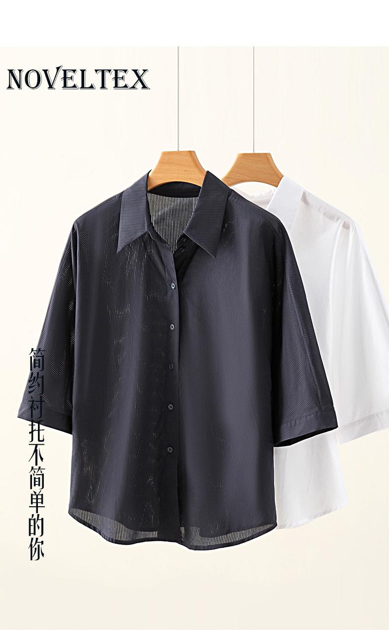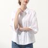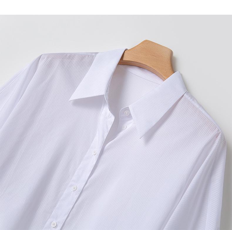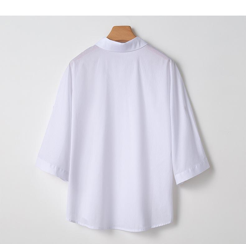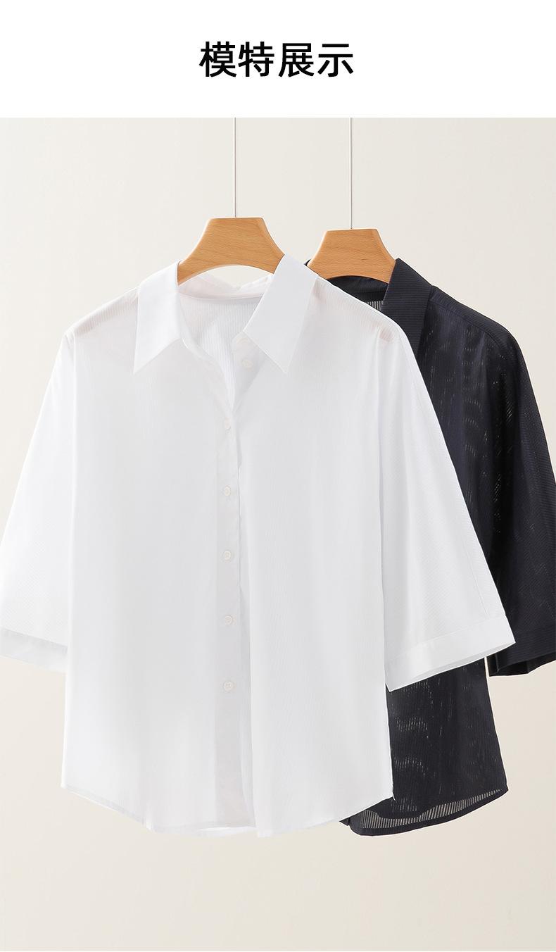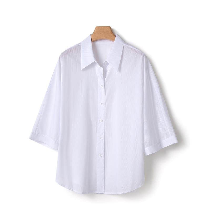 Camisa de Mujer Verano Rayada Blanca Ropa Exterior 2025 Nuevo Nicho Top de Media Manga Casual Algodón Suelto Ropa de Trabajo Camisa