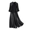 Cortavientos ligero, delgado y fresco, de acetato satinado sedoso de largo medio para mujer con mangas medias