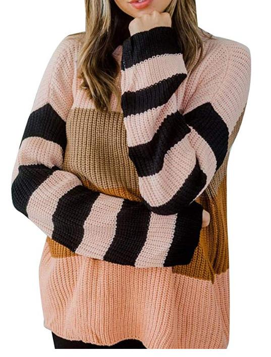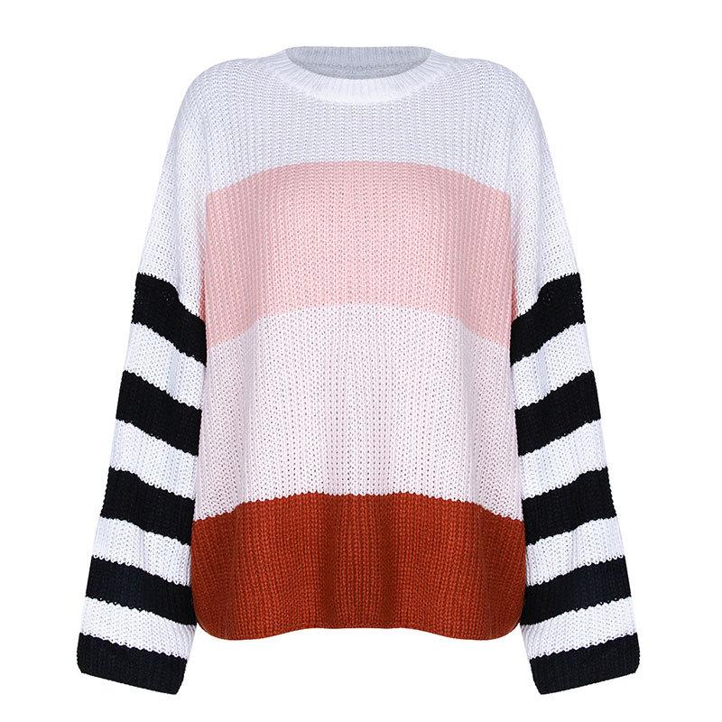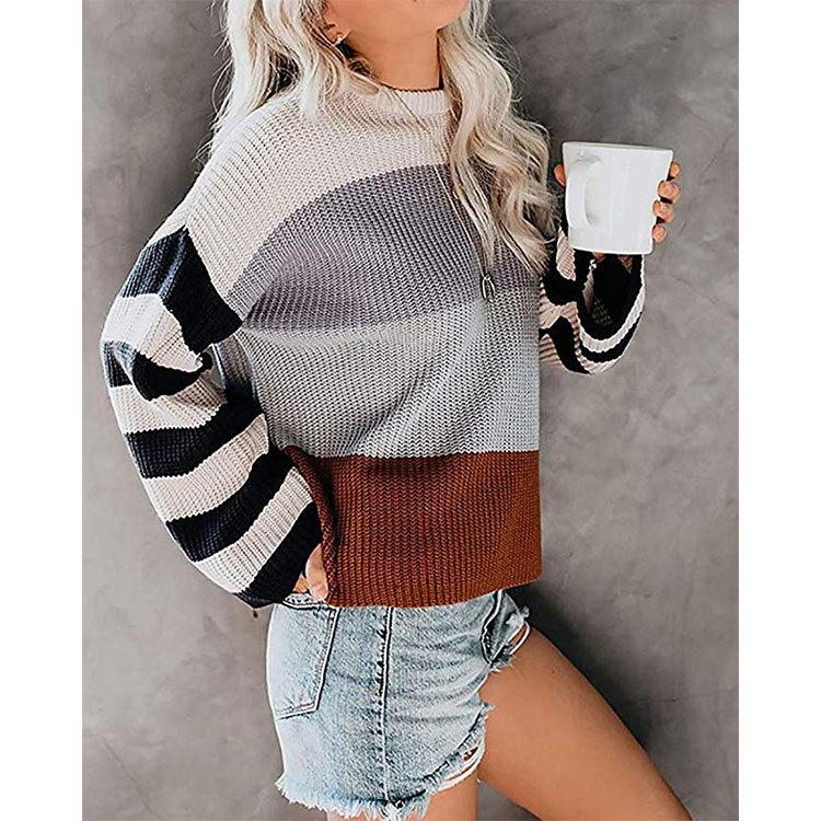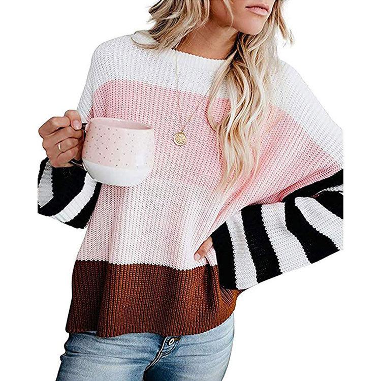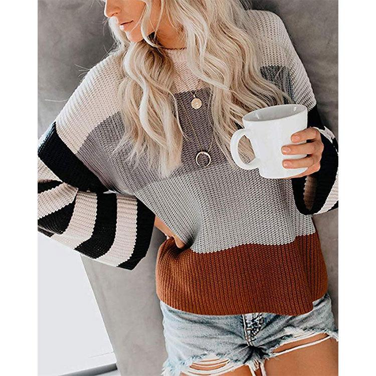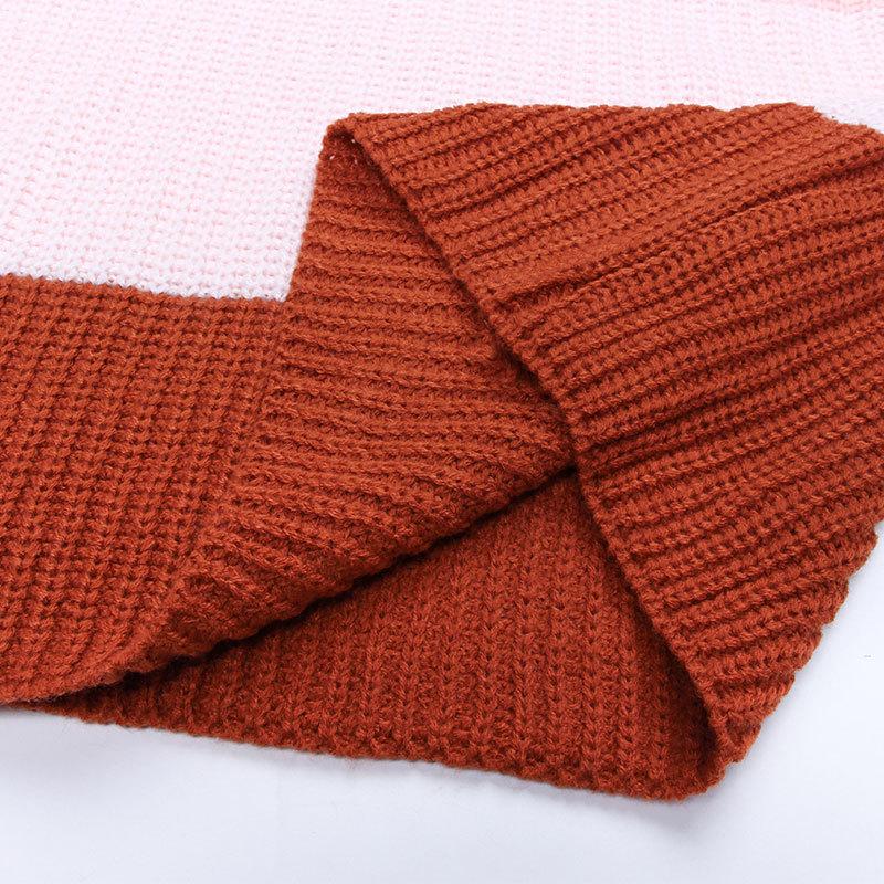 Ropa de Otoño e Invierno para Mujer Amazon Top de Punto de Cuello Redondo Empalmado a Color Suéter Jersey Europeo y Americano Transfronterizo
