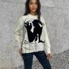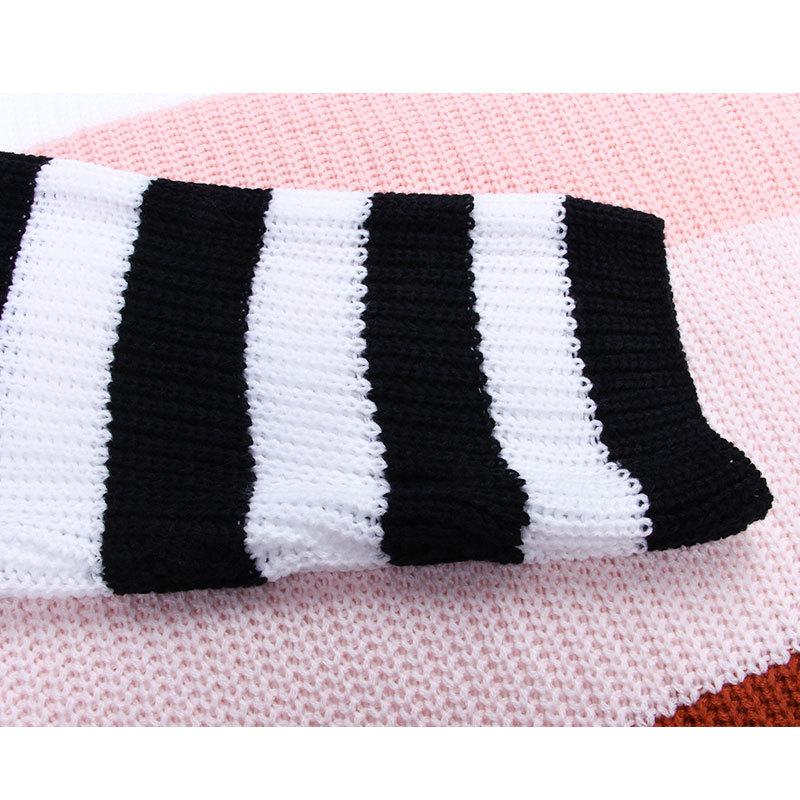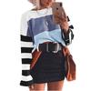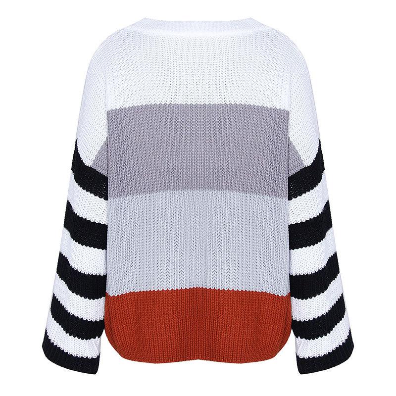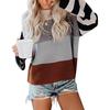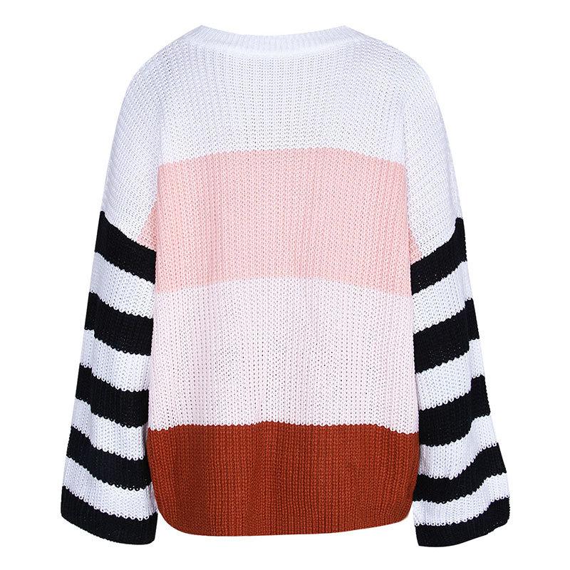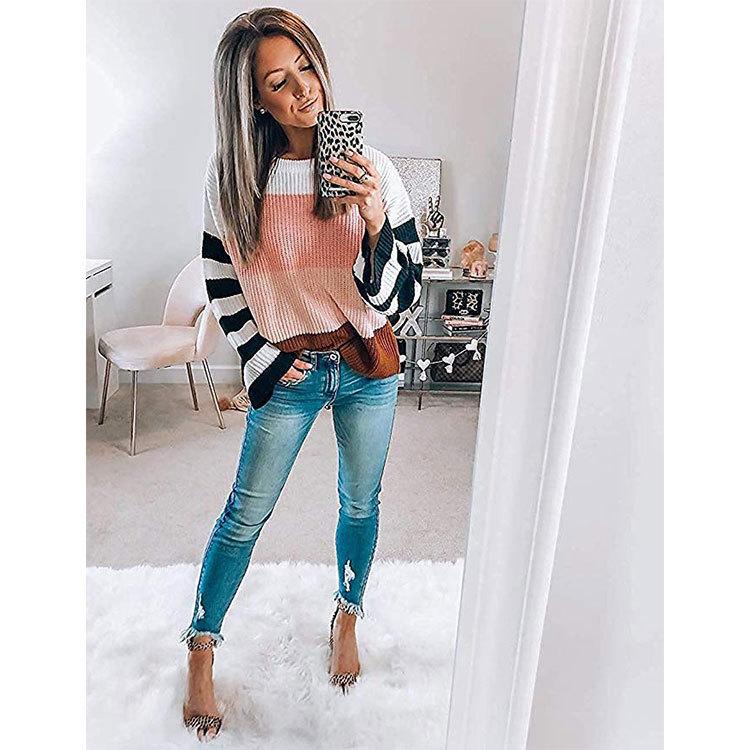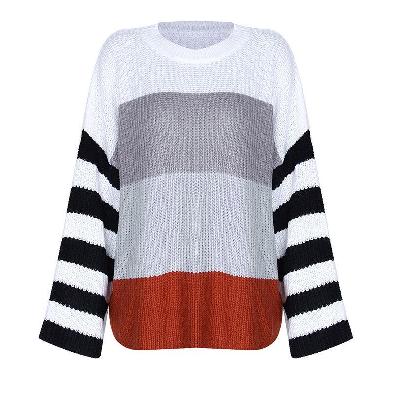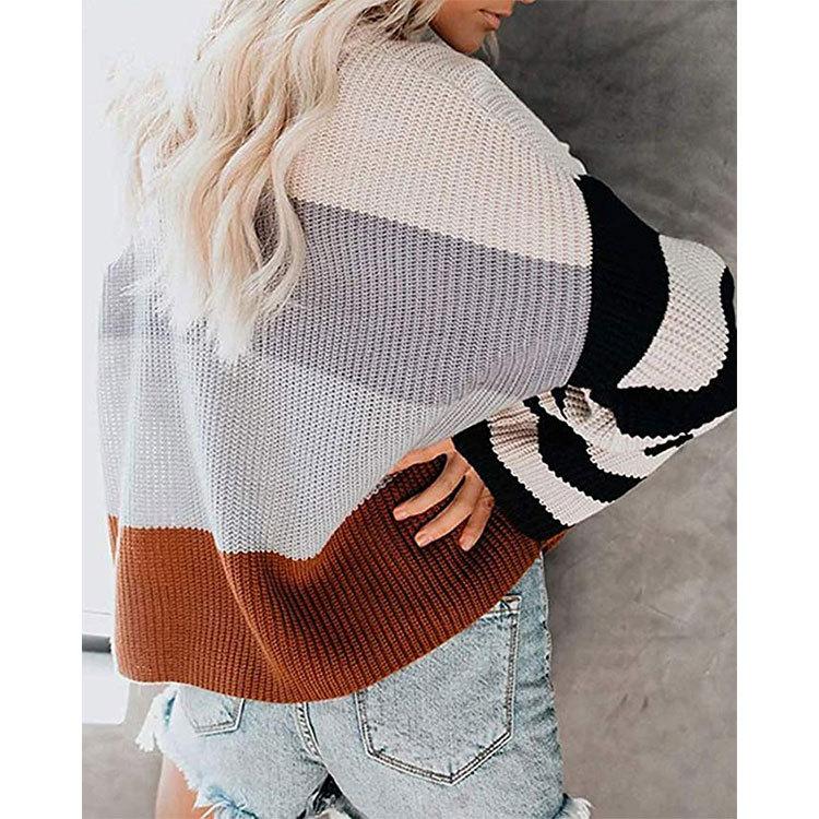 Ropa de Otoño e Invierno para Mujer Amazon Top de Punto de Cuello Redondo Empalmado a Color Suéter Jersey Europeo y Americano Transfronterizo