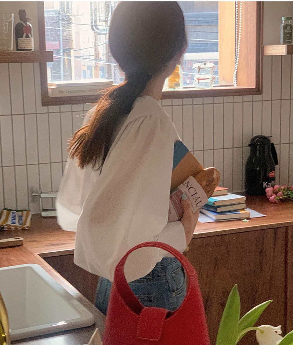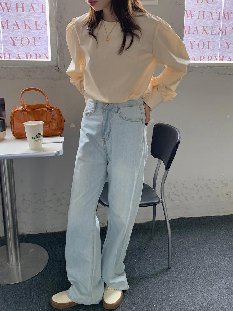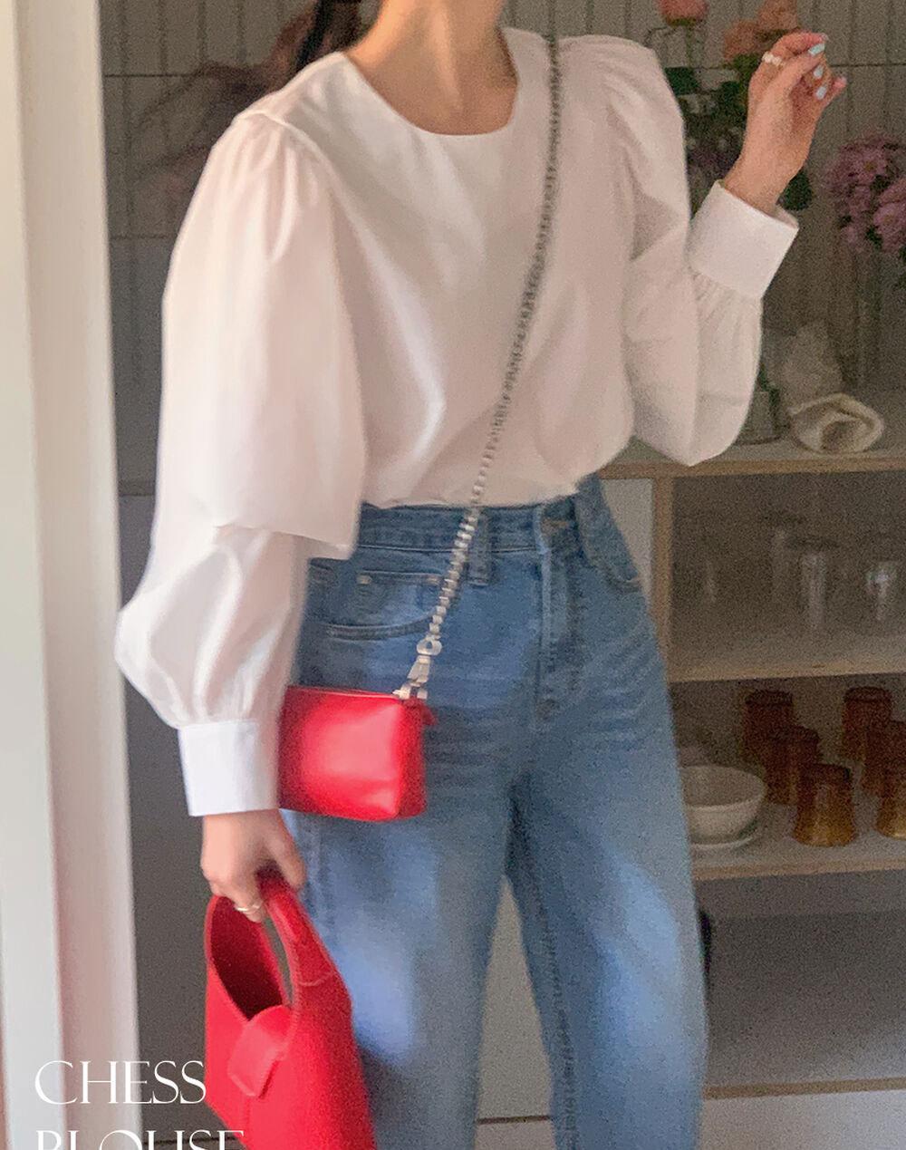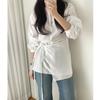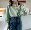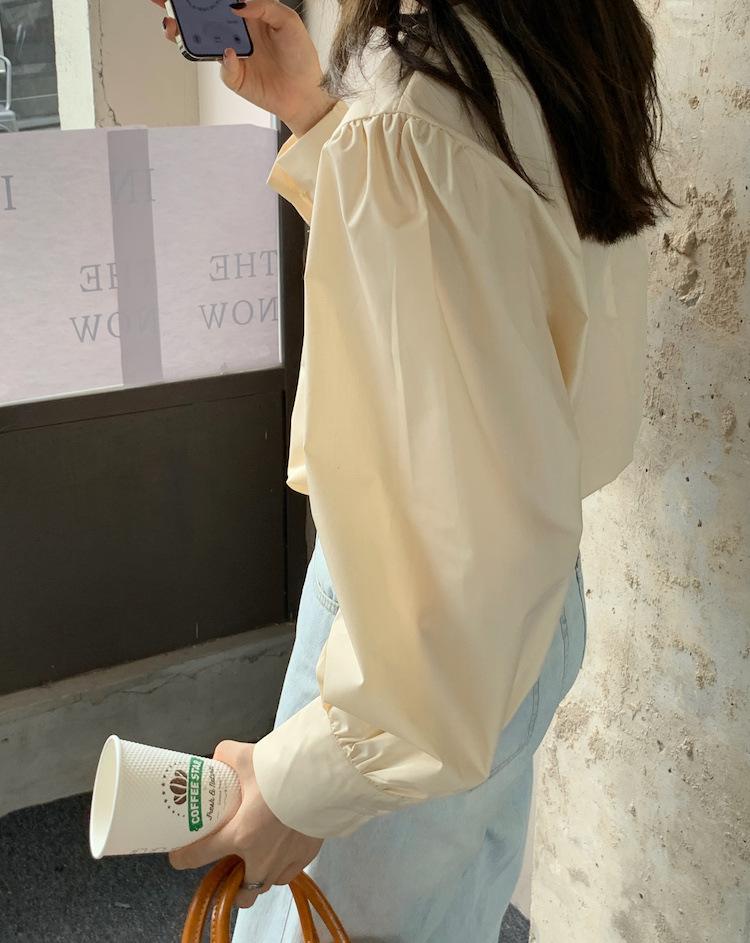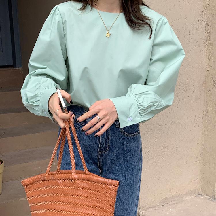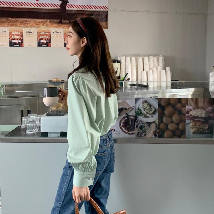Foto real de 2025 Principios de Otoño Nuevo Estilo Coreano Ins Versátil Manga Abullonada Color Puro Camisa Blanca para Mujer