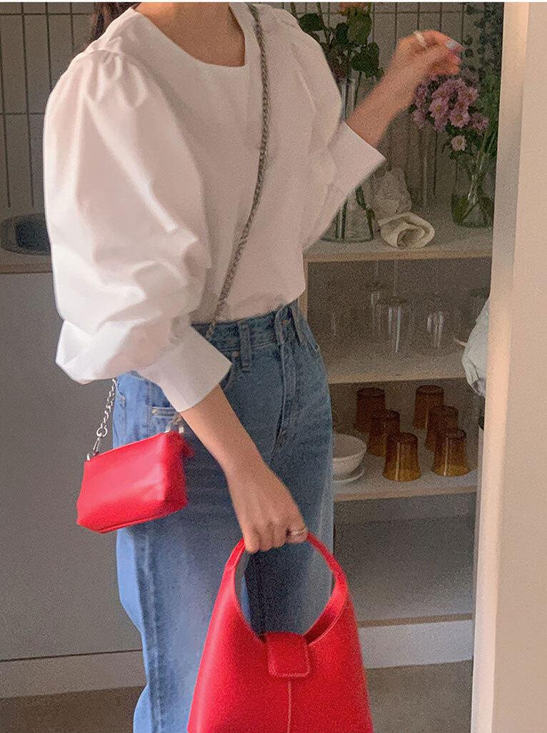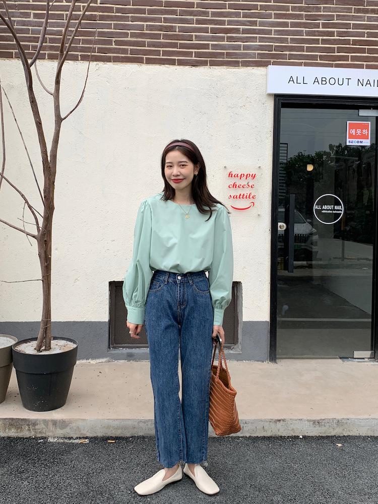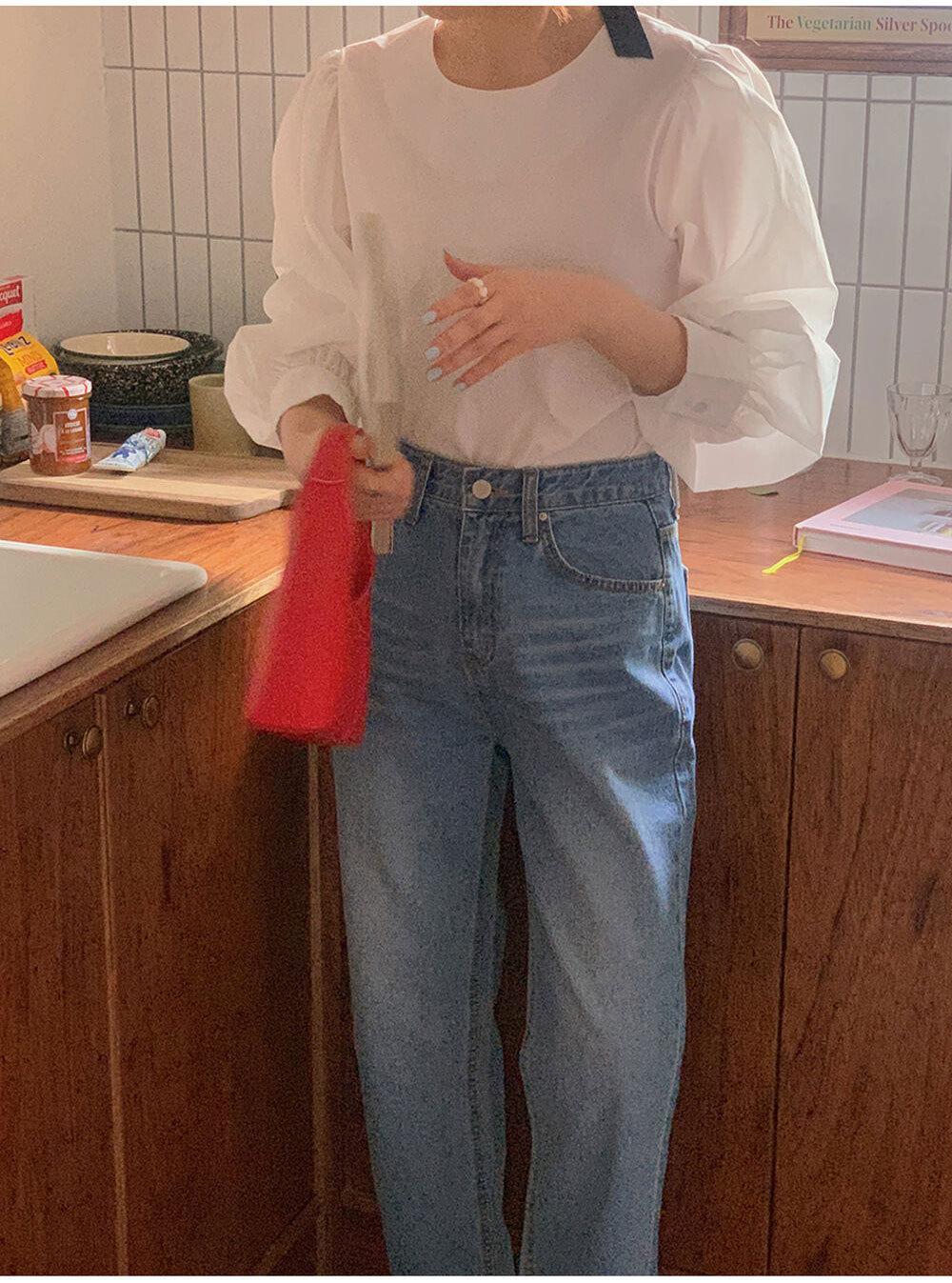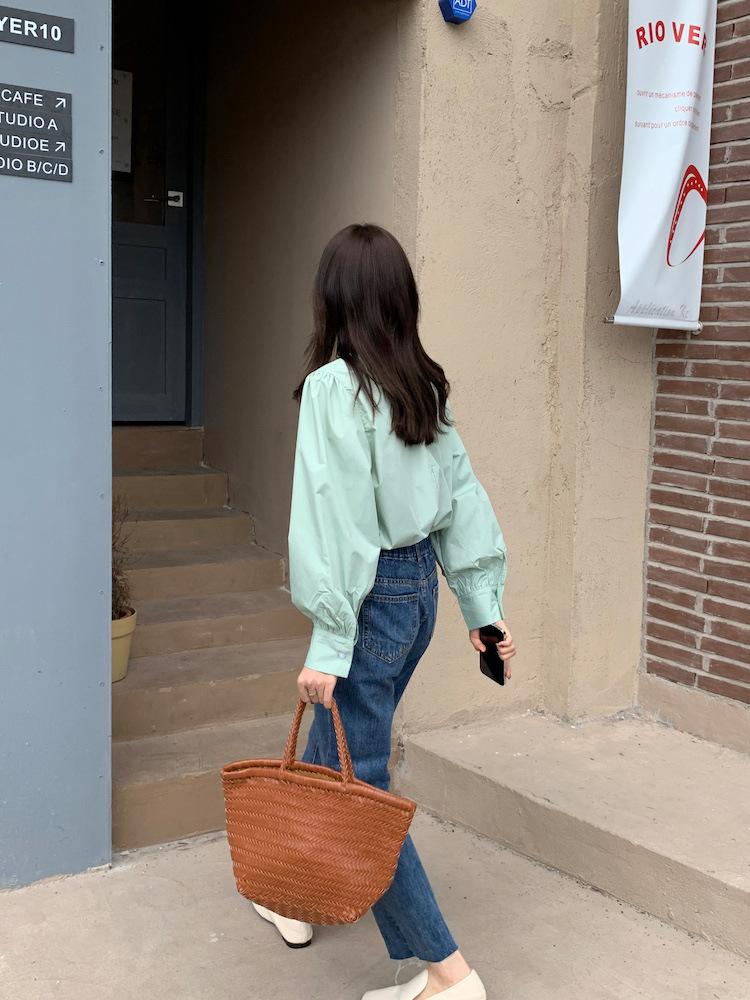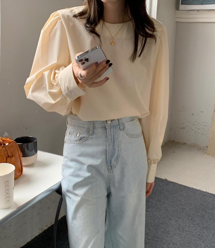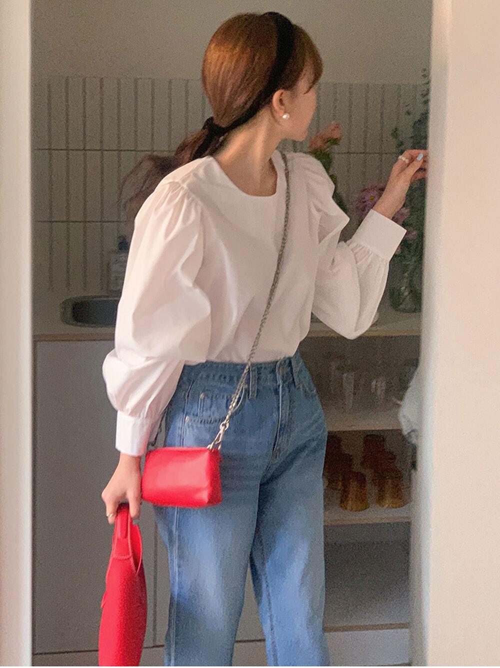 Foto real de 2025 Principios de Otoño Nuevo Estilo Coreano Ins Versátil Manga Abullonada Color Puro Camisa Blanca para Mujer
