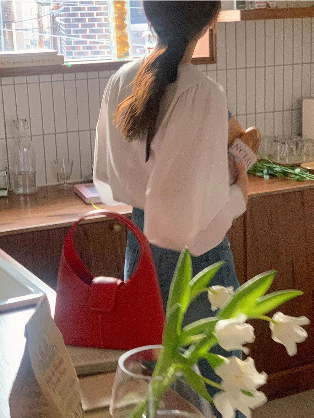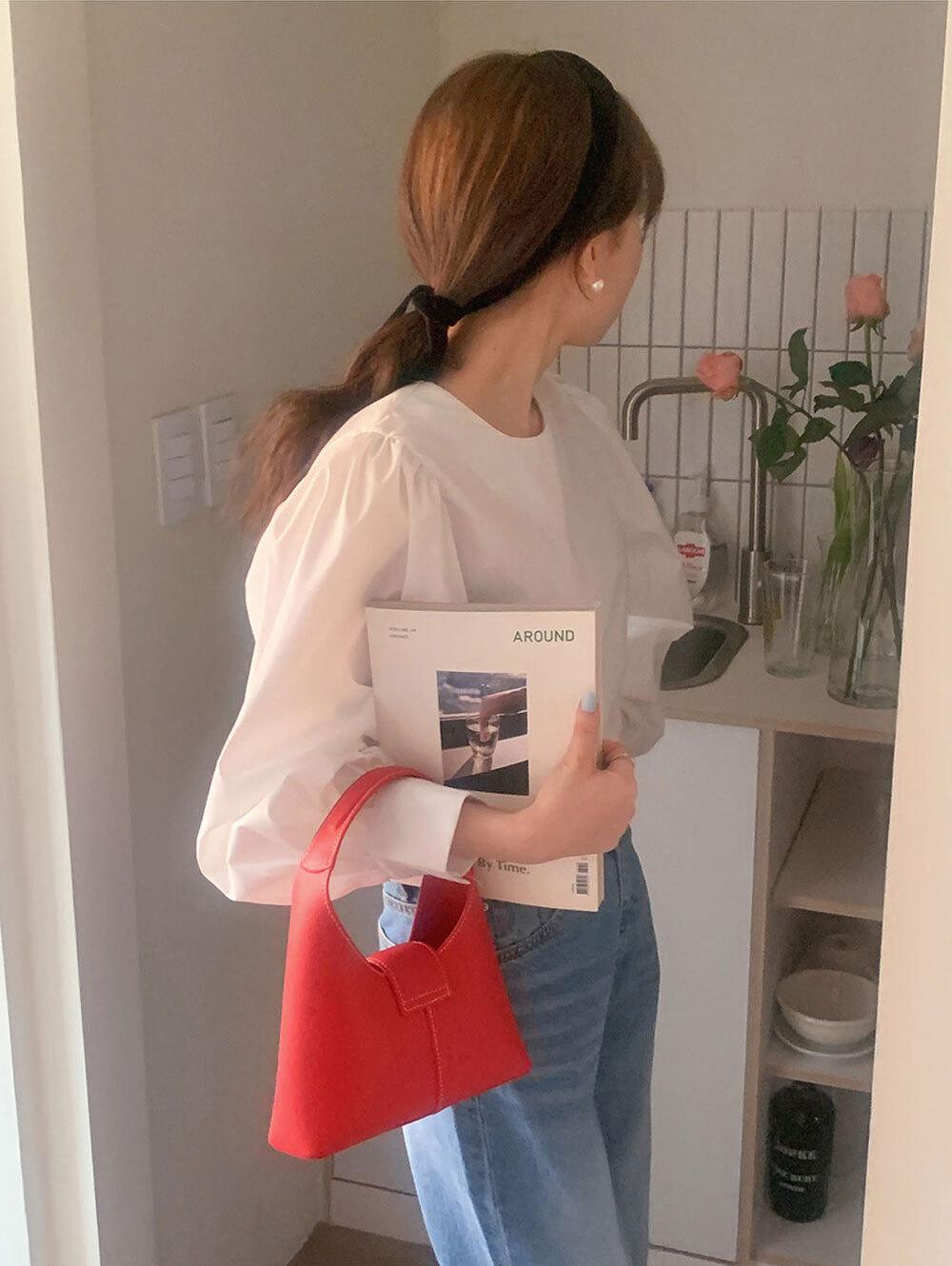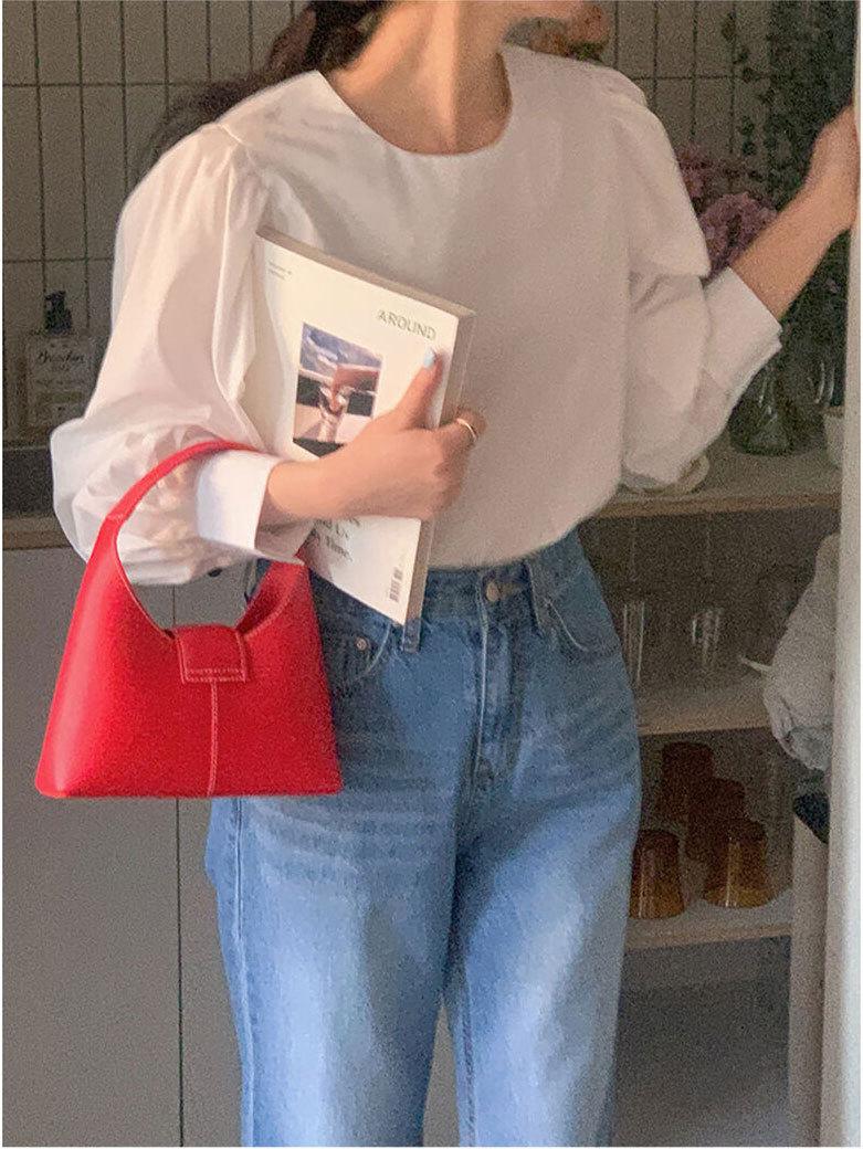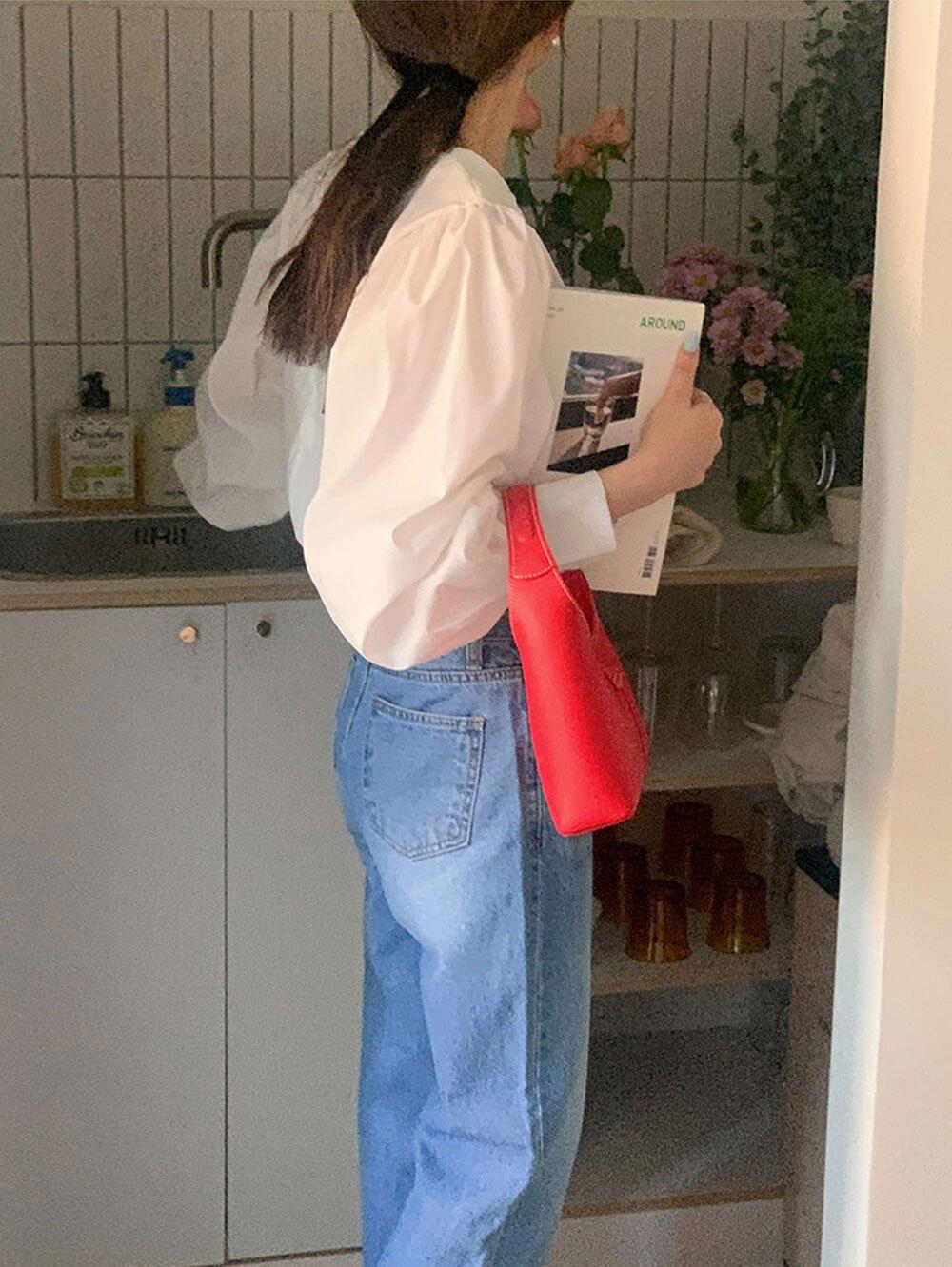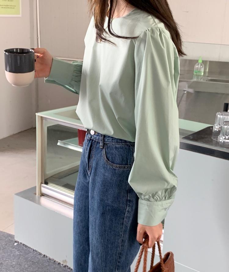 Foto real de 2025 Principios de Otoño Nuevo Estilo Coreano Ins Versátil Manga Abullonada Color Puro Camisa Blanca para Mujer