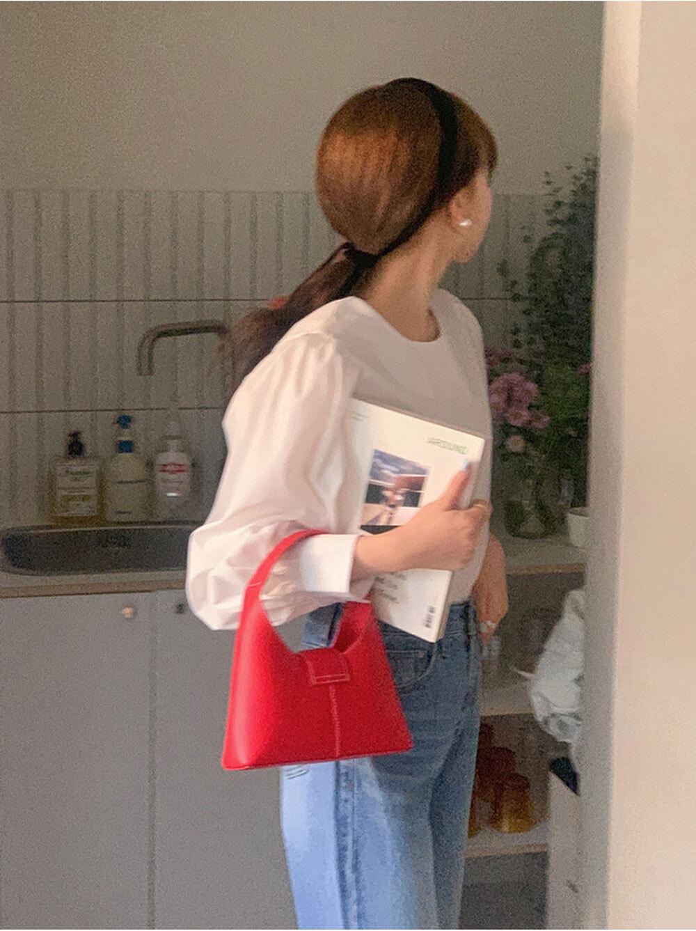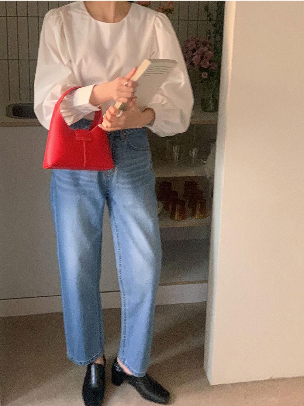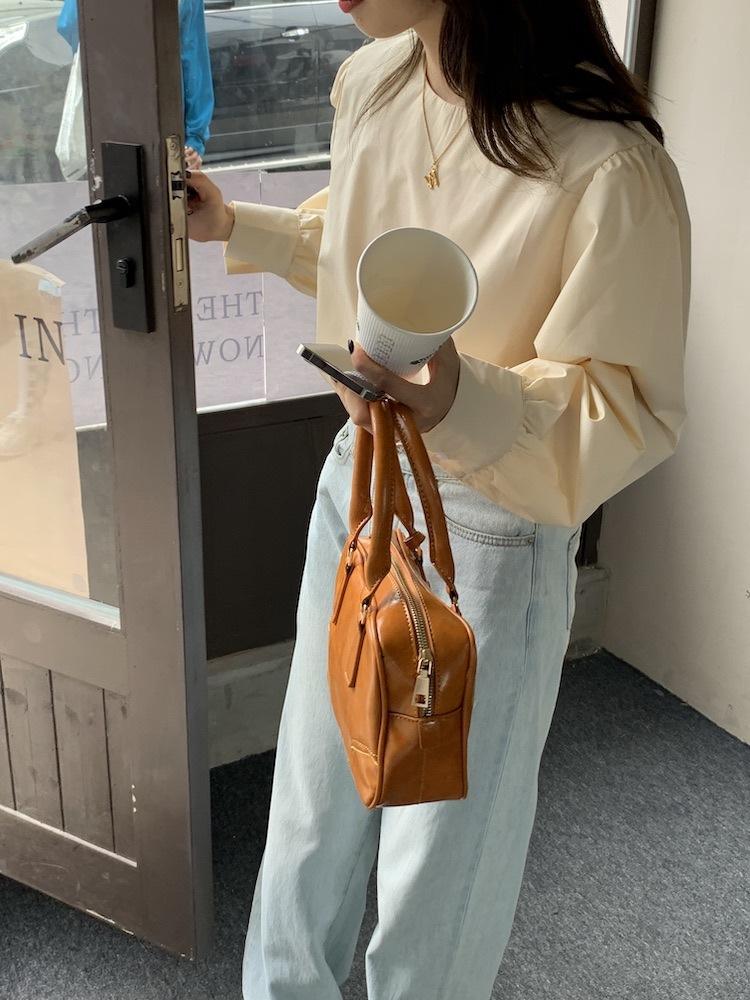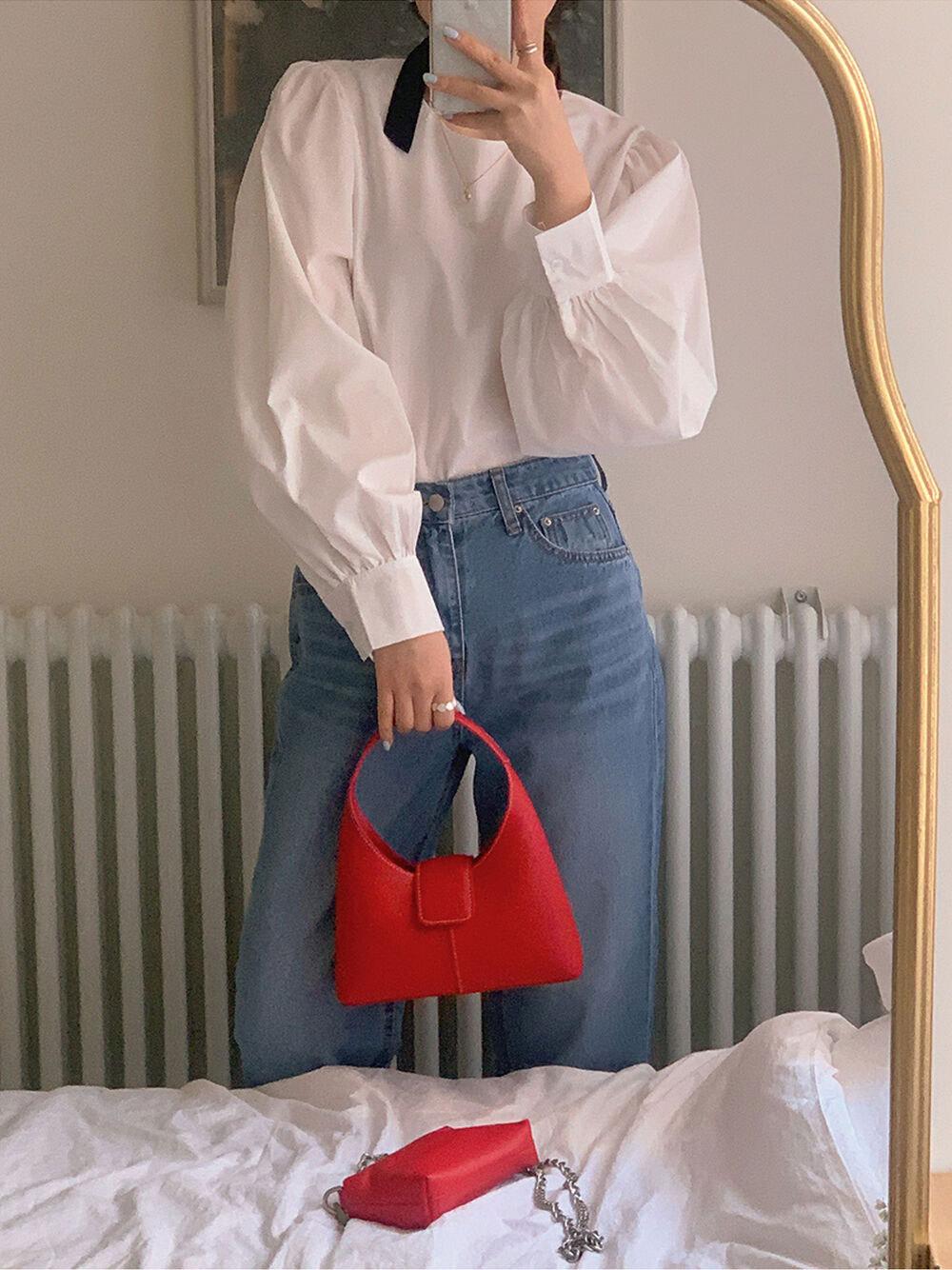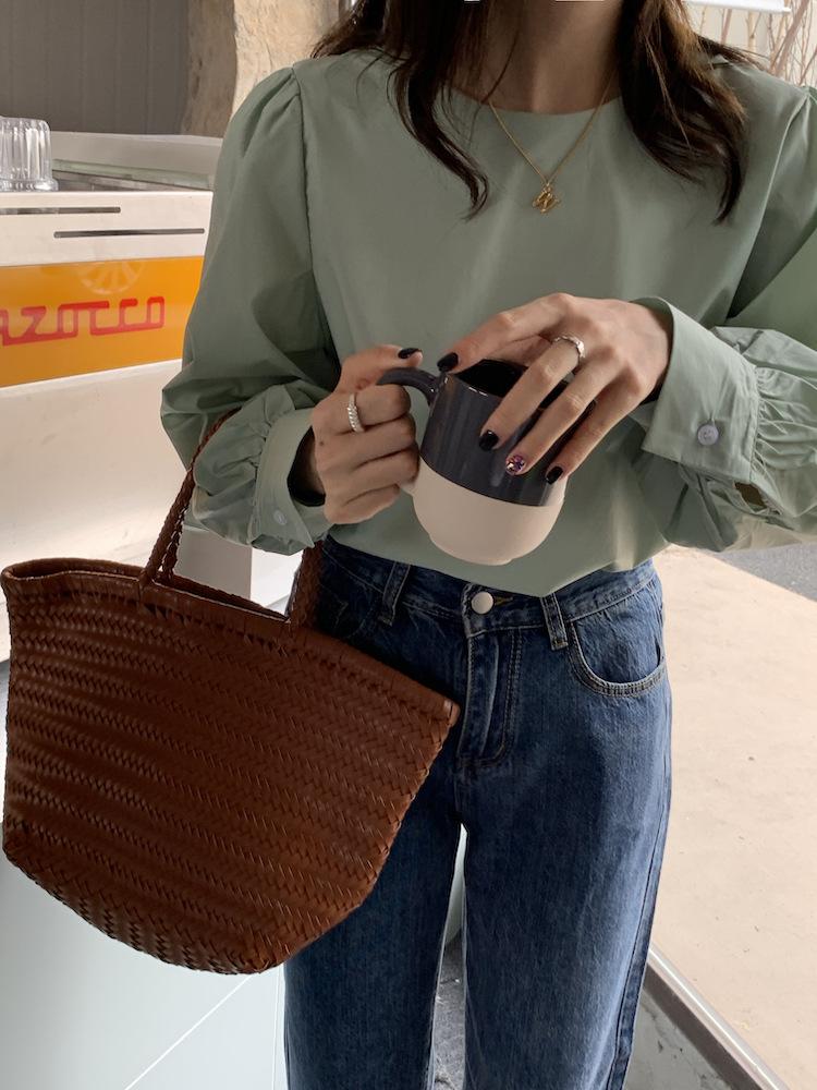 Foto real de 2025 Principios de Otoño Nuevo Estilo Coreano Ins Versátil Manga Abullonada Color Puro Camisa Blanca para Mujer