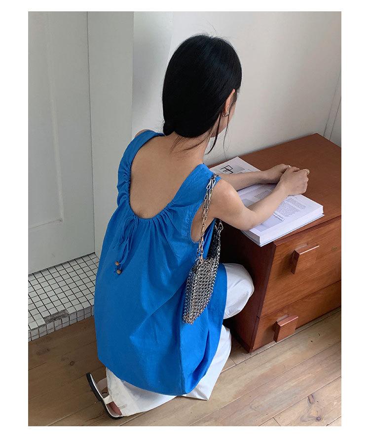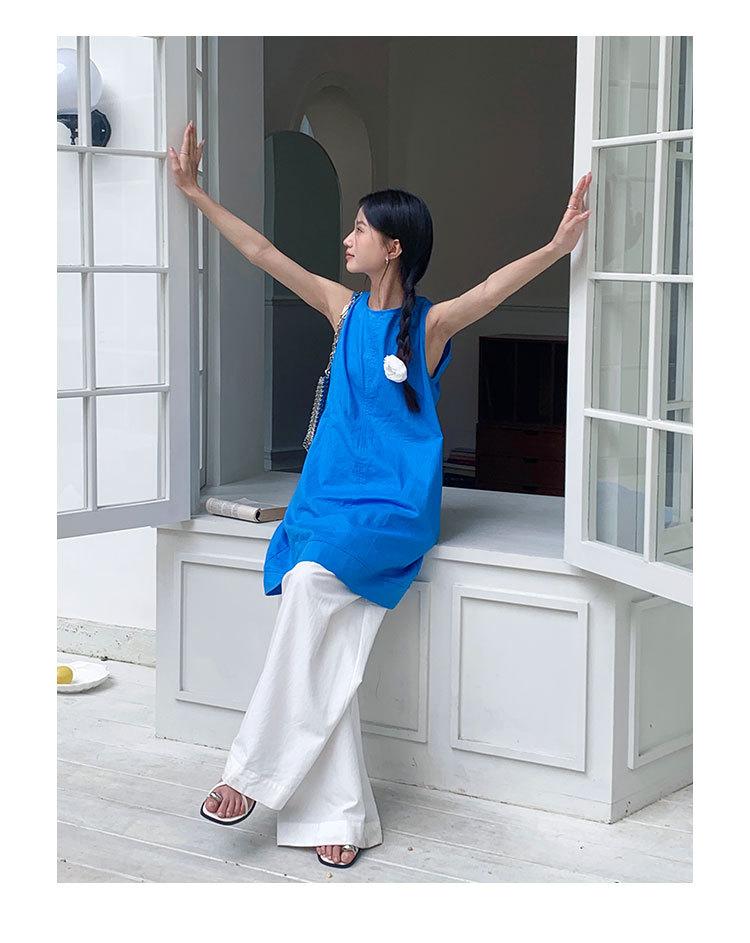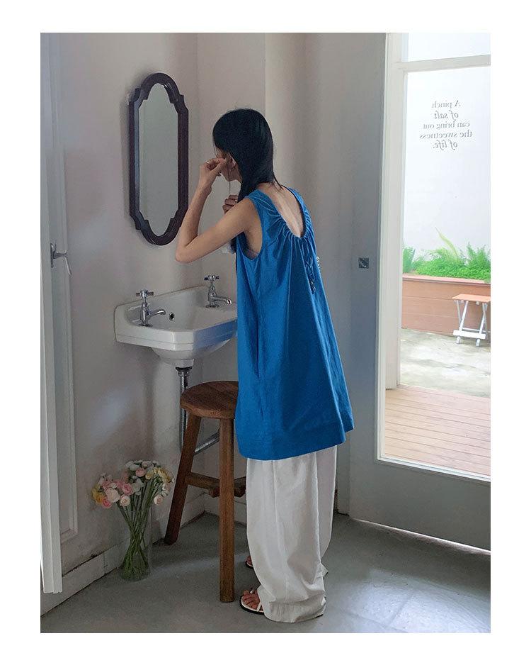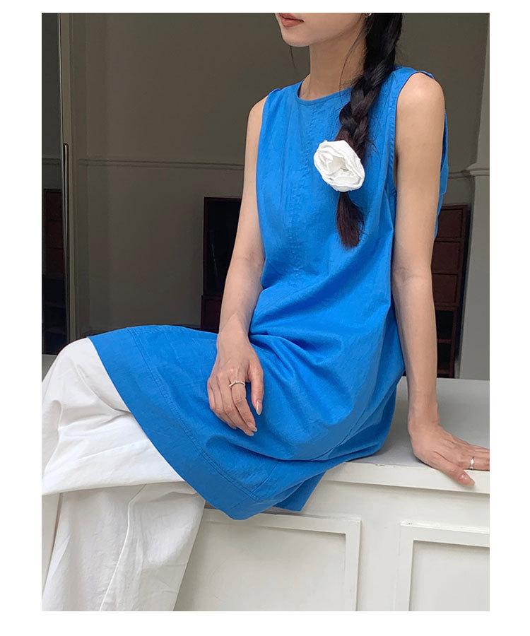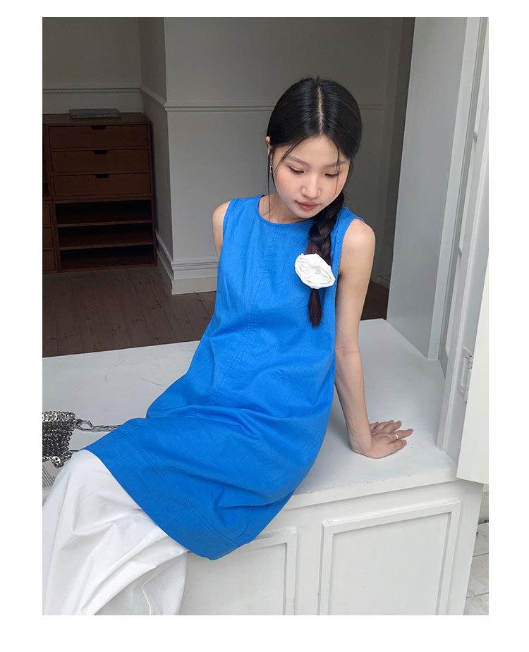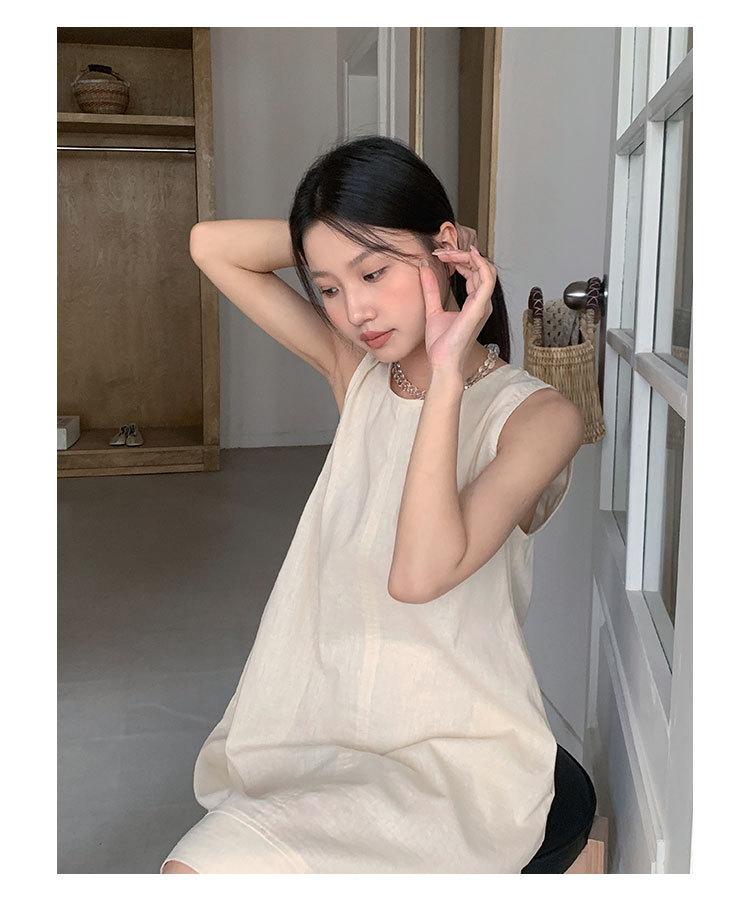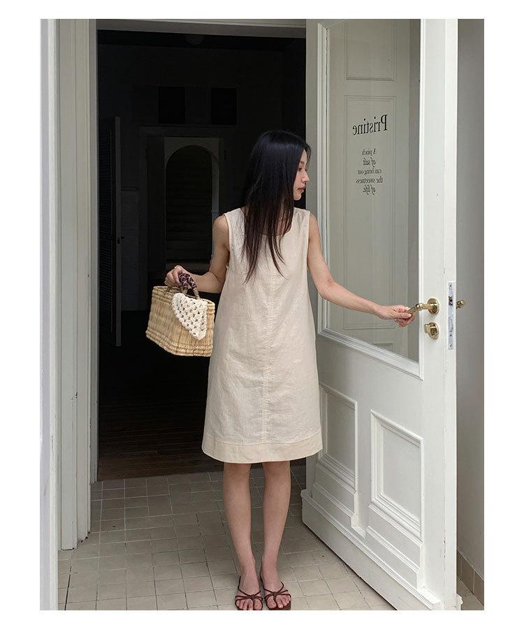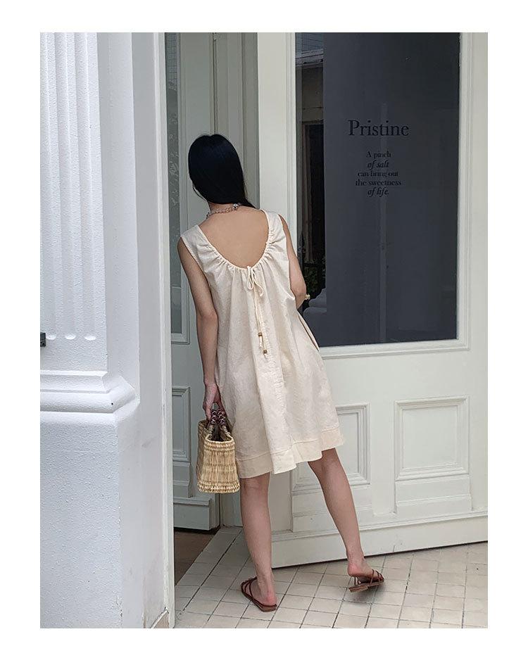 Vestido chaleco EVERTRUE 2024 Verano Estilo coreano Sin mangas Lino Espalda descubierta Falda corta 67190-2