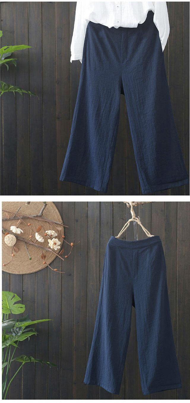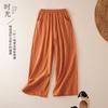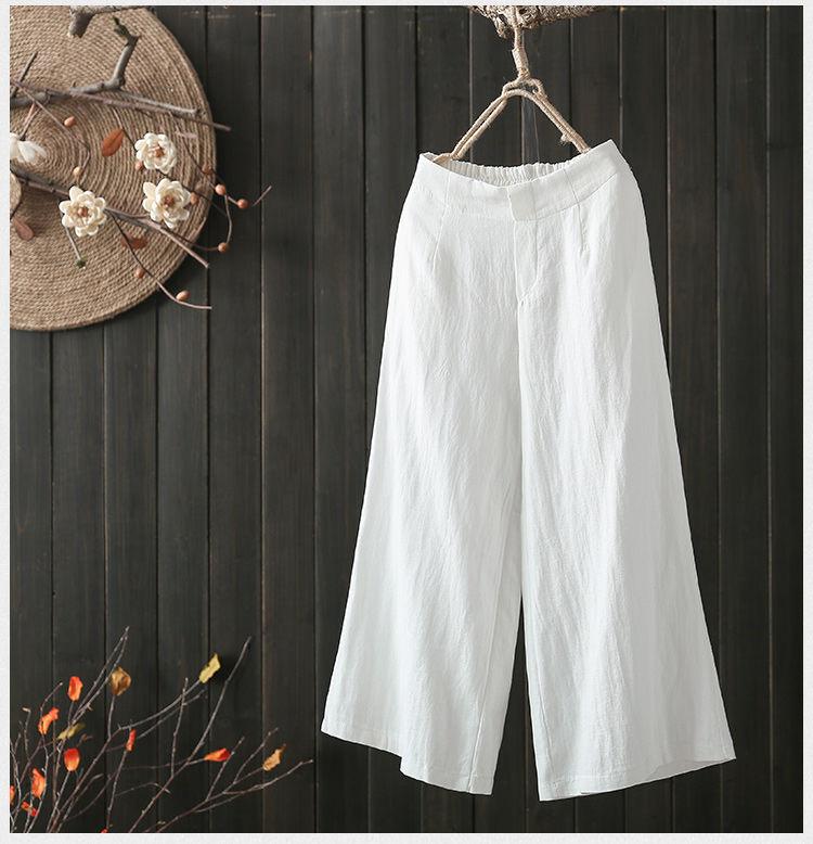 2020 pantalones de pierna ancha de lino de algodón con cintura elástica para mujer, delgados, holgados, talla grande, verano, cintura alta, lino, rectos, casuales