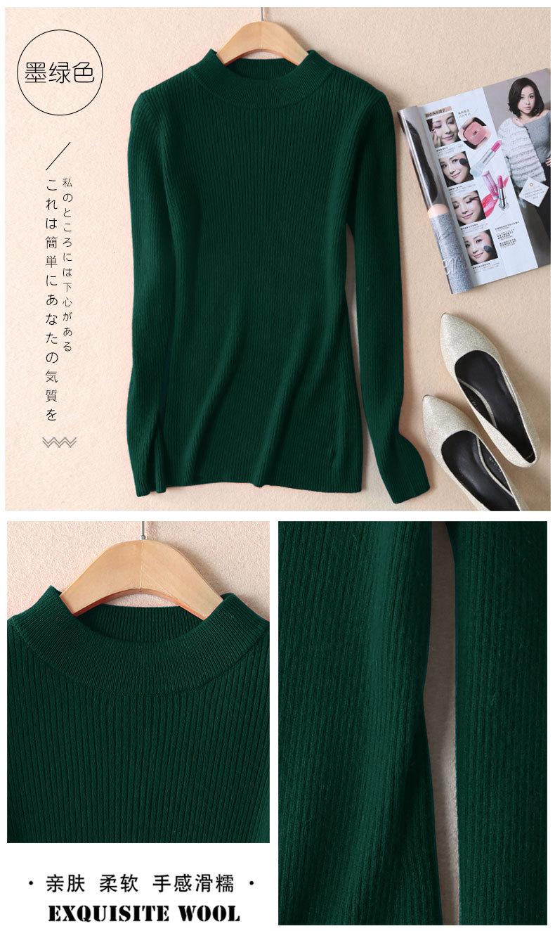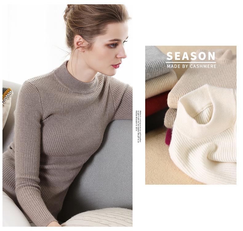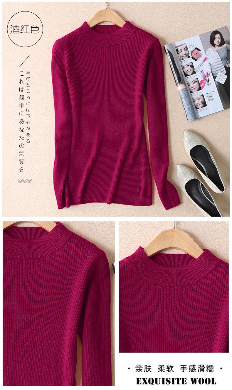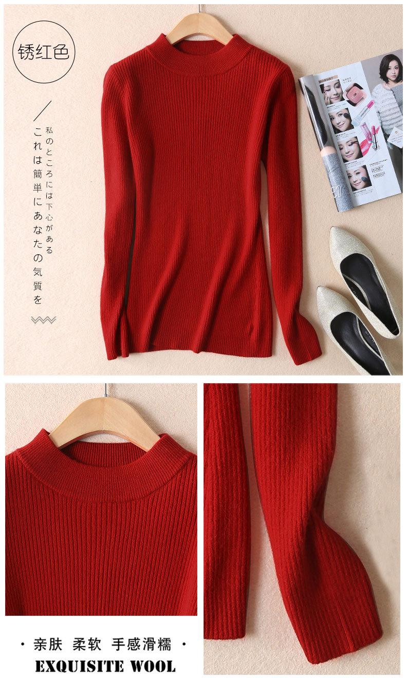 Suéter de cuello medio alto para otoño e invierno, camisa básica para mujer, suéter ajustado de manga larga, corto, estilo coreano, combina con todo.