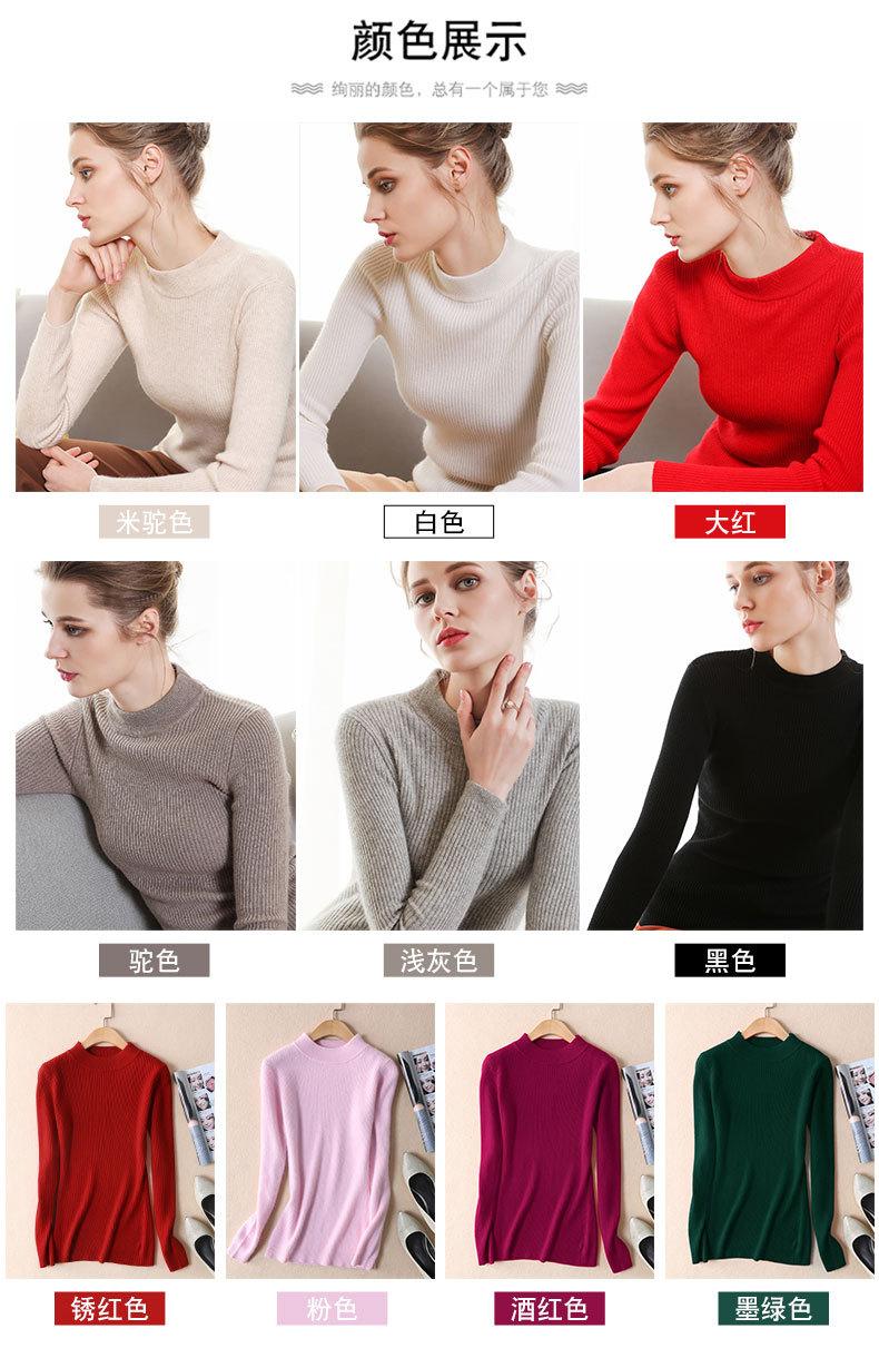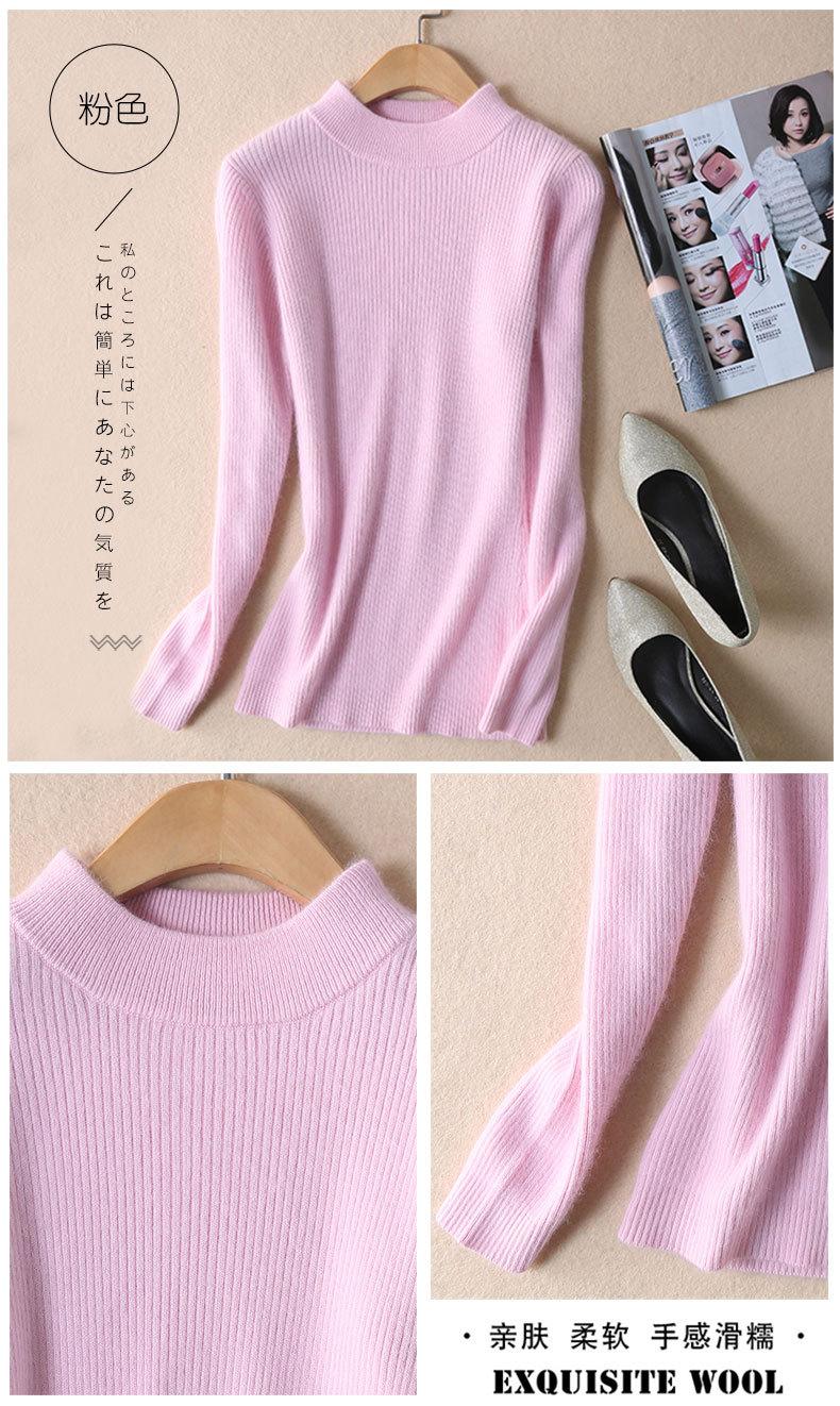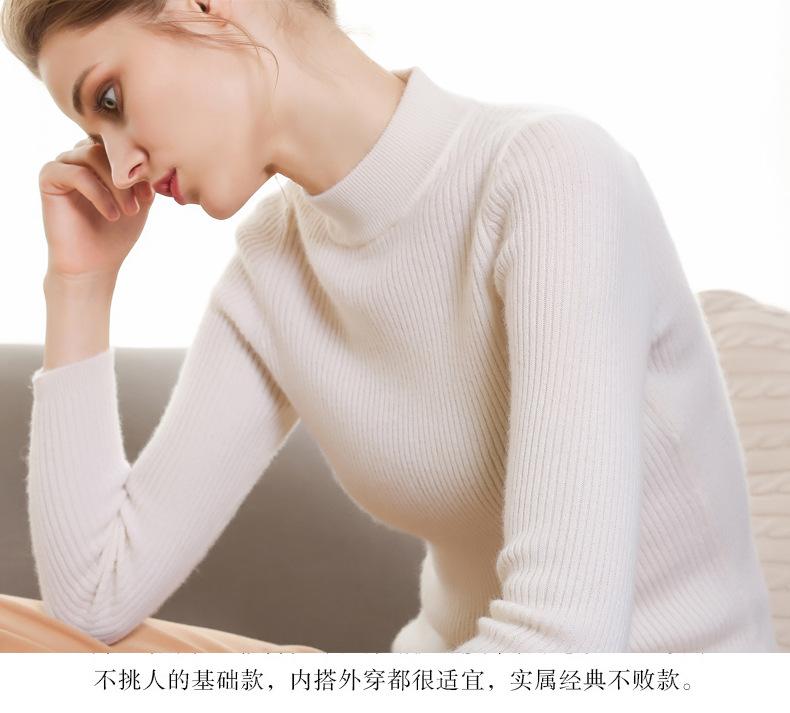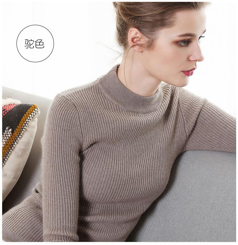 Suéter de cuello medio alto para otoño e invierno, camisa básica para mujer, suéter ajustado de manga larga, corto, estilo coreano, combina con todo.