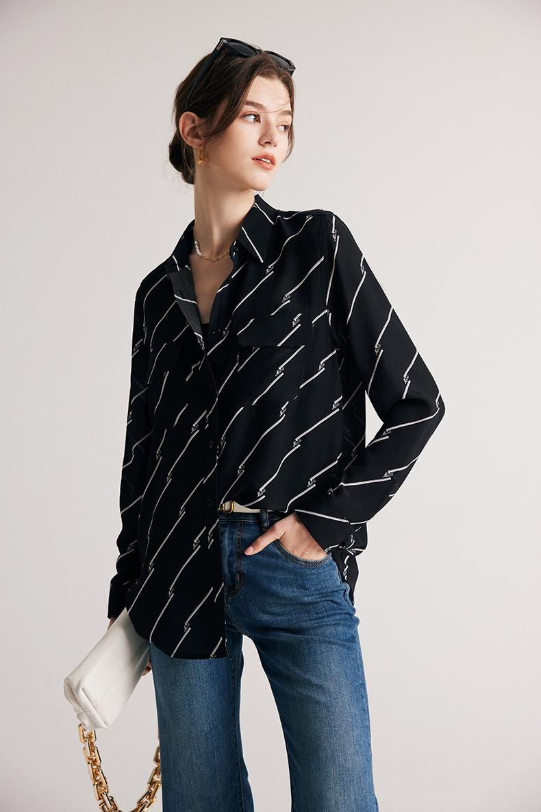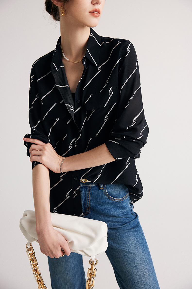 Camisa de Seda Mujer 2025 Primavera y Verano Nueva Manga Larga Crepé de China Estampada 100 Seda de Morera Camisa Manga Larga