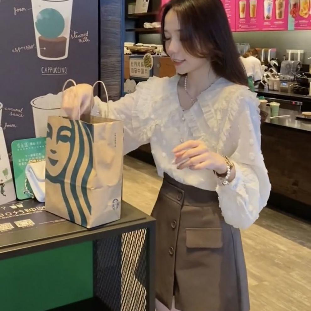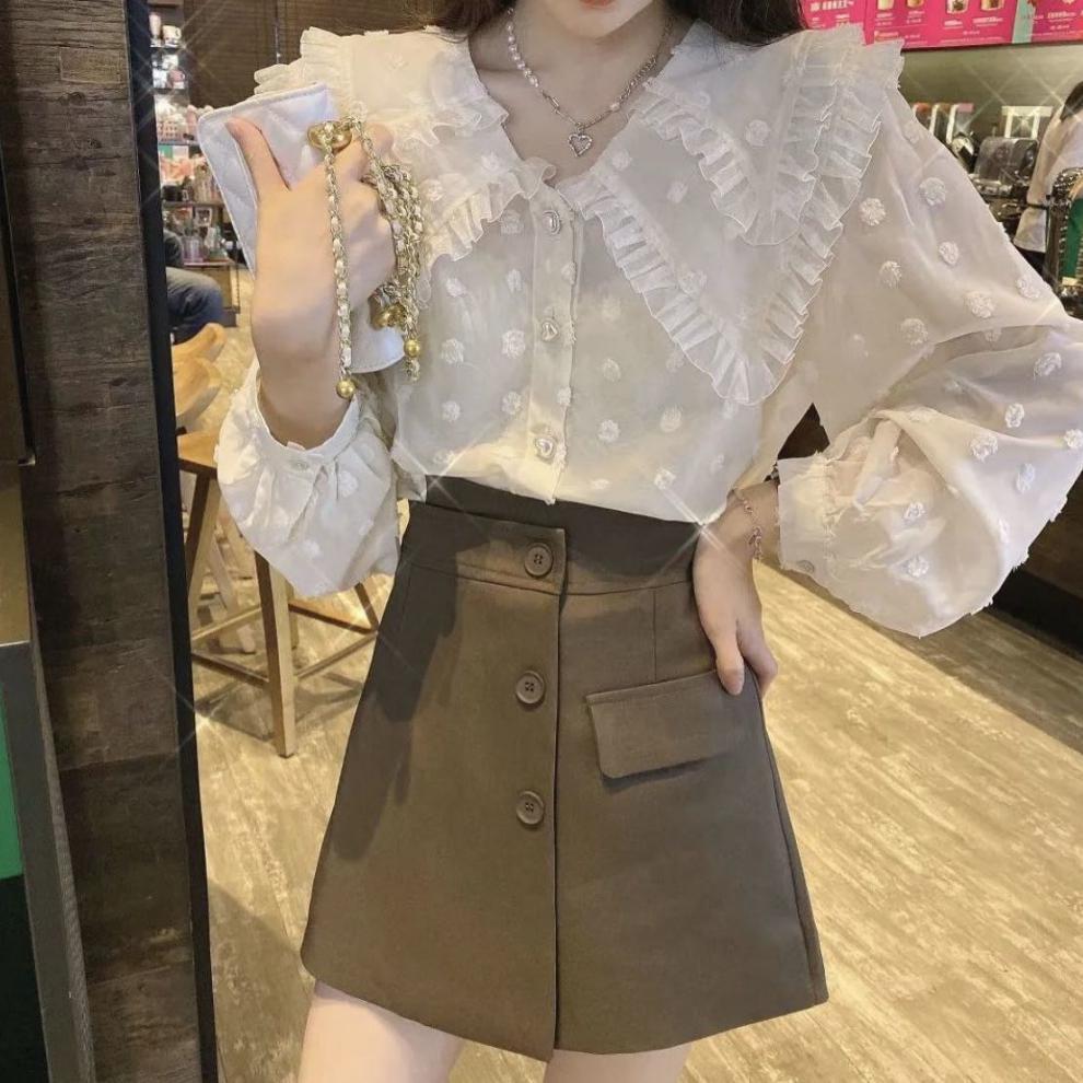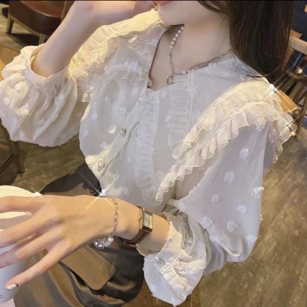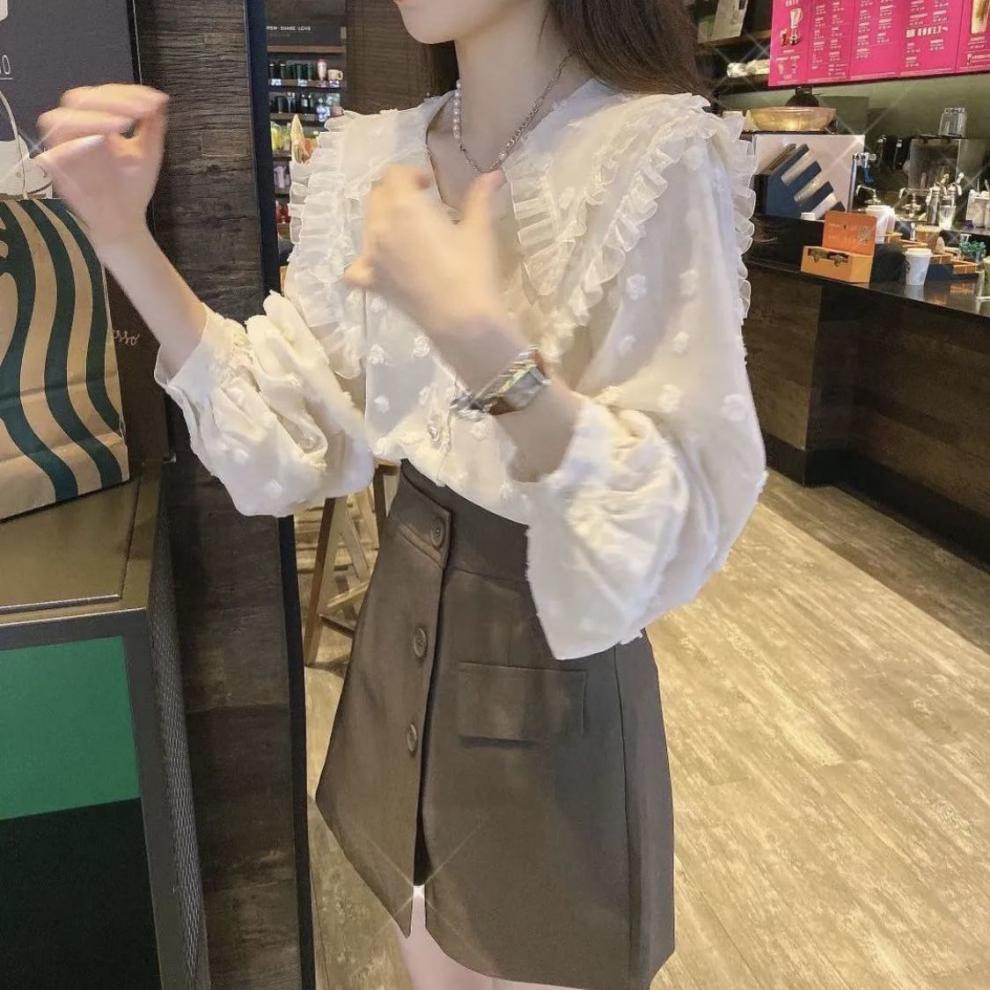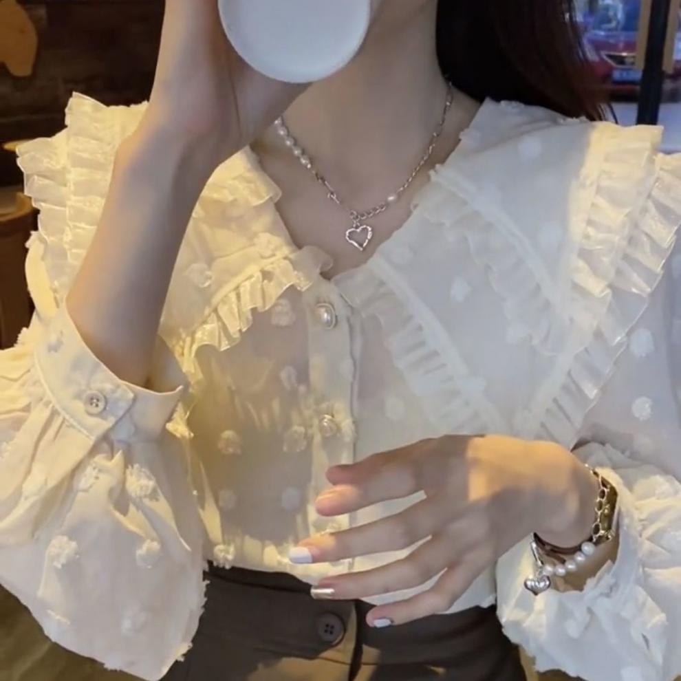 Camisa de Encaje con Volantes Estilo Otoño Nuevo 2023 para Mujer, Diseño Slim, Top Holgado Versátil para Mujer