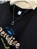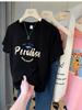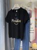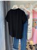 Camiseta holgada de manga corta con hombros descubiertos y estampado negro para mujer, verano 2023, nuevo diseño, camiseta de nicho Sense, ropa de verano