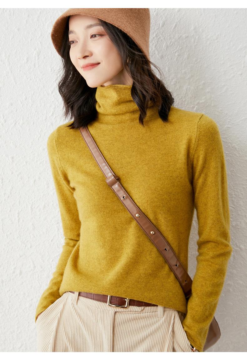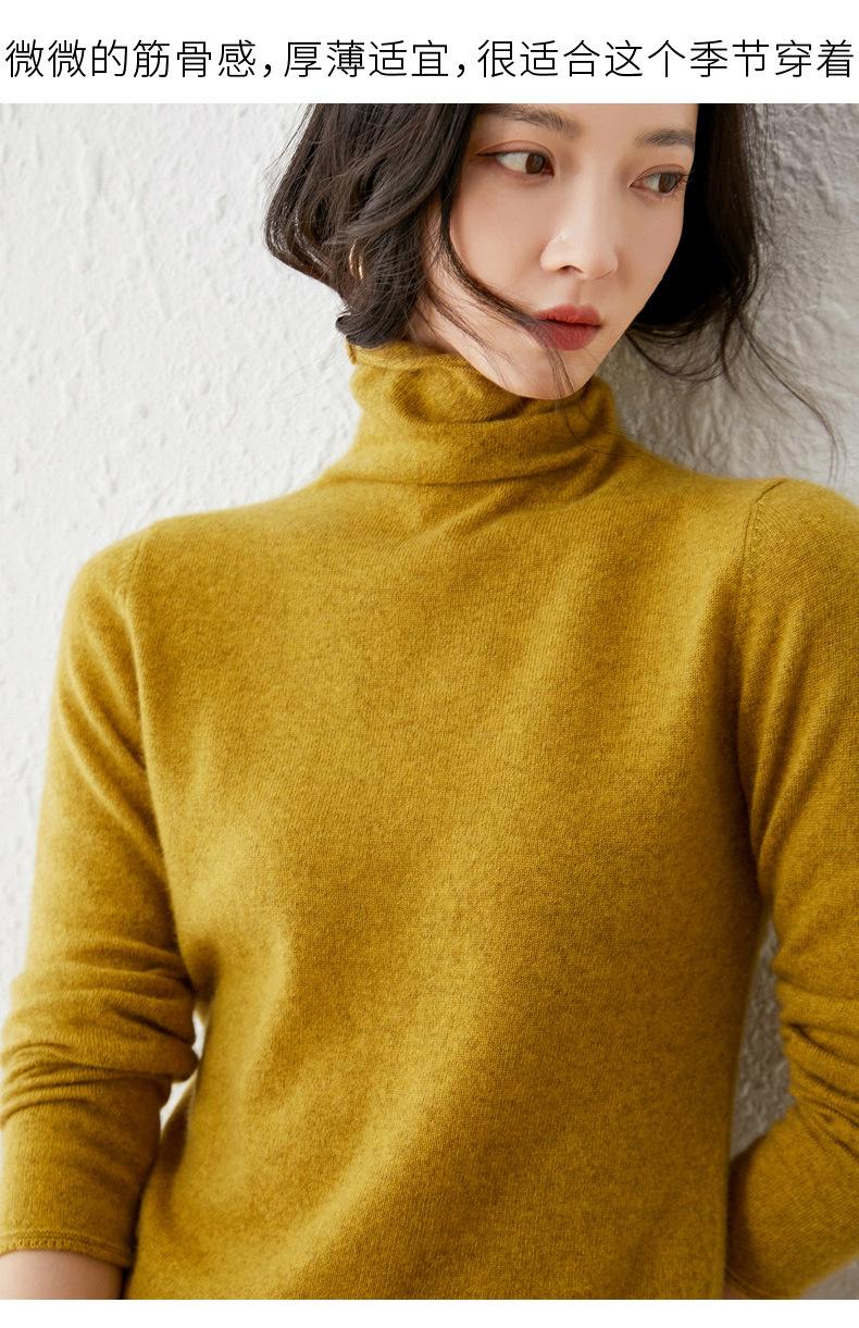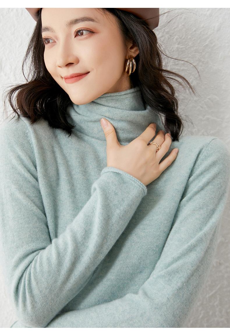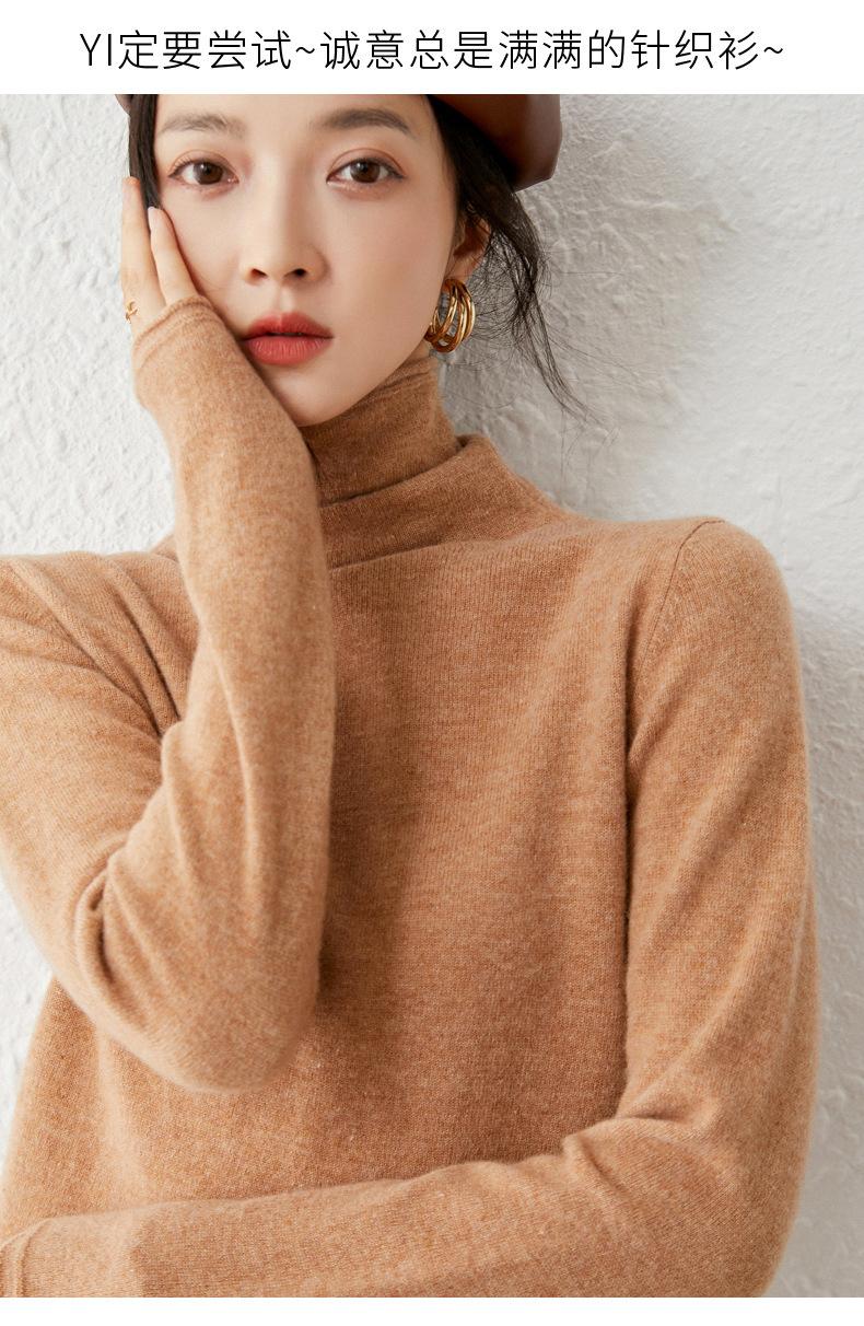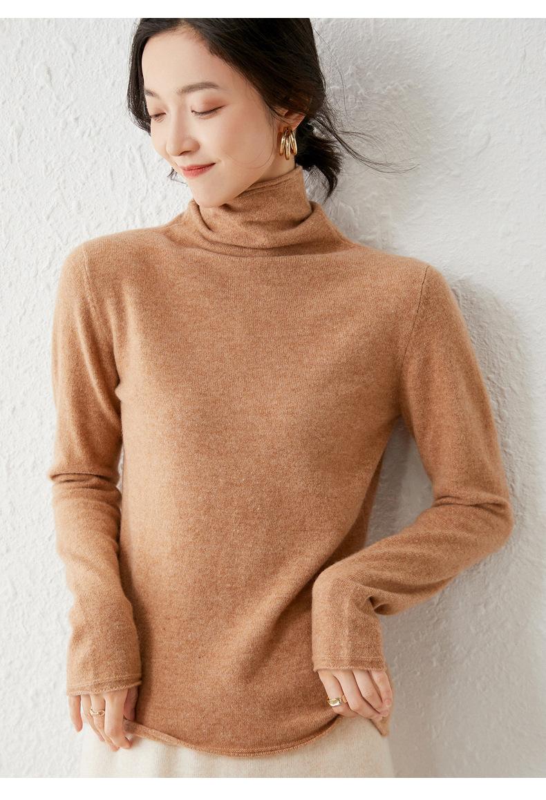 Suéter de Lana con Cuello Alto de Pila para Mujer Otoño e Invierno Nuevo Camiseta Base de Cuello Alto Ajustado Delgado Suéter de Cachemira para Mujer Manga Larga