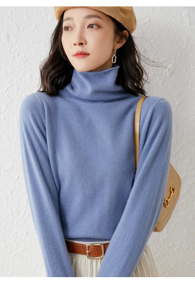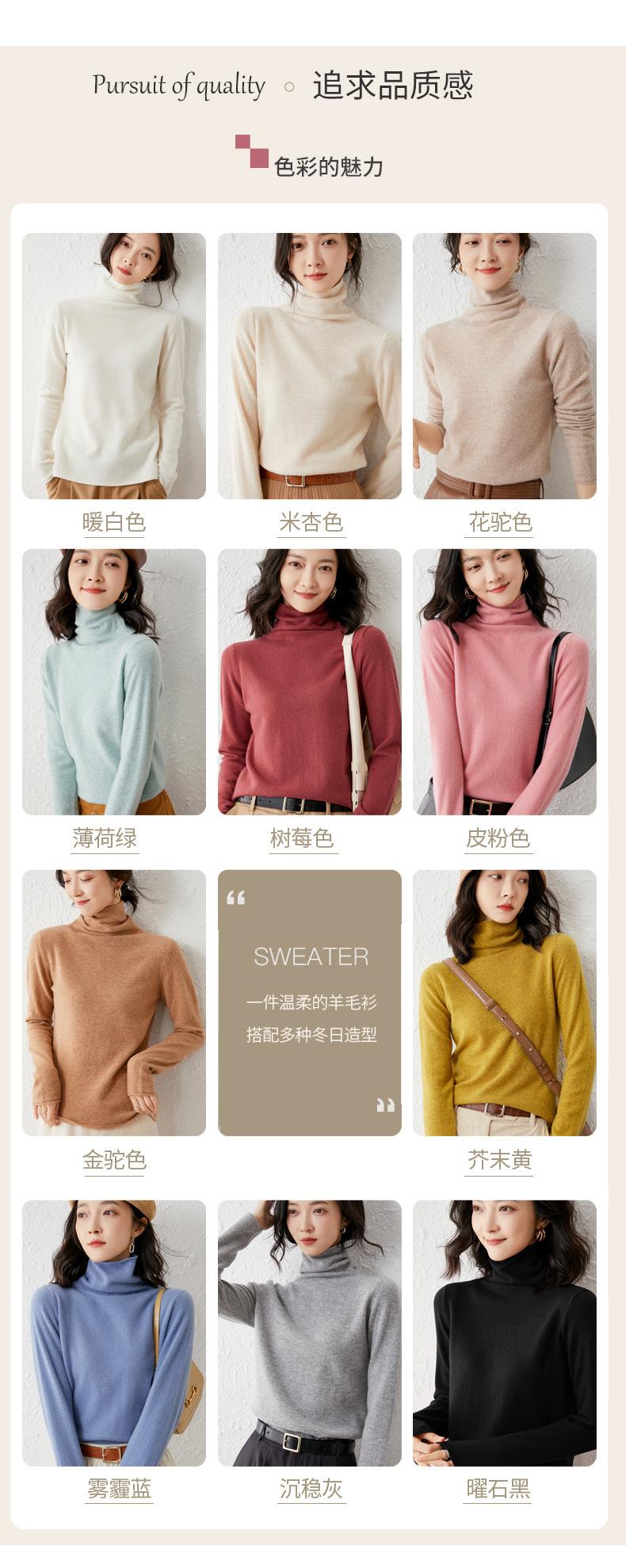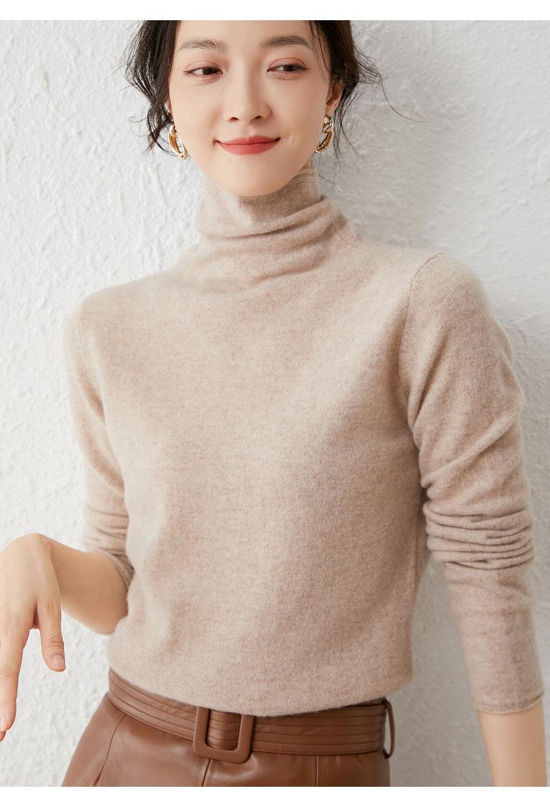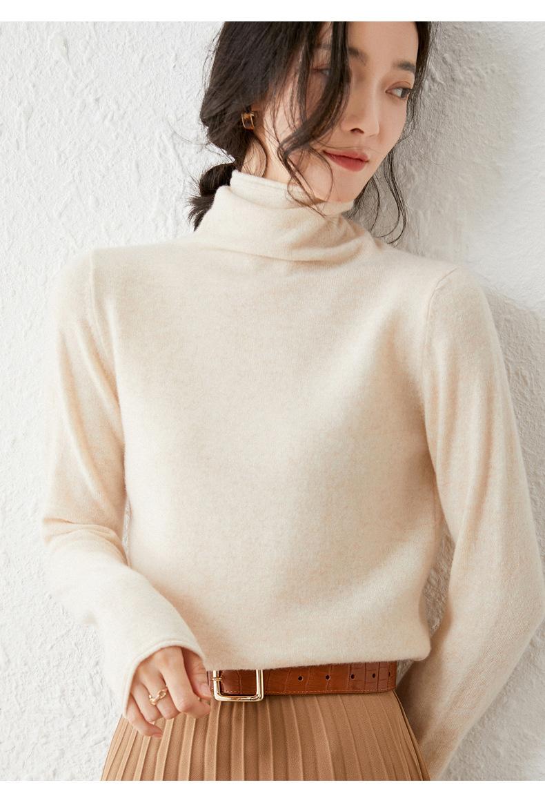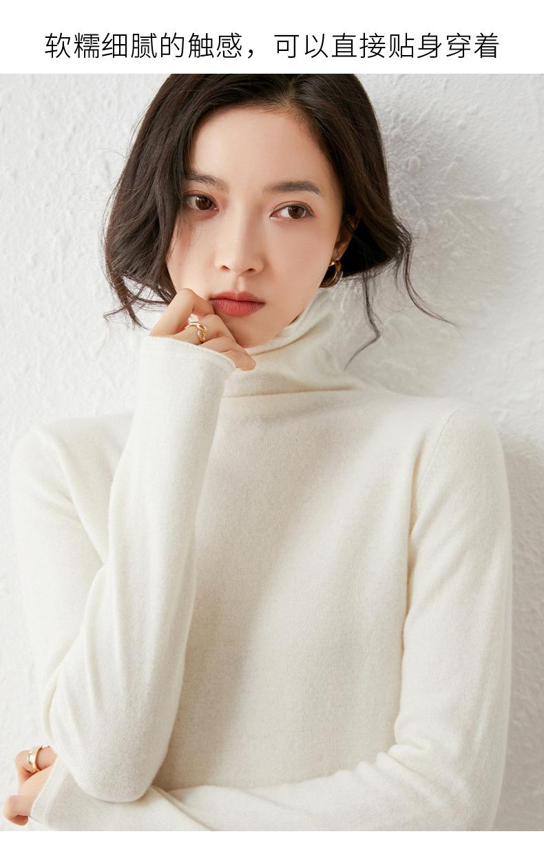 Suéter de Lana con Cuello Alto de Pila para Mujer Otoño e Invierno Nuevo Camiseta Base de Cuello Alto Ajustado Delgado Suéter de Cachemira para Mujer Manga Larga