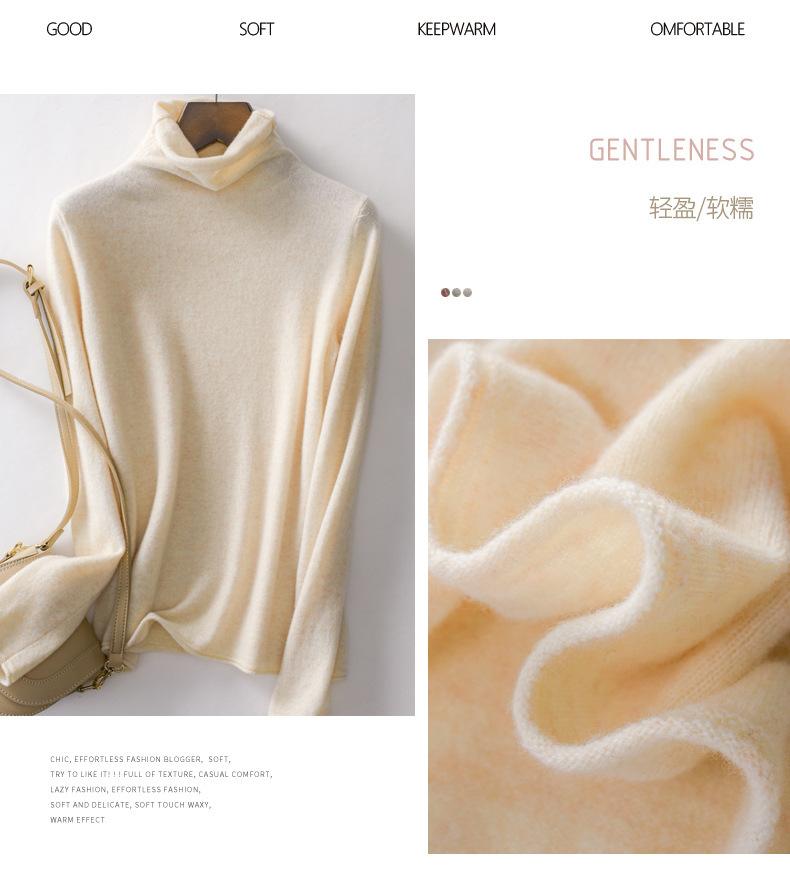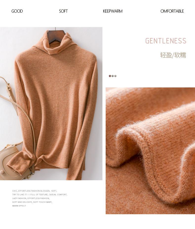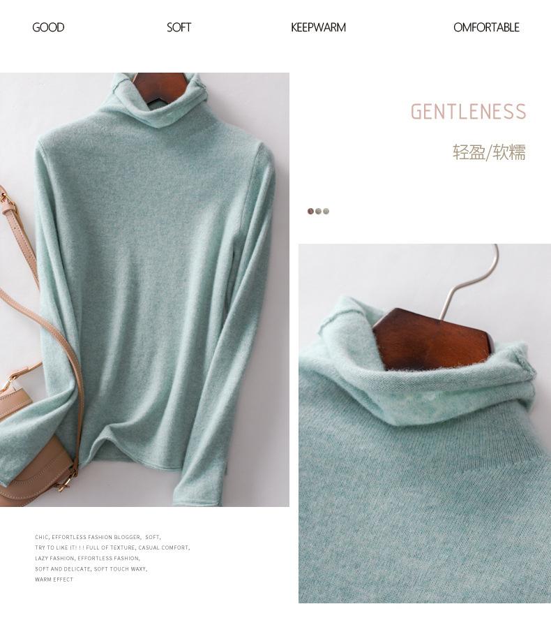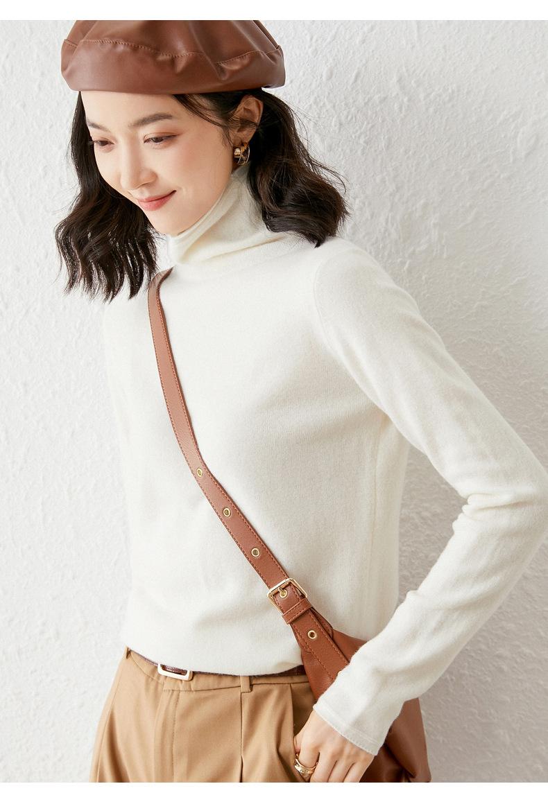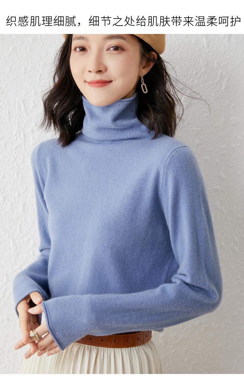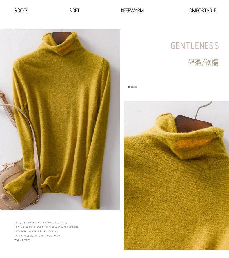 Suéter de Lana con Cuello Alto de Pila para Mujer Otoño e Invierno Nuevo Camiseta Base de Cuello Alto Ajustado Delgado Suéter de Cachemira para Mujer Manga Larga