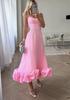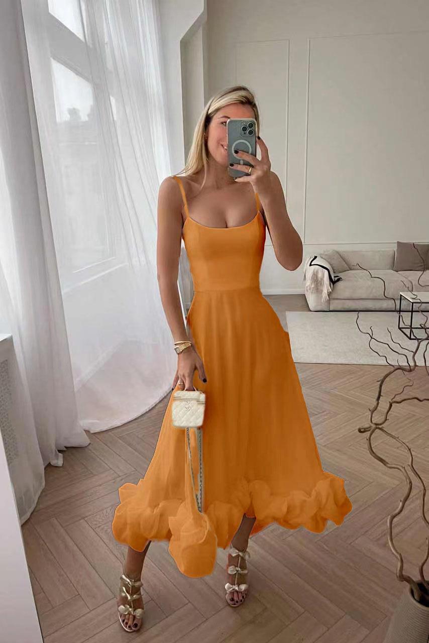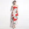 2023 Primavera y Verano Europeo y Americano Transfronterizo para Mujer Nueva Moda Tirantes Dobladillo Grande Flor Estéreo Falda Línea A Vestido