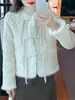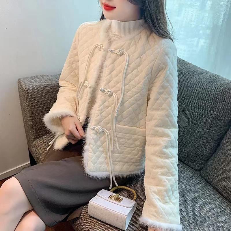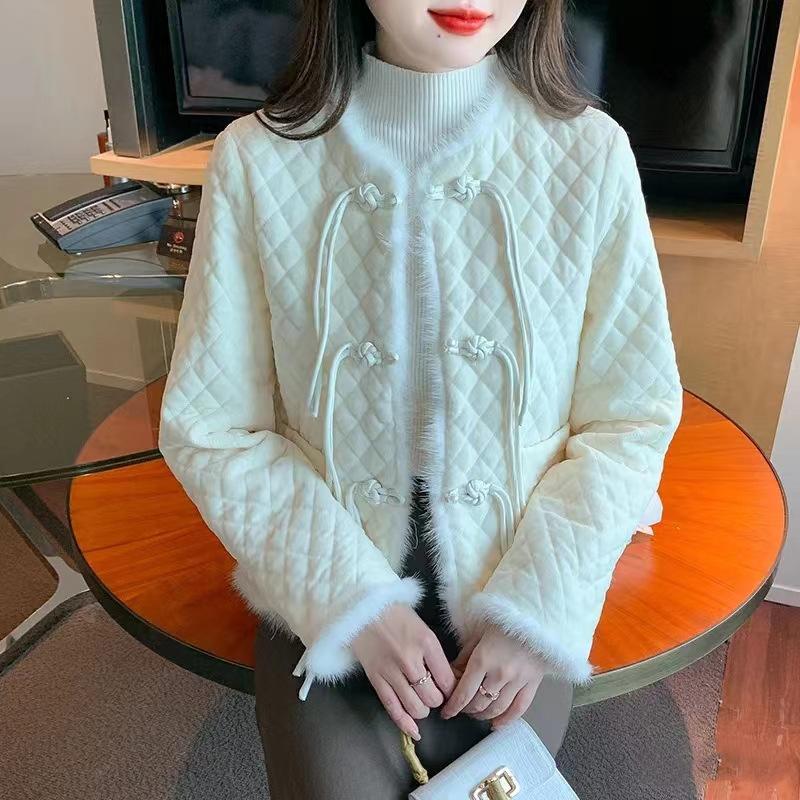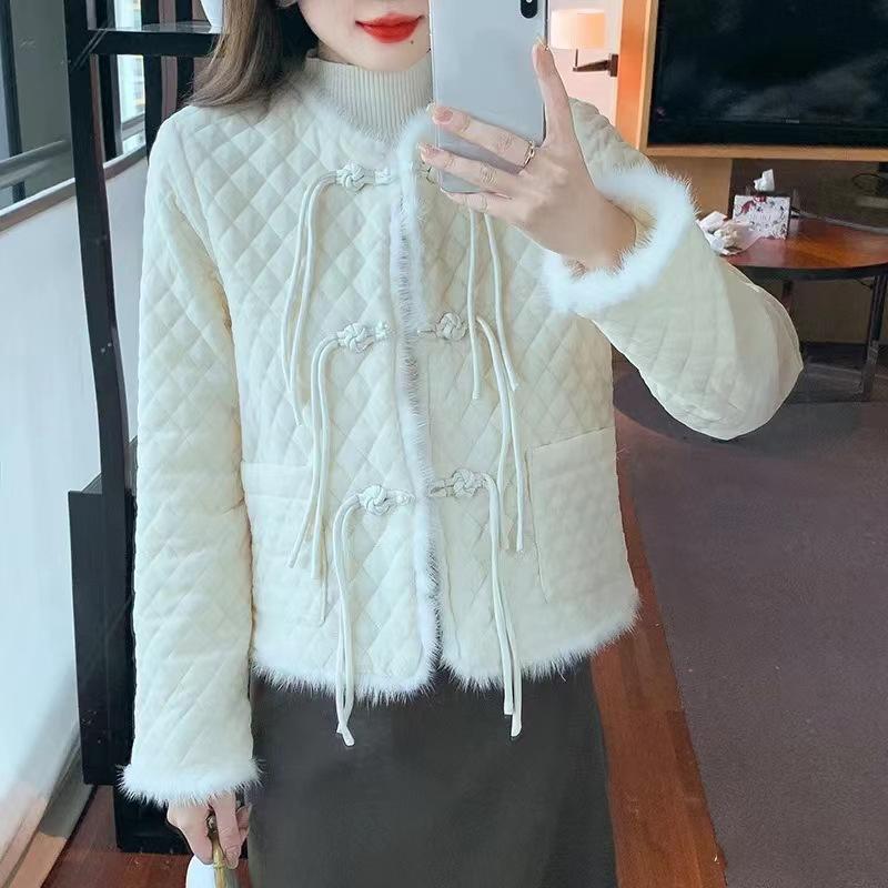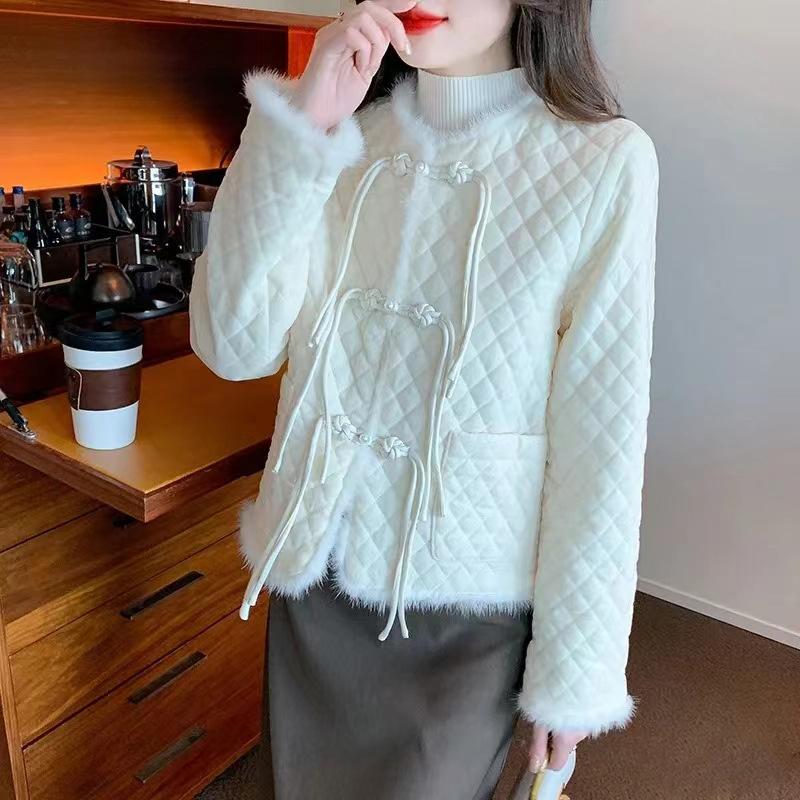 [en stock] 2024 primavera nuevo estilo chino nuevo chino cuello redondo rombo chamarra acolchada blanca
