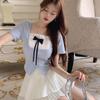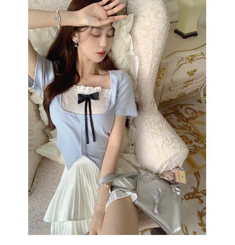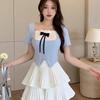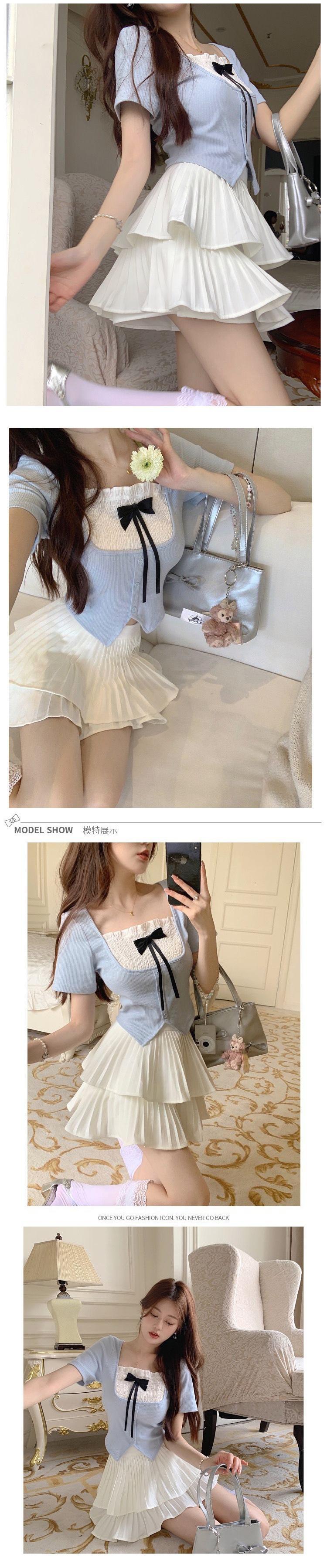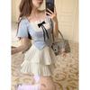 Conjunto de dos piezas formado por falda y top de manga corta, para mujer, color blanco y dulce, talla grande, con plisado