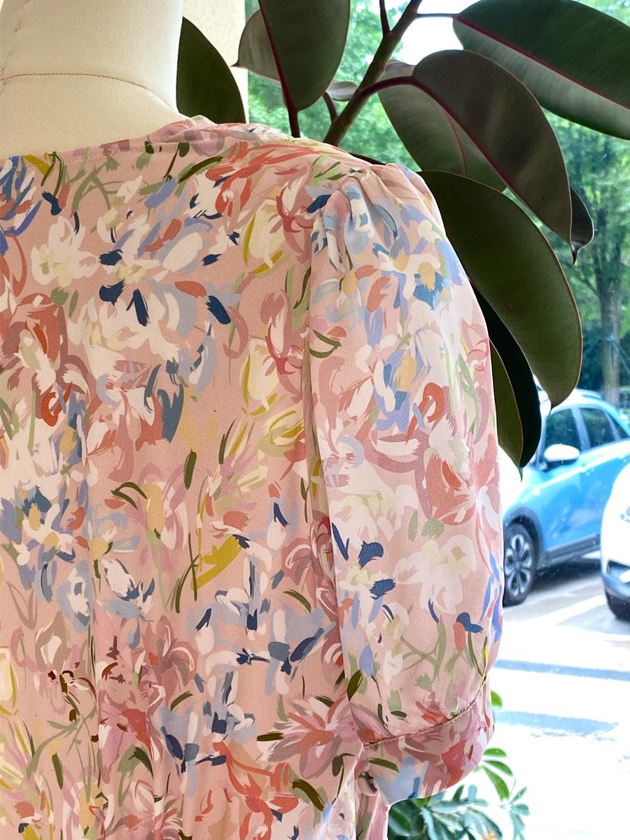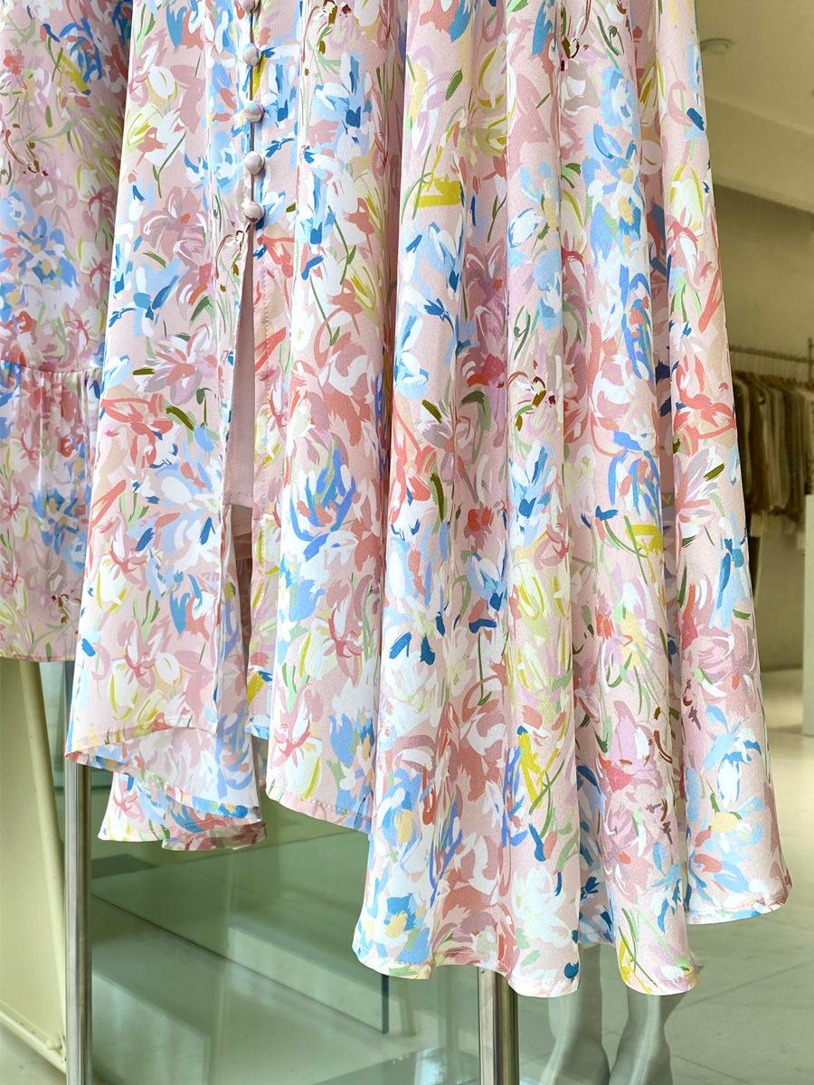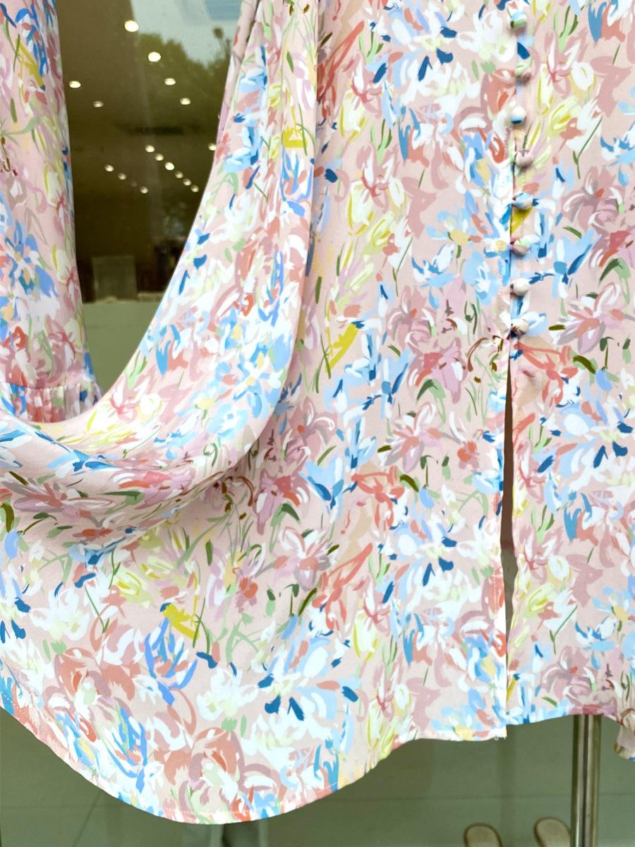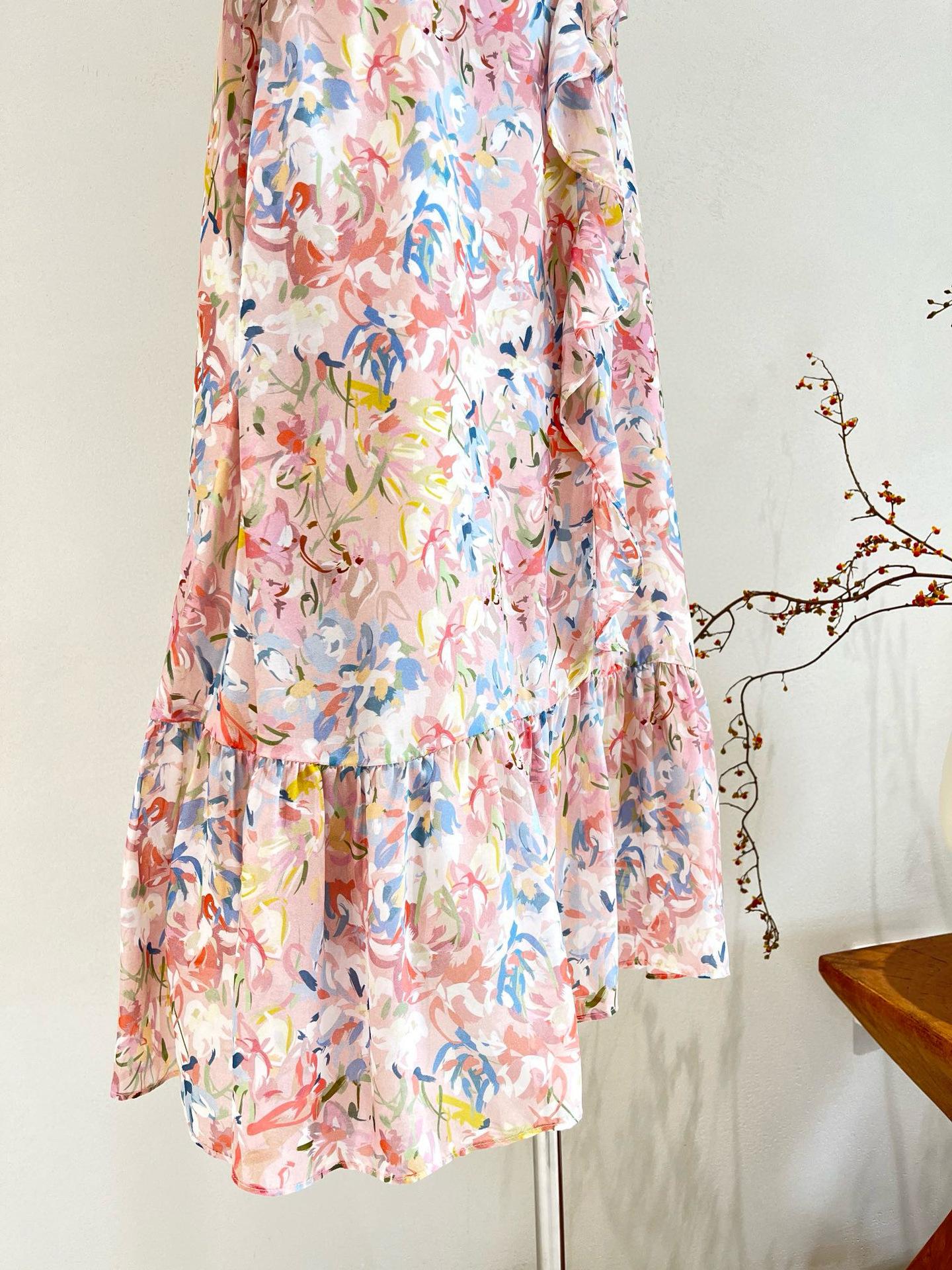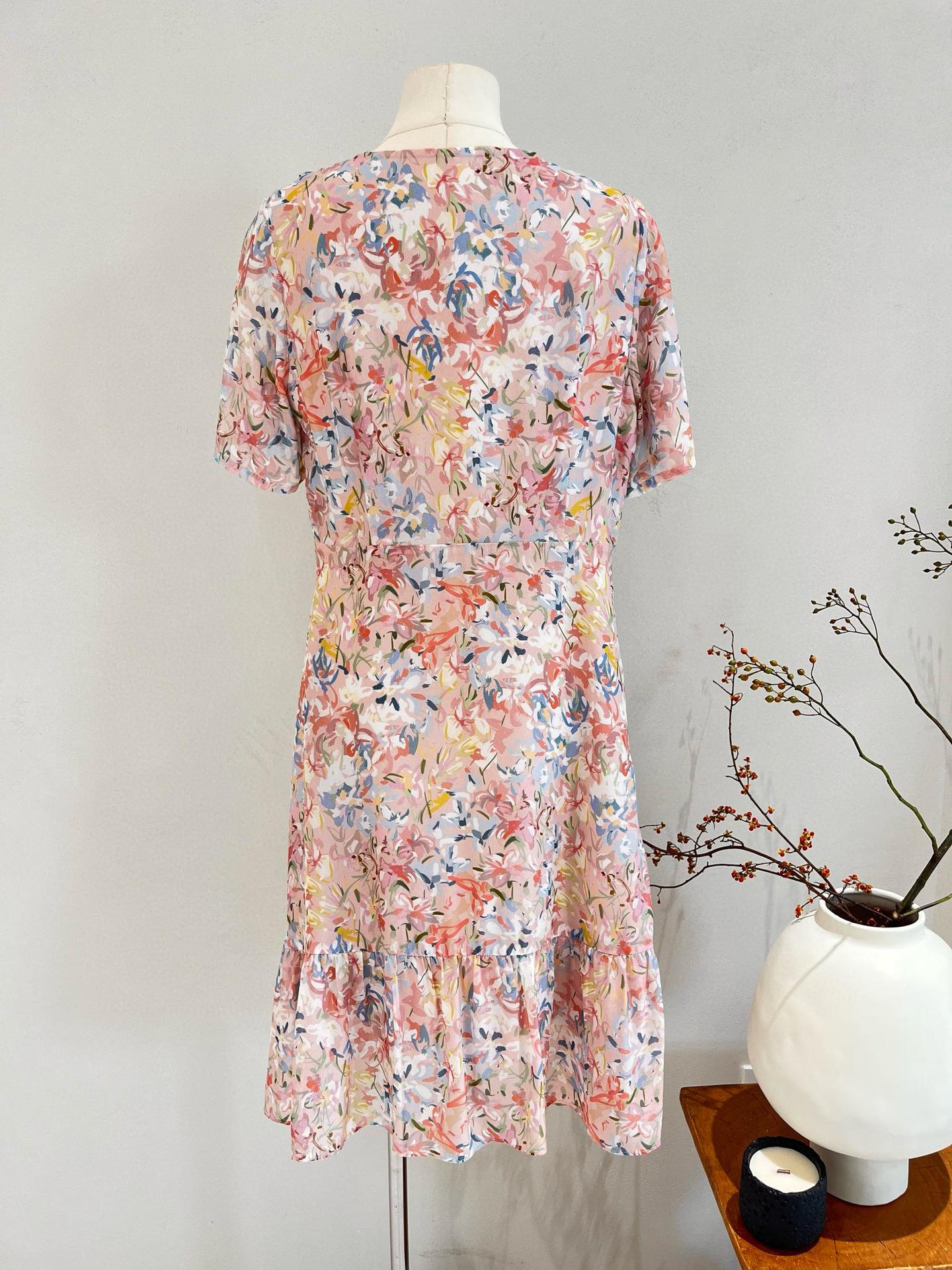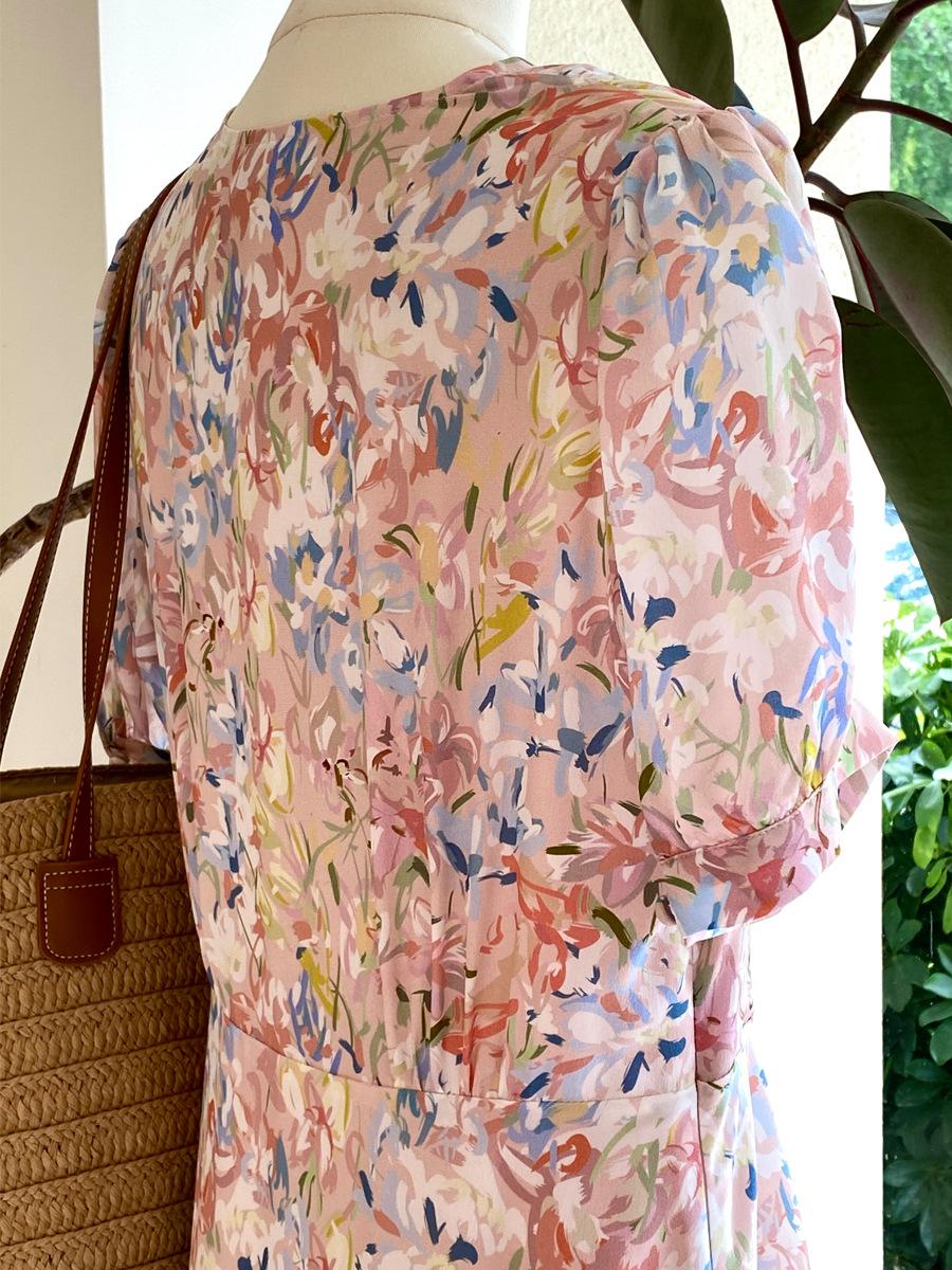 Vestido de Seda de Manga Corta para Mujer Primavera y Verano 2025 Nuevo Estampado Francés Cintura Estilo Joven Falda de Seda de Morera