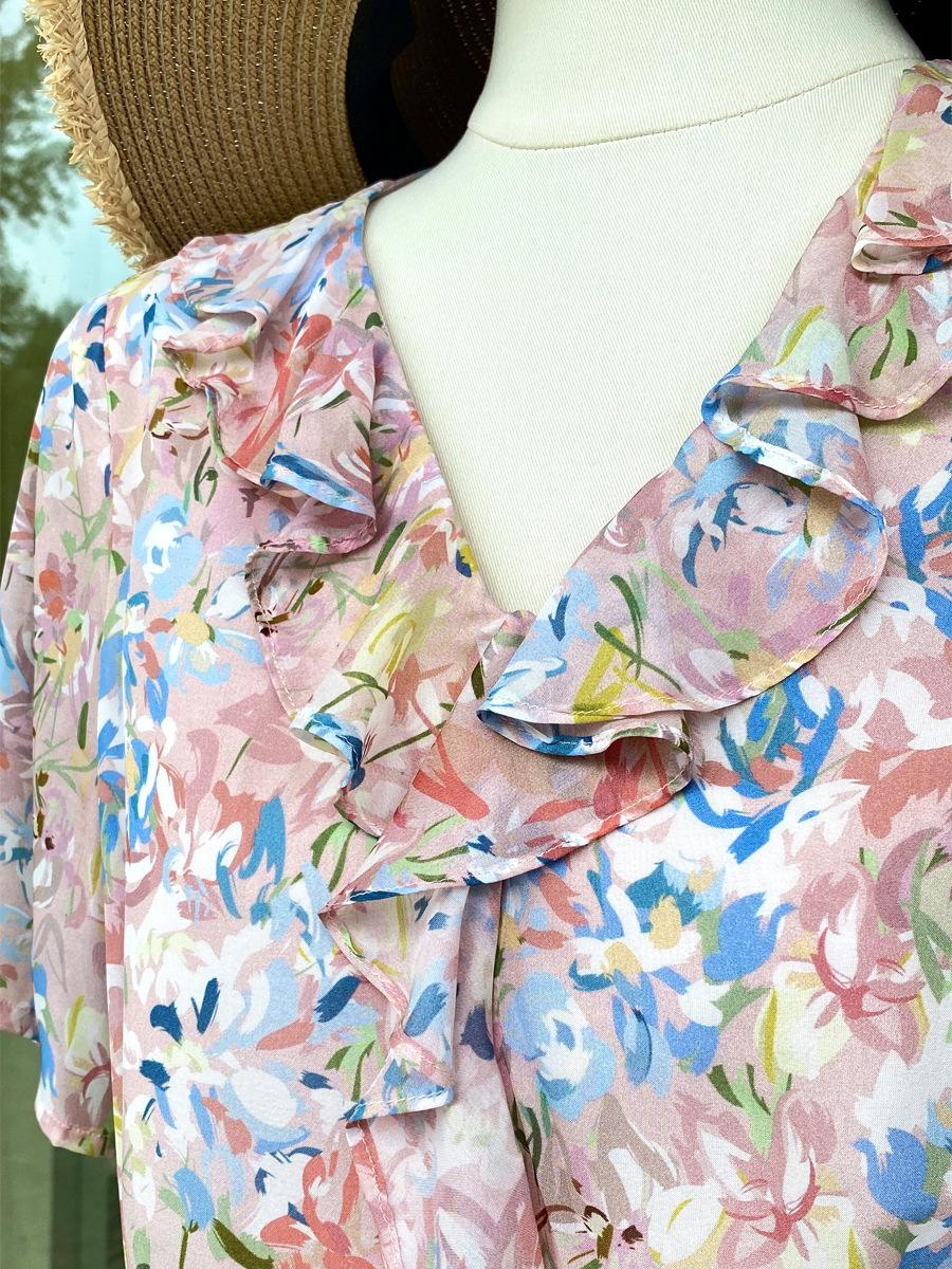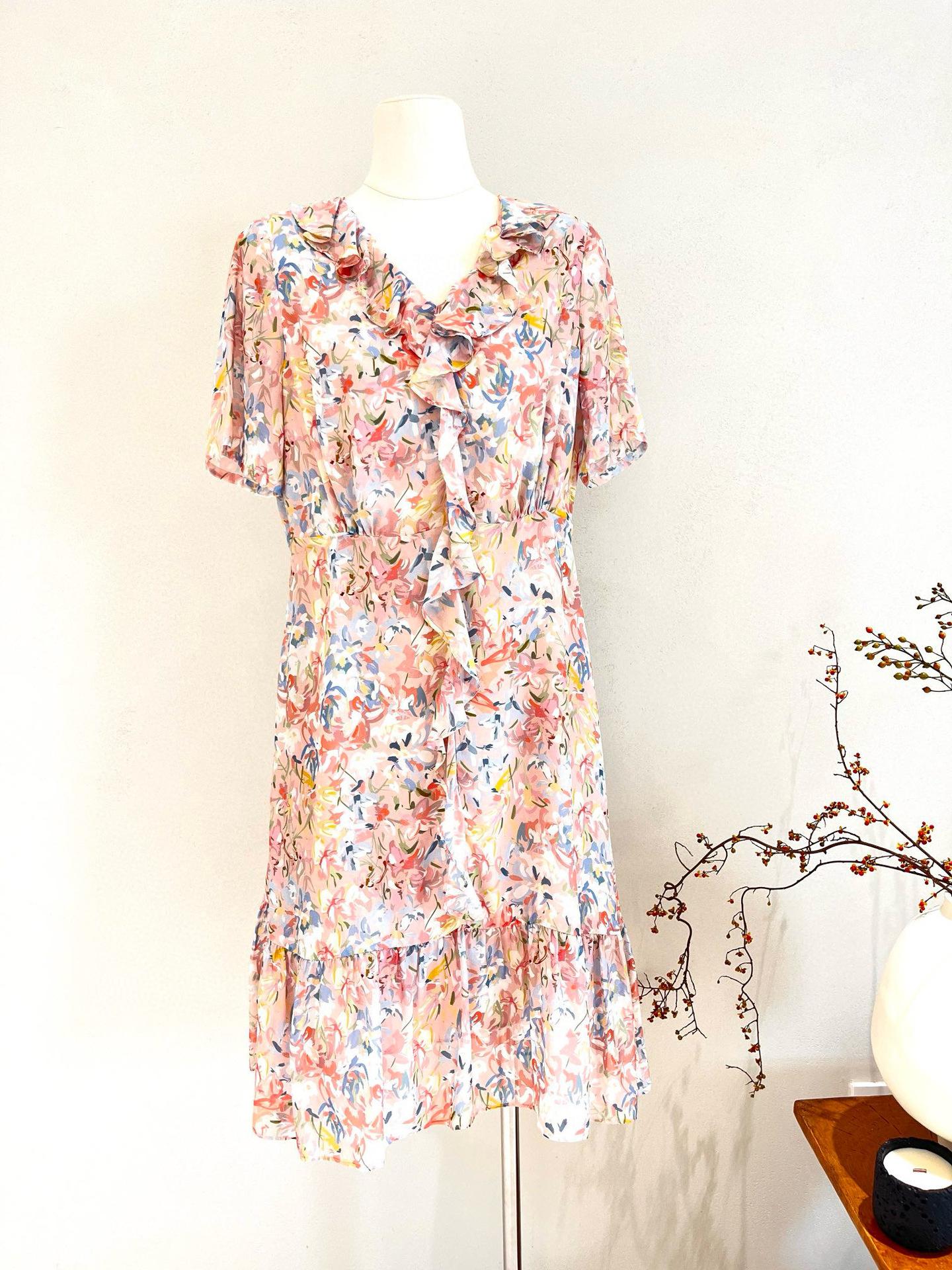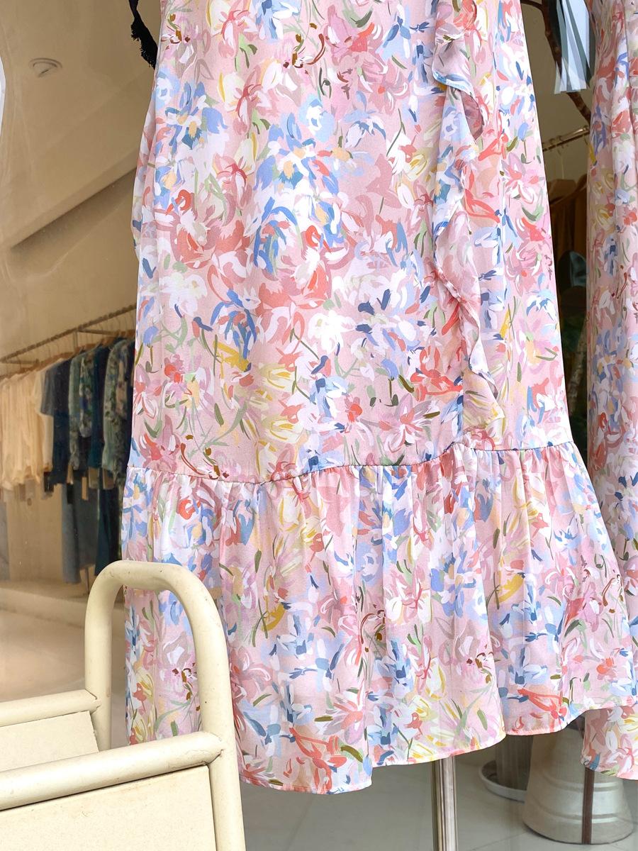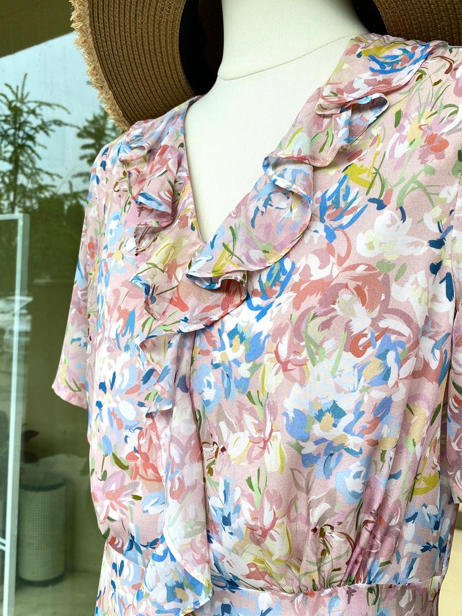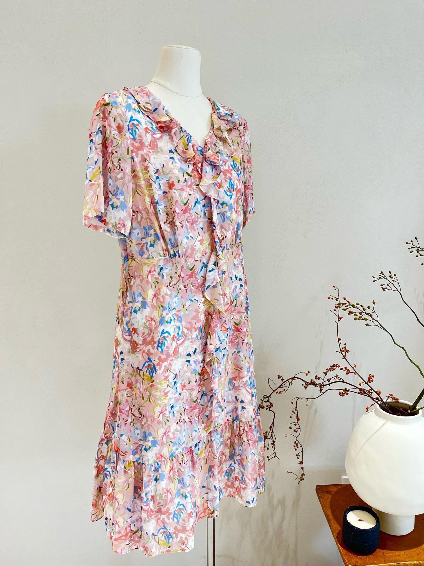 Vestido de Seda de Manga Corta para Mujer Primavera y Verano 2025 Nuevo Estampado Francés Cintura Estilo Joven Falda de Seda de Morera
