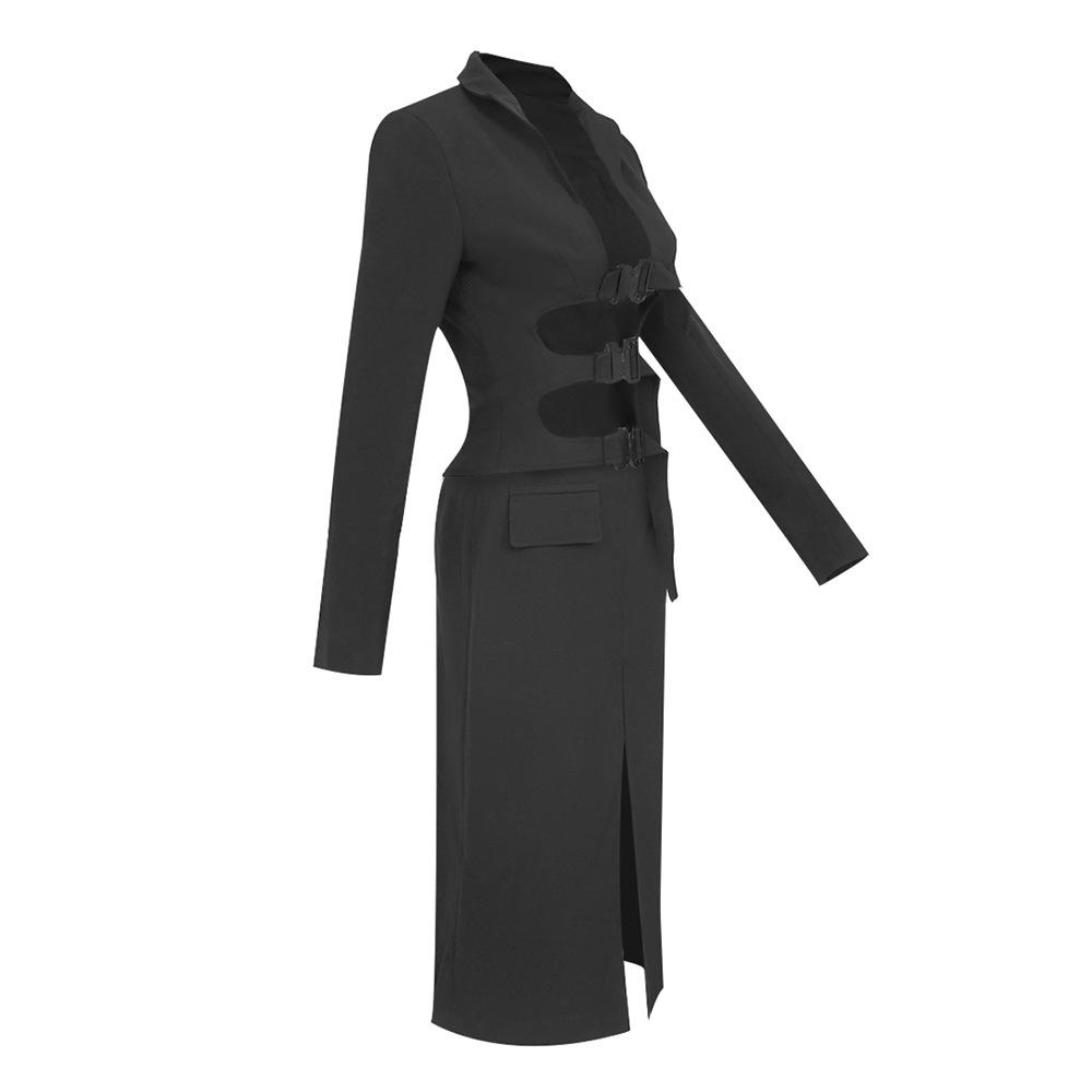 Más Vendido Negro Nuevo Traje Falda Top Hebilla Falda Media Conjunto de Dos Piezas Traje Transfronterizo Europeo y Americano Ropa de Verano para Mujer