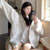 Suéter con forro polar para mujer, versión coreana de 2022, otoño e invierno, nuevo abrigo holgado de longitud media, chaqueta estampada, tendencia al por mayor