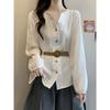 Camisa para Mujer Verano Francés Casual Ropa Exterior Manga Larga Elegante Nuevo 2025 Cuadros Rayas Camisa Ropa de Mujer