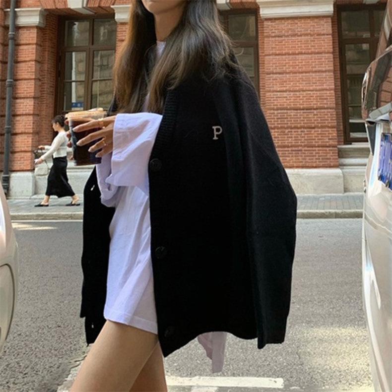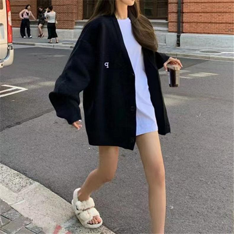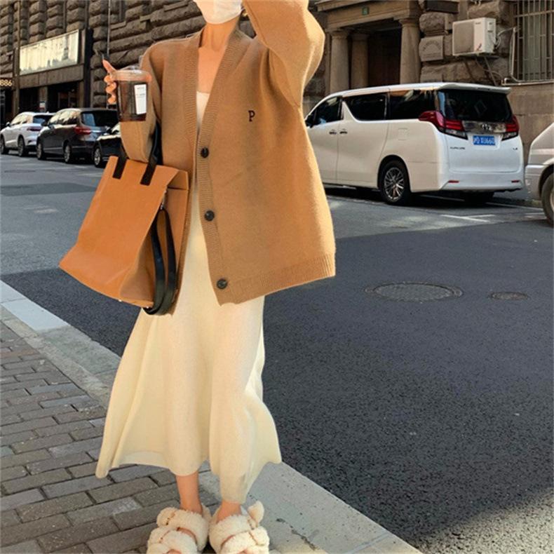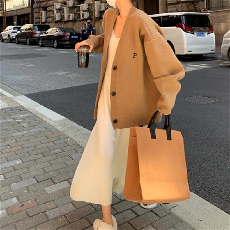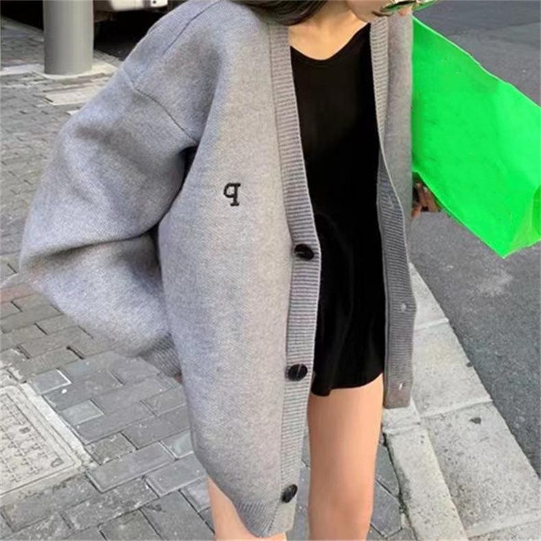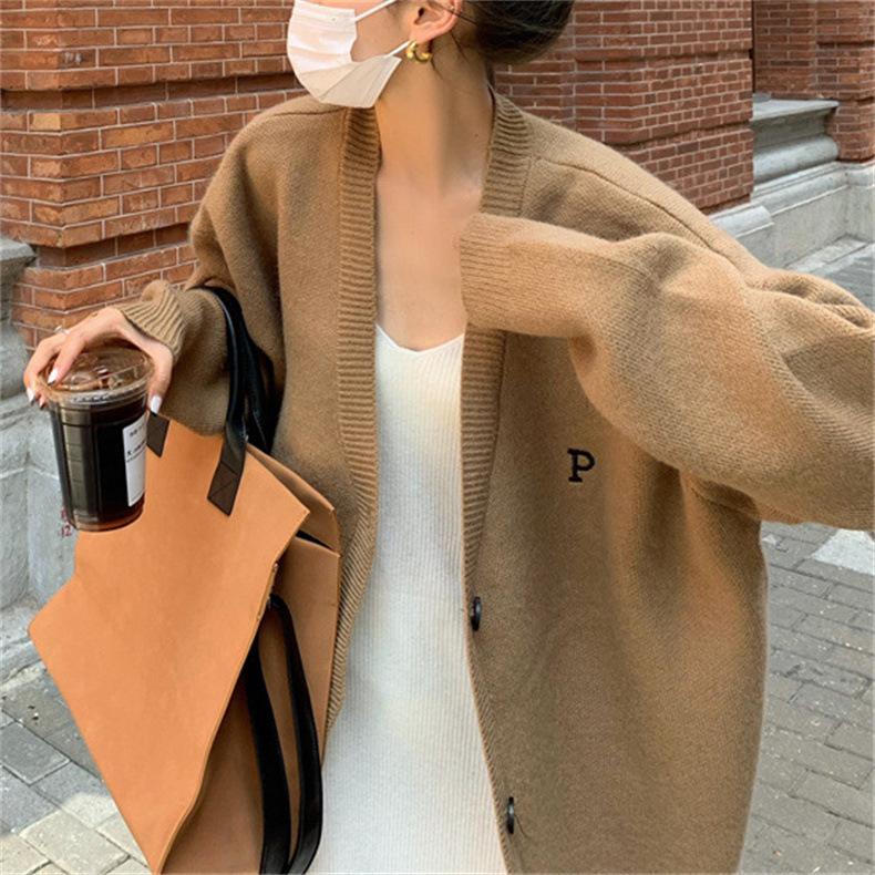 Chaqueta Suéter Tejida Estilo Perezoso para Mujer Venta al Mayoreo Otoño e Invierno Nuevo Abrigo Exterior Letra Bordada Holgado Cárdigan Tejido Top