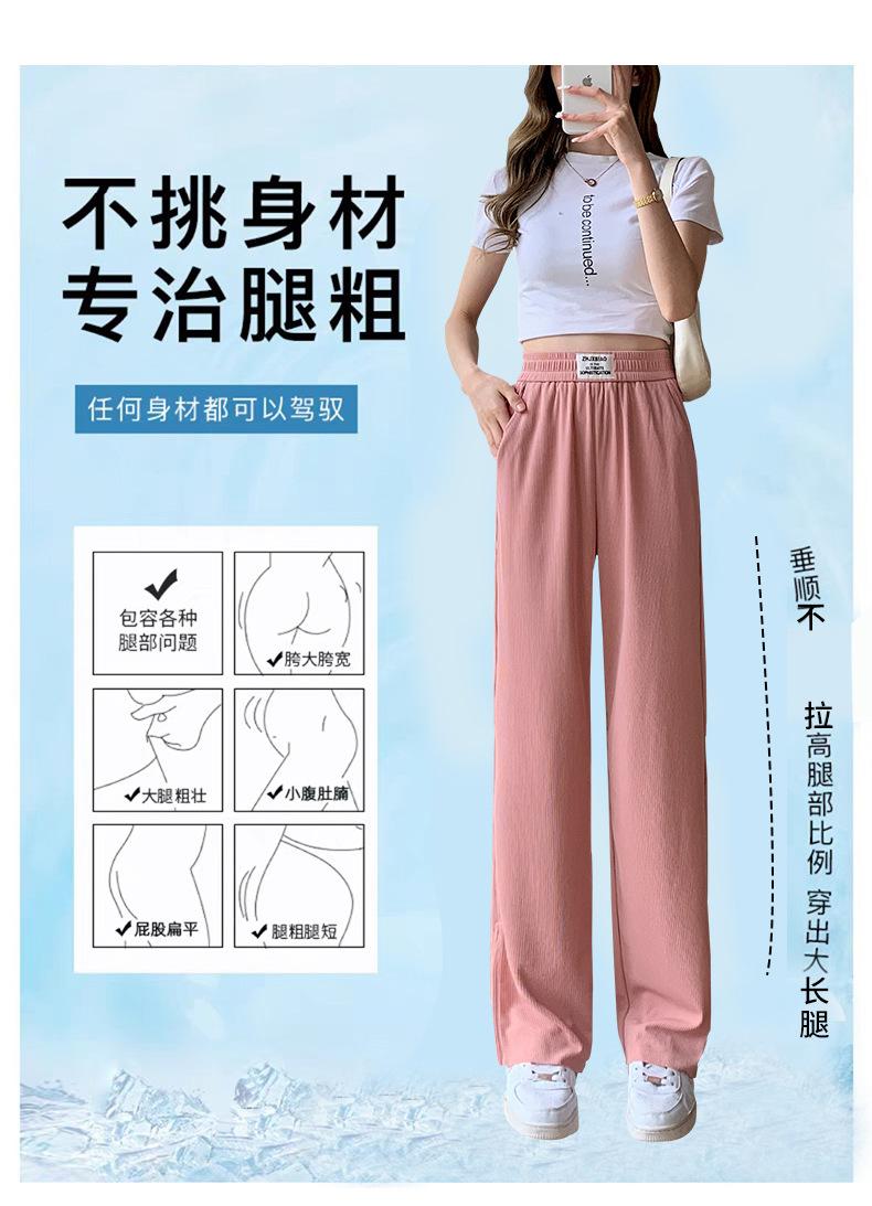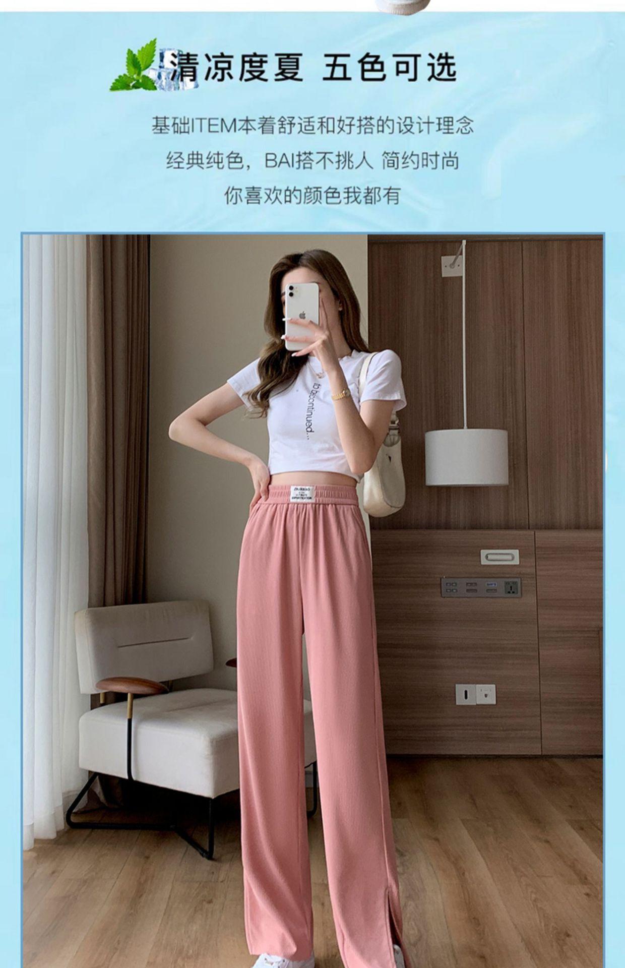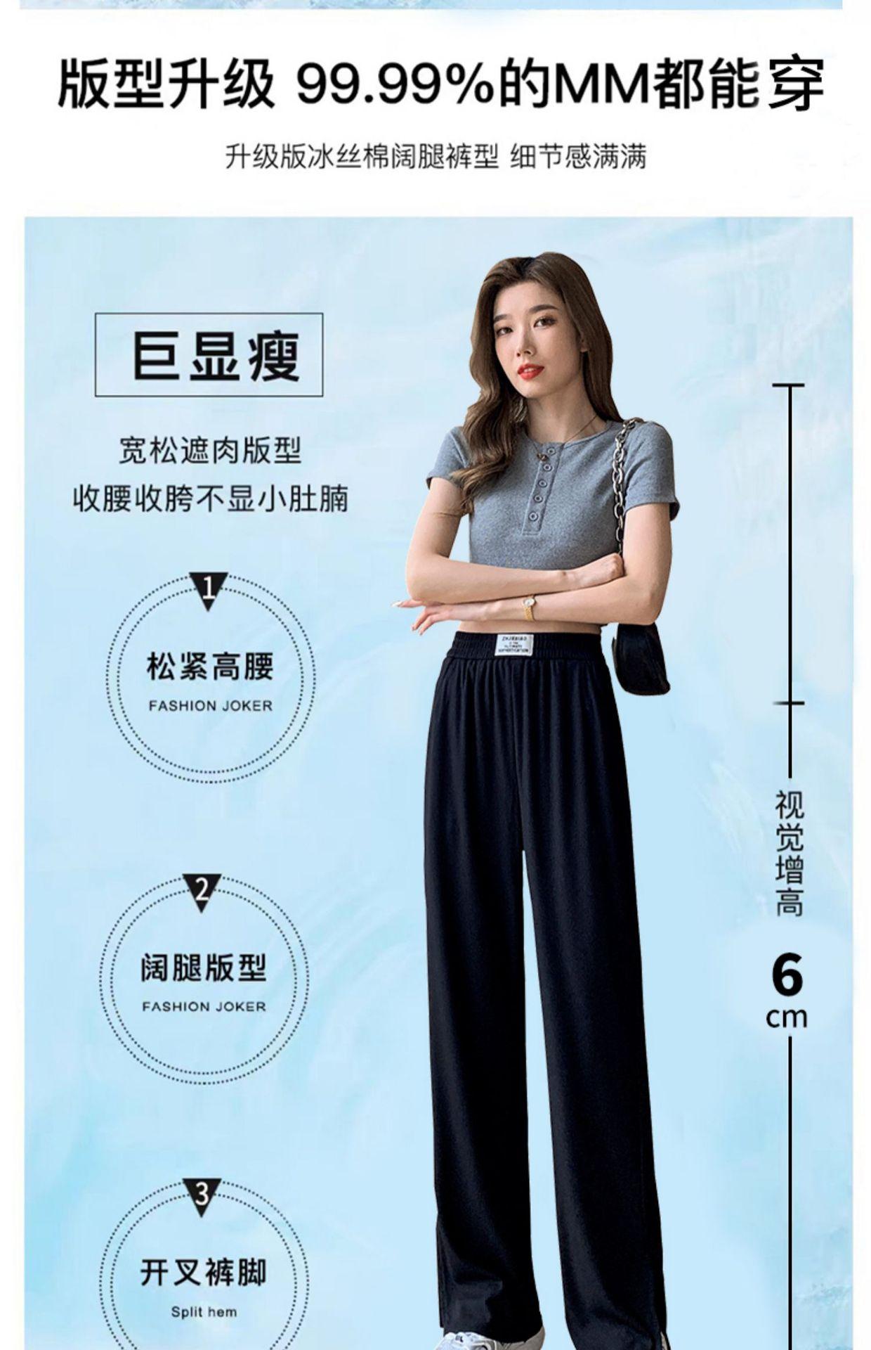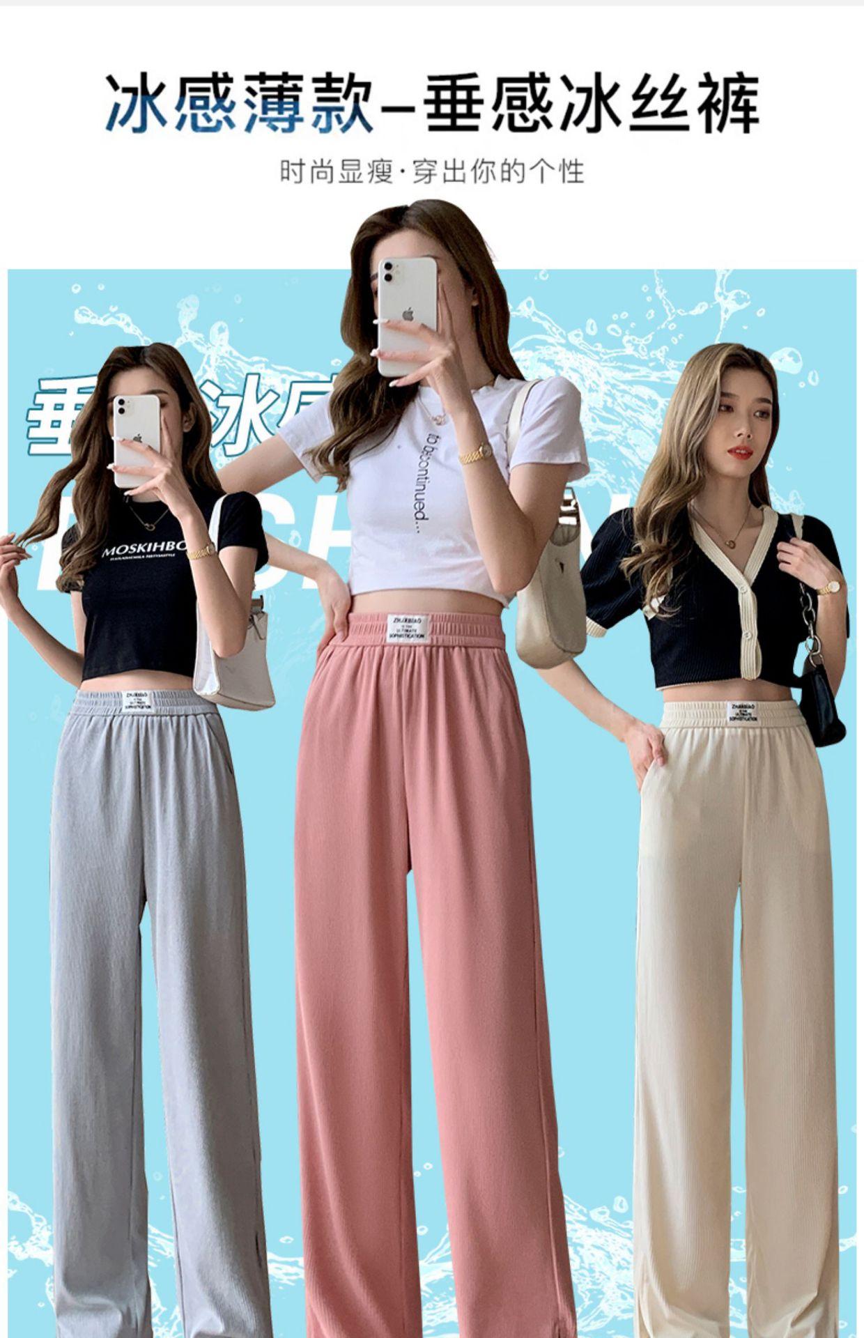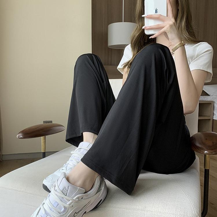 Pantalones Anchos de Seda de Hielo para Mujer Verano 2025 Nuevos Pequeños Delgados Chifón Rectos Cintura Alta Casuales